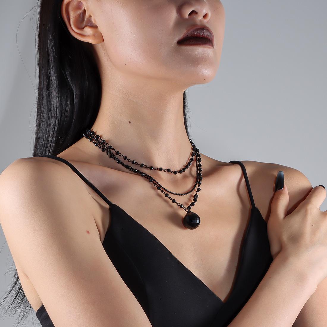 Collar con colgante multicapa de gota de agua, estilo transfronterizo europeo y americano, cadena de clavícula oscura retro NK24910