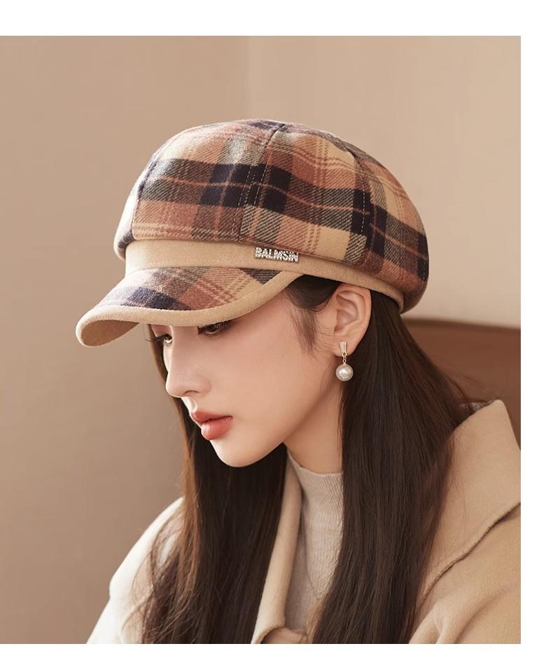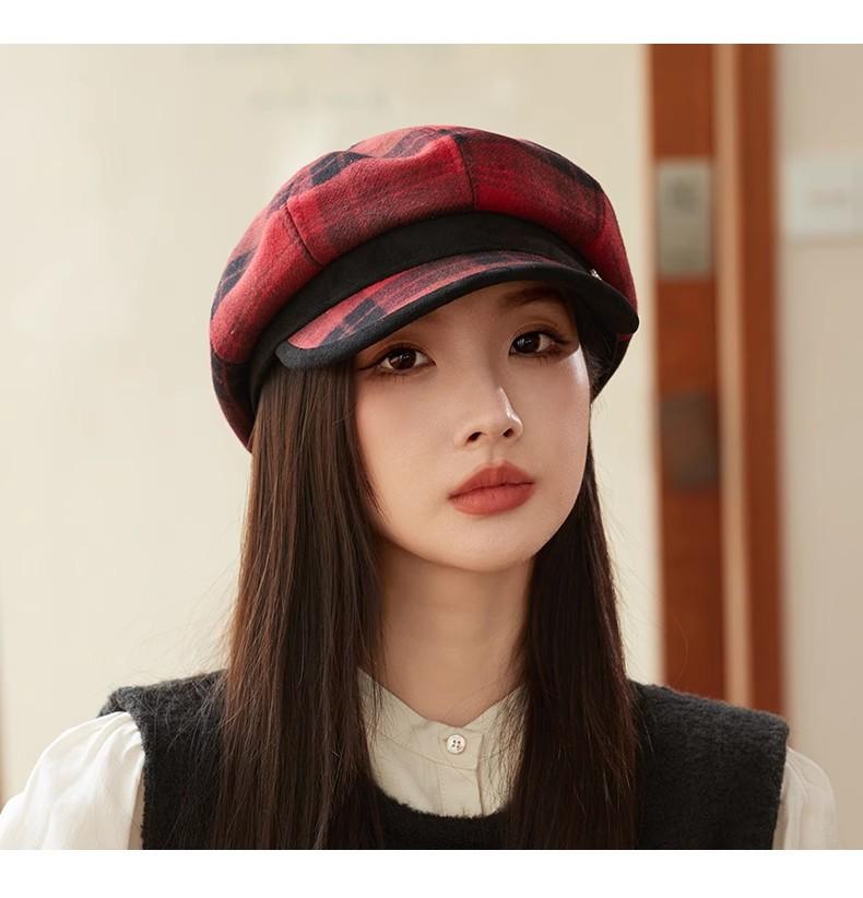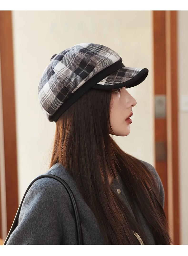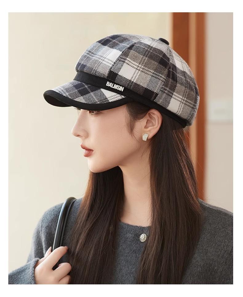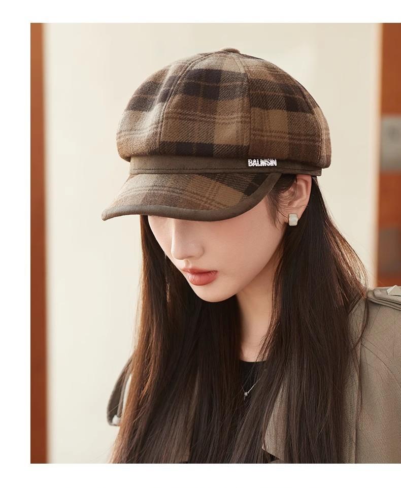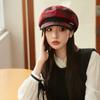 Nuevo Sombrero Octogonal de Cuadros Retro Sombrero Joker de Moda de Lana para Otoño e Invierno para Mujer Boina de Cuadros Británica