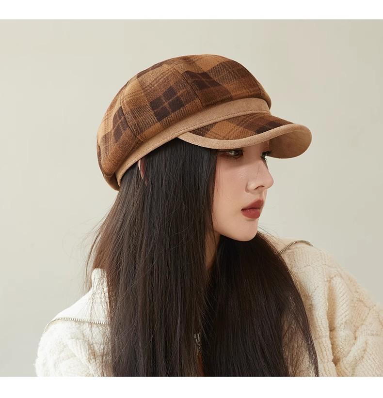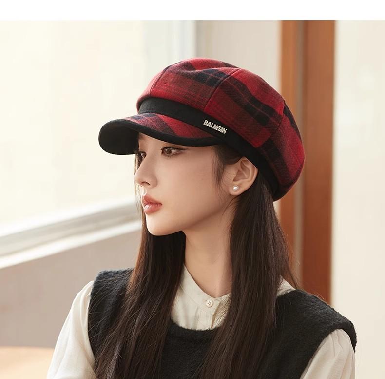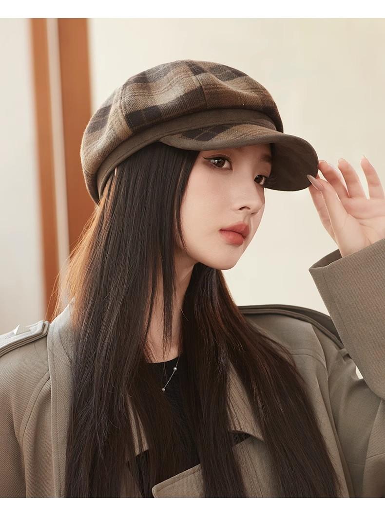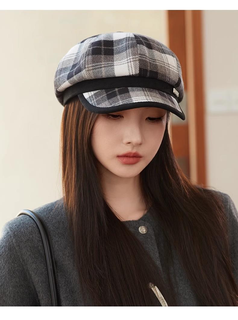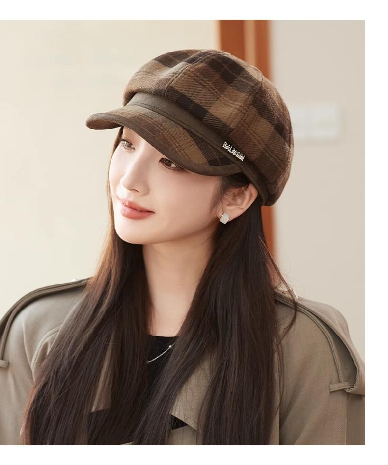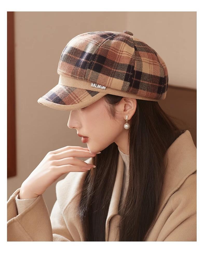Nuevo Sombrero Octogonal de Cuadros Retro Sombrero Joker de Moda de Lana para Otoño e Invierno para Mujer Boina de Cuadros Británica