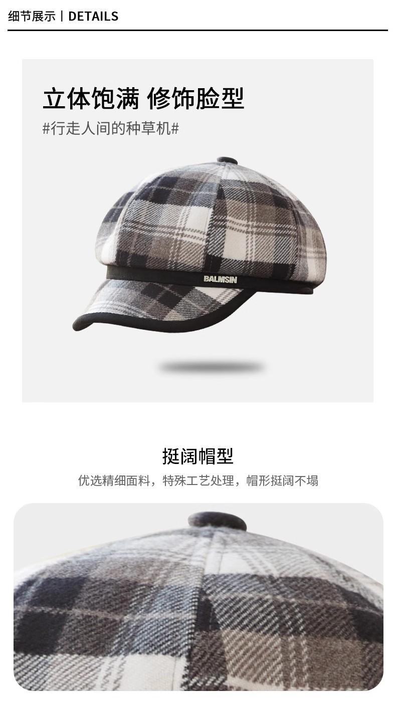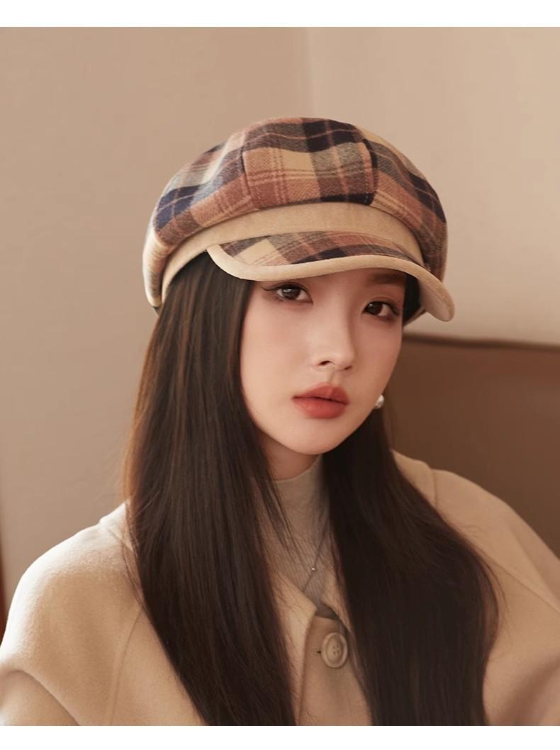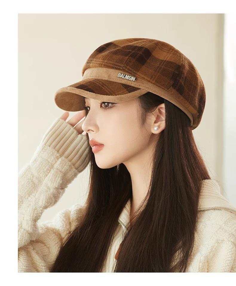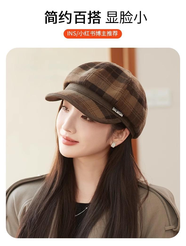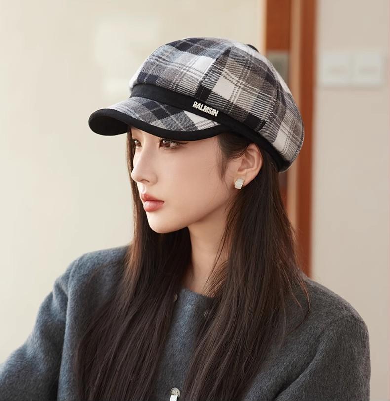 Nuevo Sombrero Octogonal de Cuadros Retro Sombrero Joker de Moda de Lana para Otoño e Invierno para Mujer Boina de Cuadros Británica
