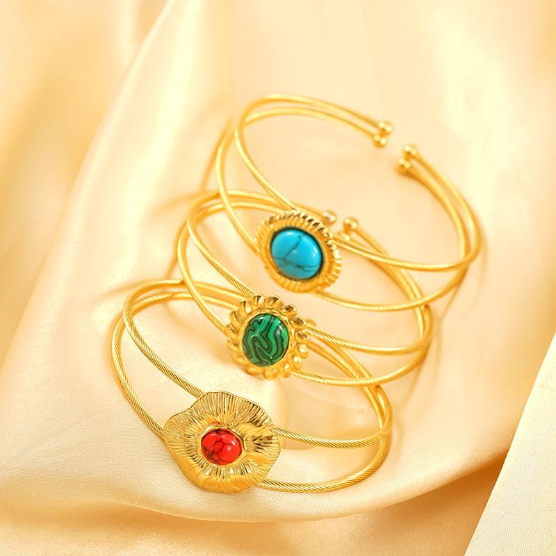 Pulsera transfronteriza de acero titanio dorado de Europa y Estados Unidos no se desvanece turquesa diseño nicho pulsera simple de lujo pulsera al por mayor