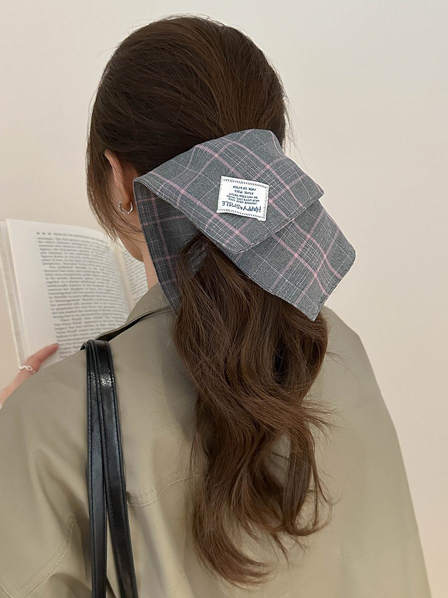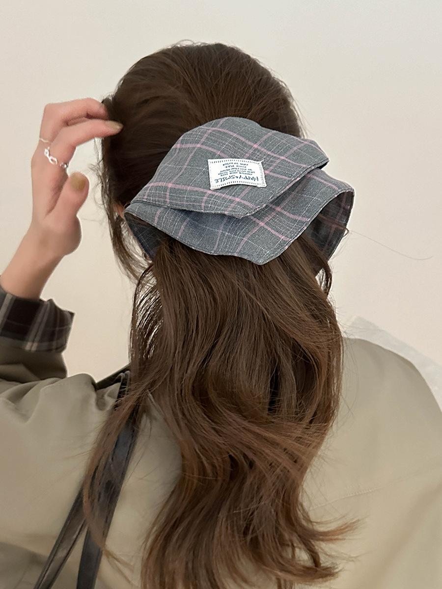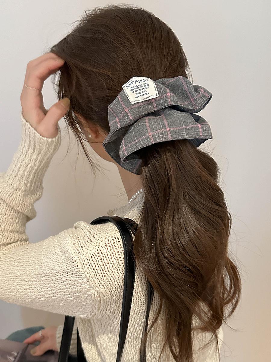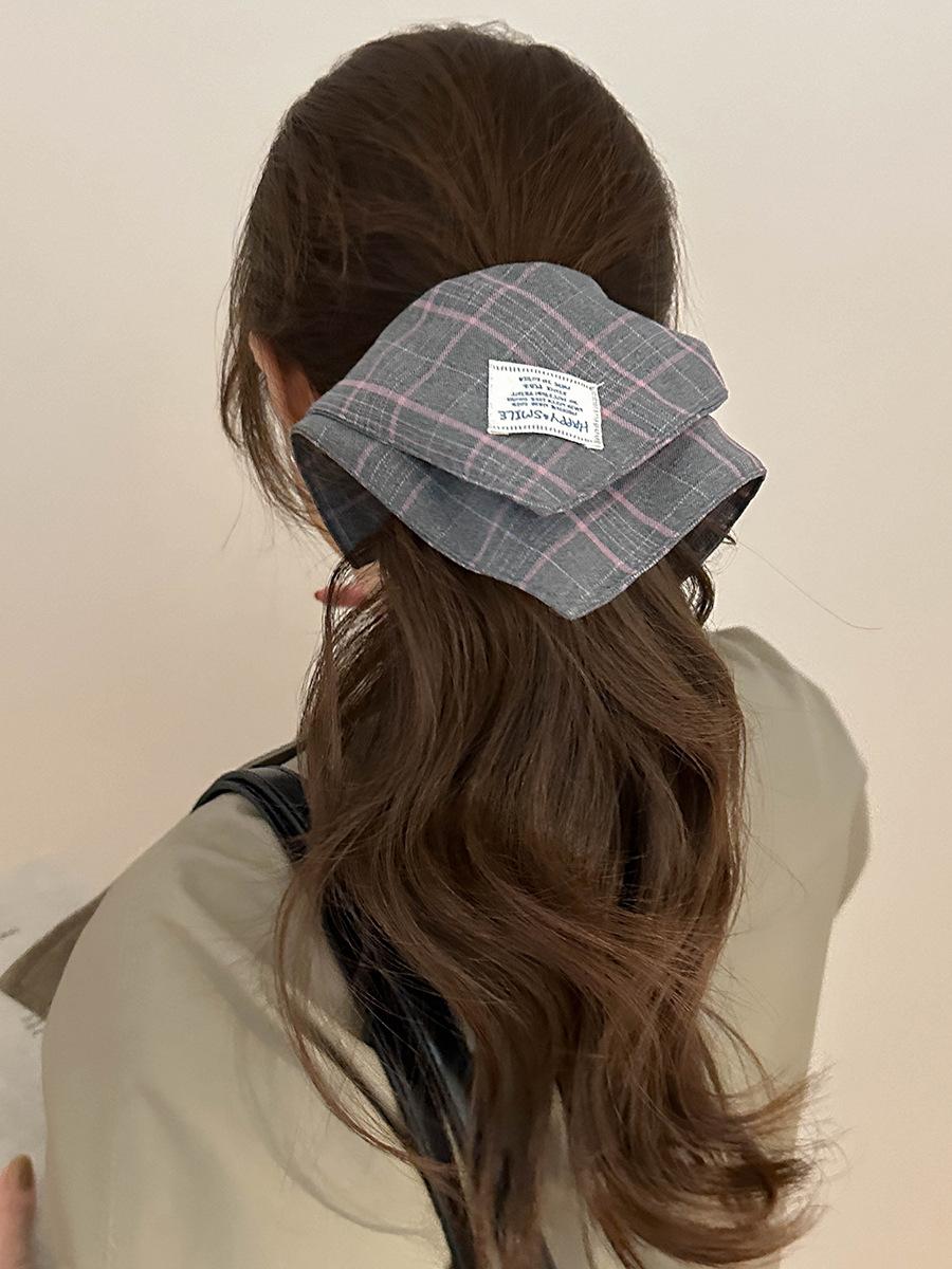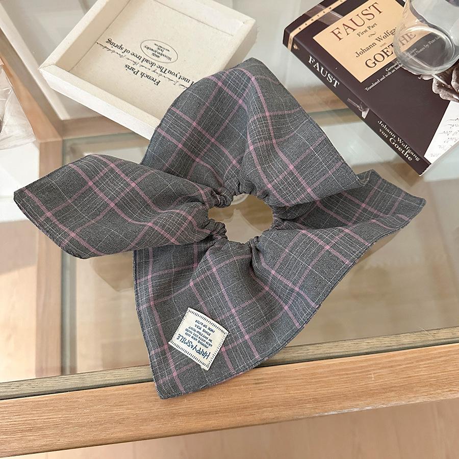 Bufanda Cuadrada a Rayas Escocesas Diadema Otoño e Invierno Nuevo Estilo Coreano Moda Elegante Versátil Lazo Grande Coletero Anillo para el Cabello Accesorios para el Cabello