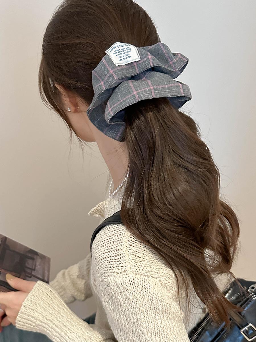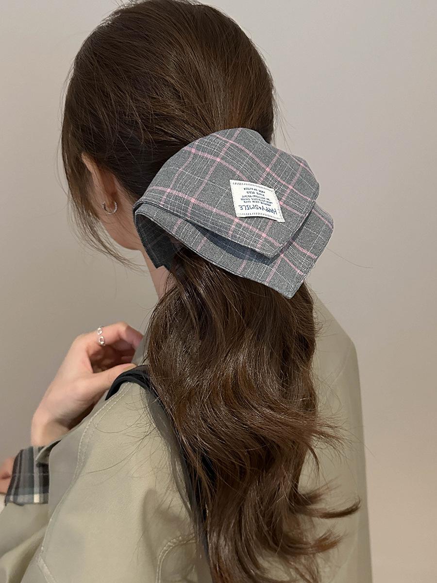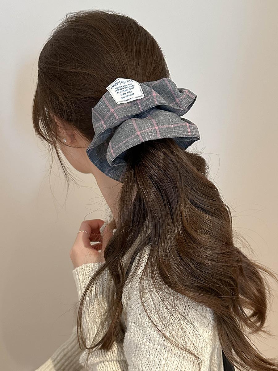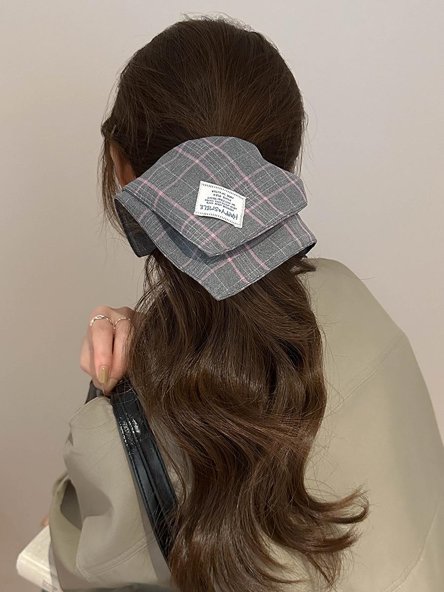 Bufanda Cuadrada a Rayas Escocesas Diadema Otoño e Invierno Nuevo Estilo Coreano Moda Elegante Versátil Lazo Grande Coletero Anillo para el Cabello Accesorios para el Cabello