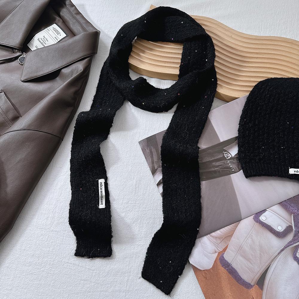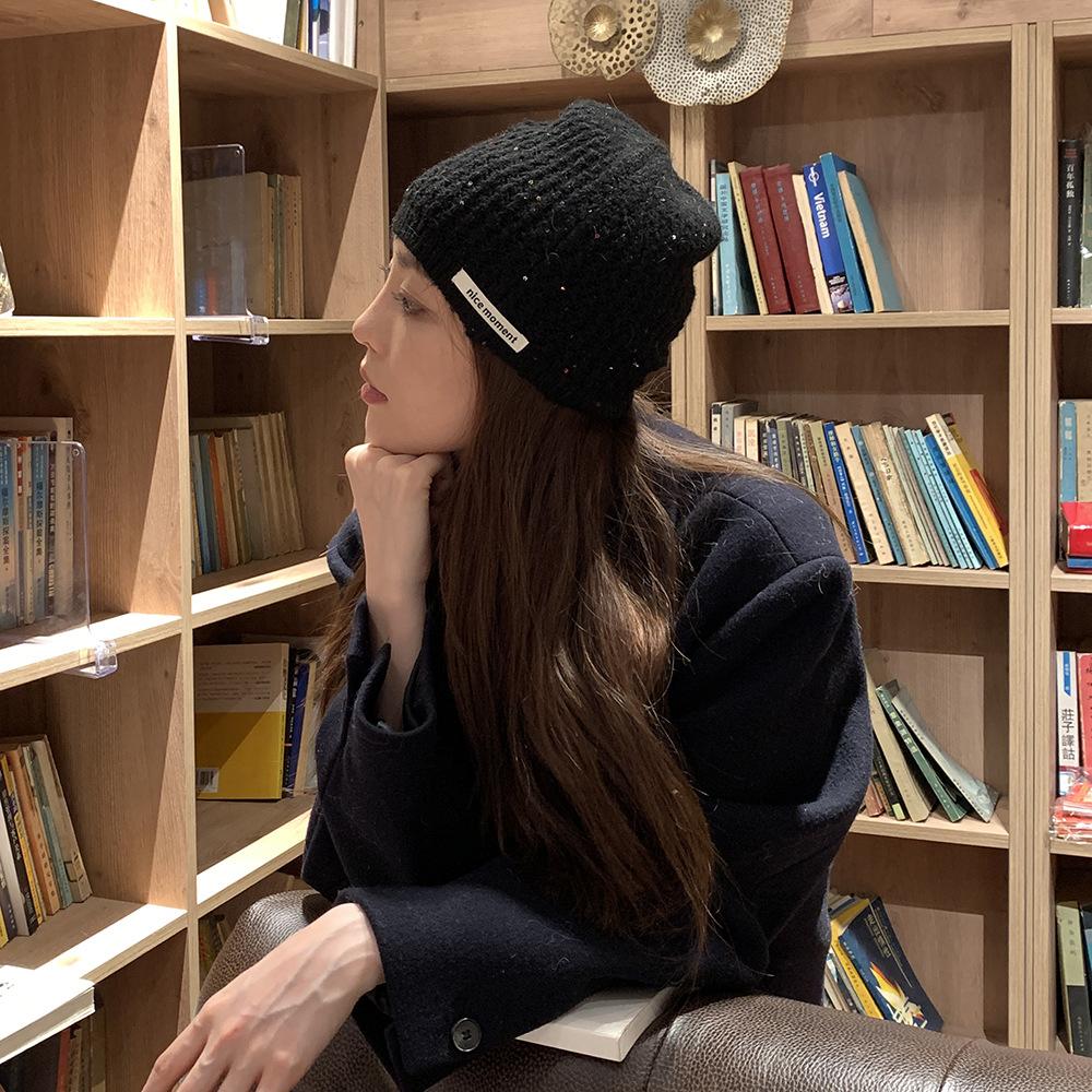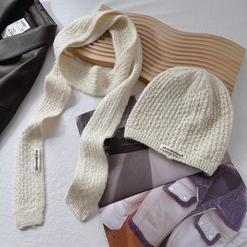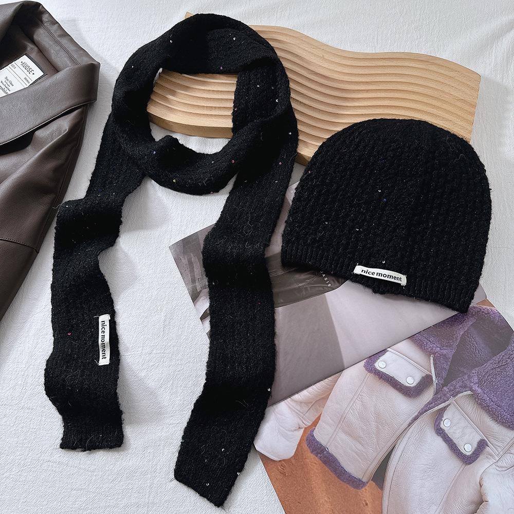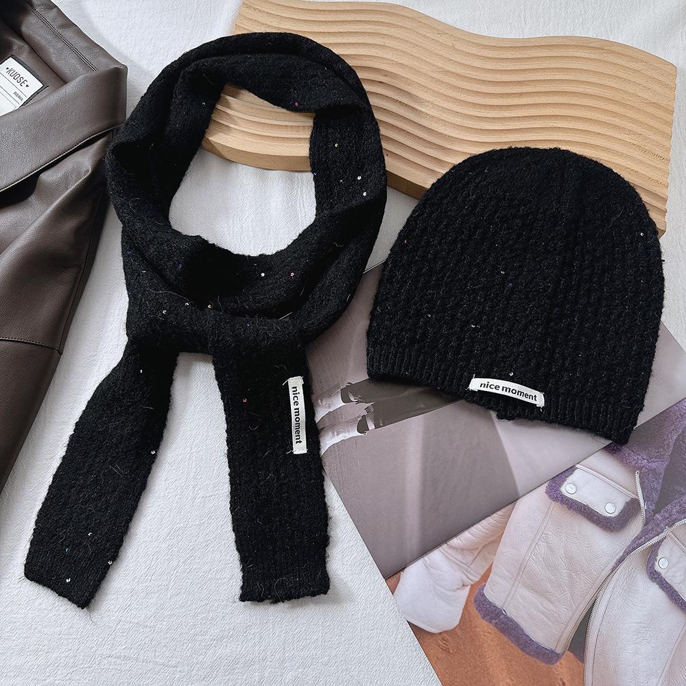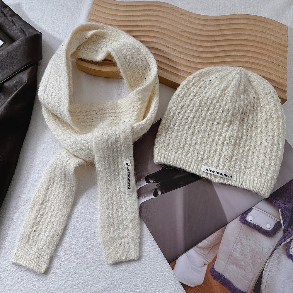 El mismo estilo de bufanda gorro que la celebridad de Internet, conjunto de dos piezas, color sólido con lentejuelas de color de flor pequeña, lleno de sentido de la moda, el diseño de etiqueta con letras es versátil y de alta gama~