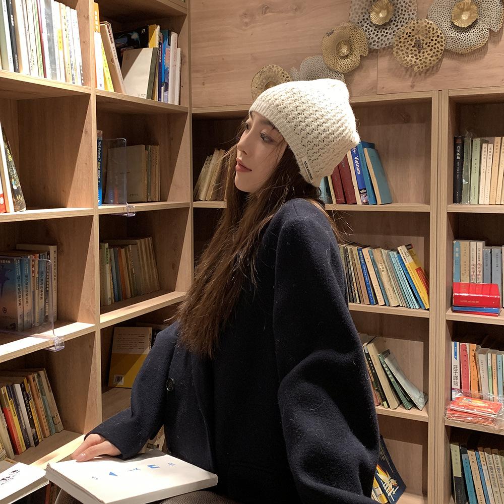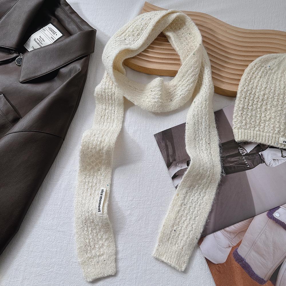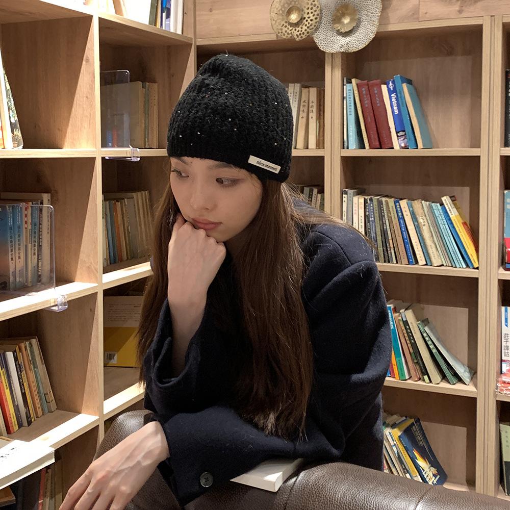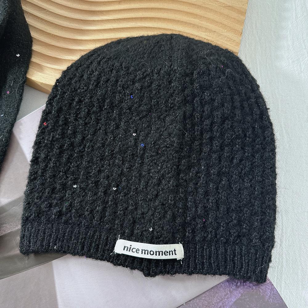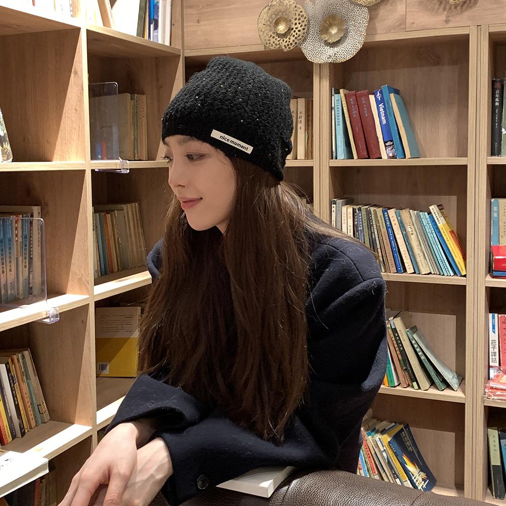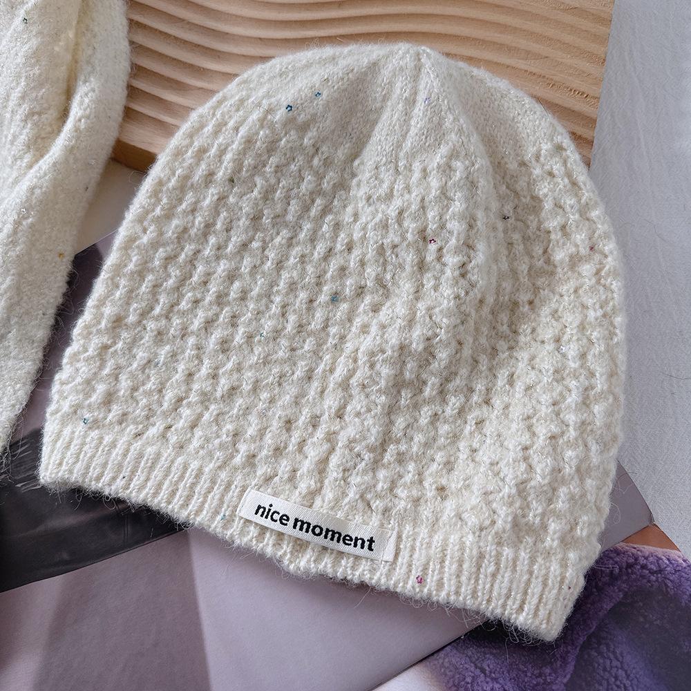 El mismo estilo de bufanda gorro que la celebridad de Internet, conjunto de dos piezas, color sólido con lentejuelas de color de flor pequeña, lleno de sentido de la moda, el diseño de etiqueta con letras es versátil y de alta gama~
