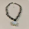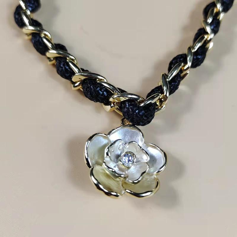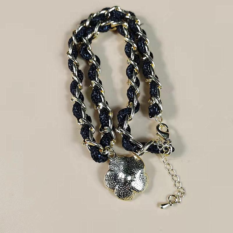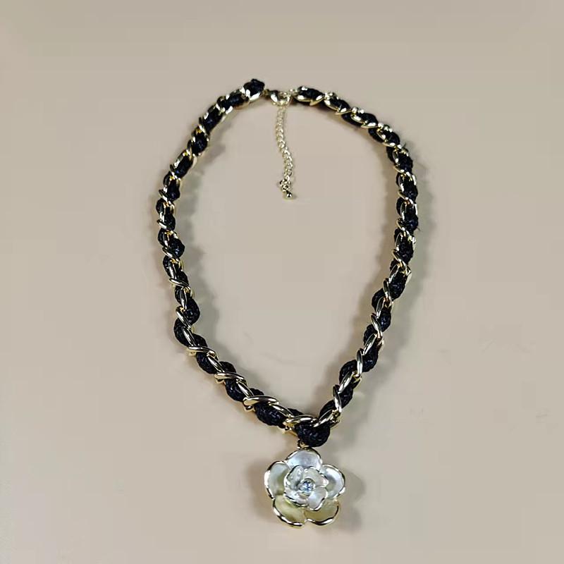 Collar tejido de cuero con flor de diamante retro francés para mujer, collar de personalidad europeo y americano, cadena para clavícula de moda para combinar con todo