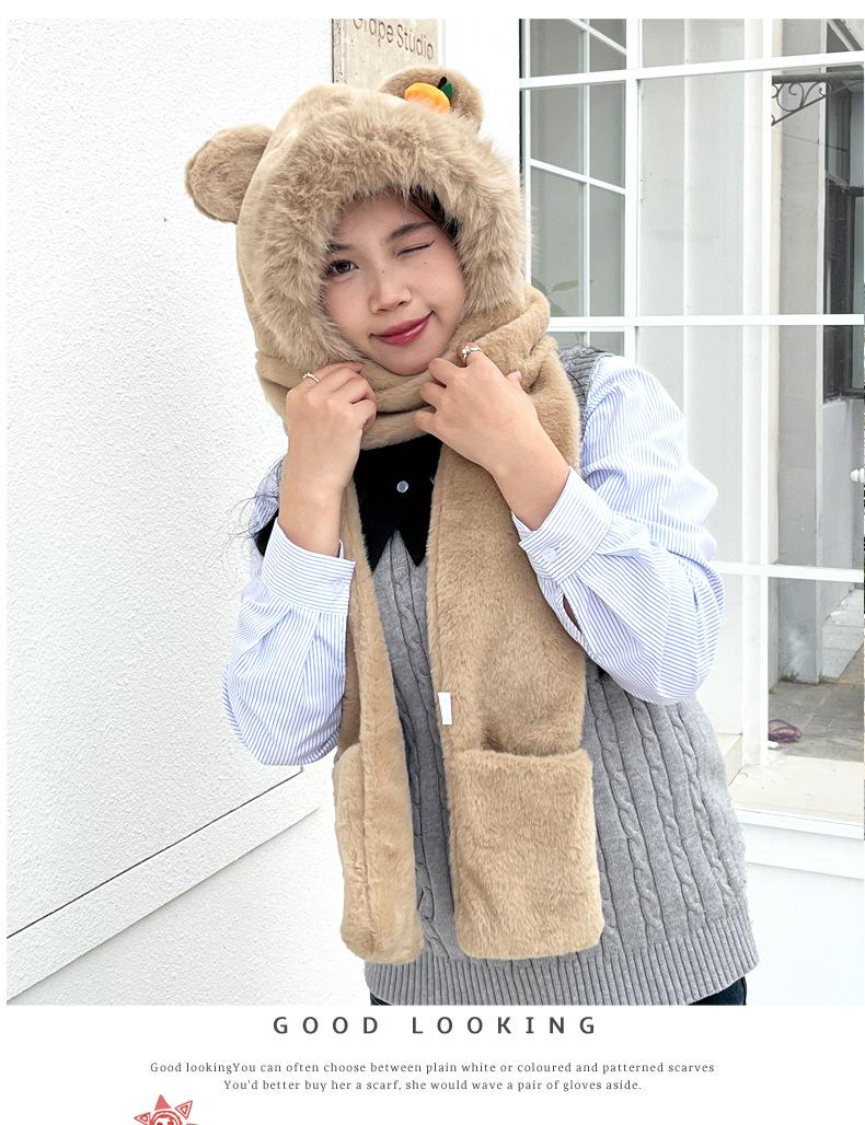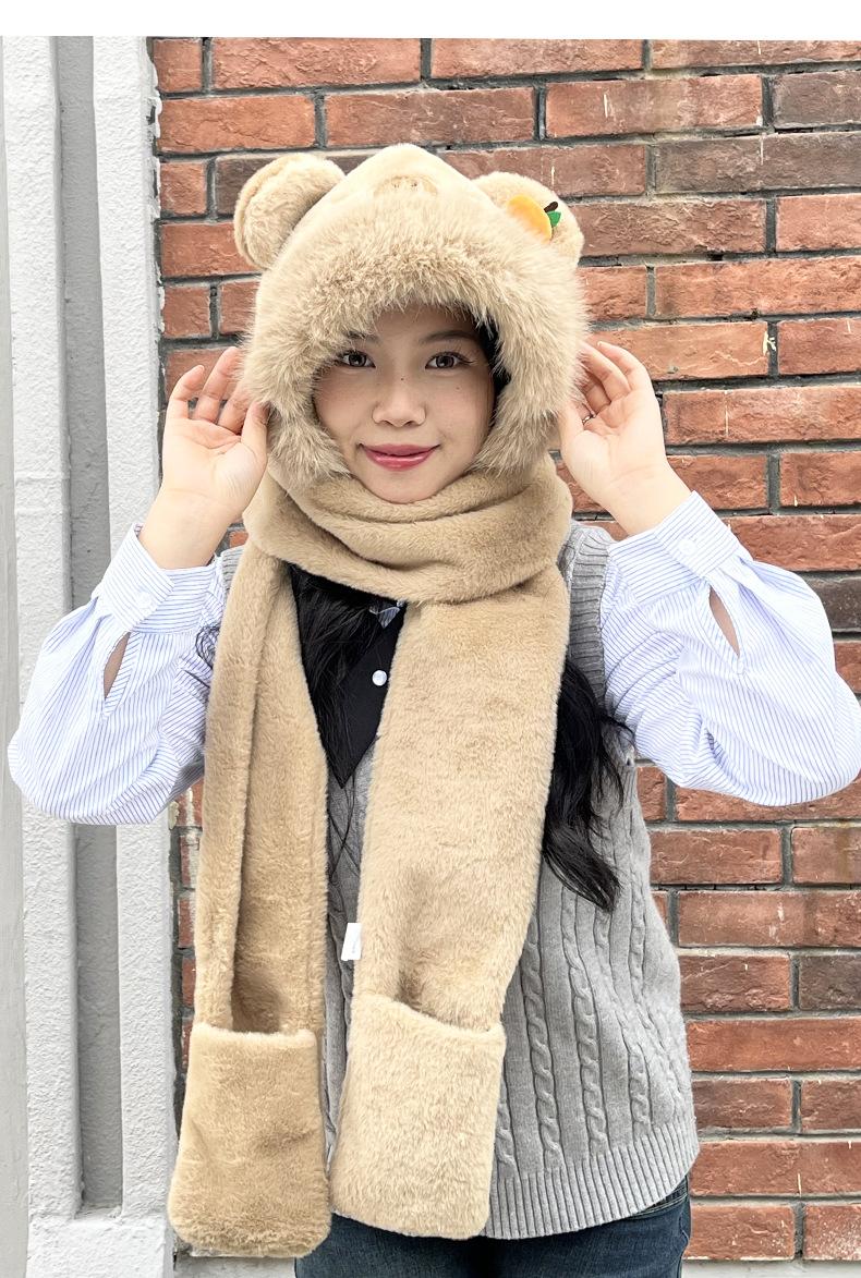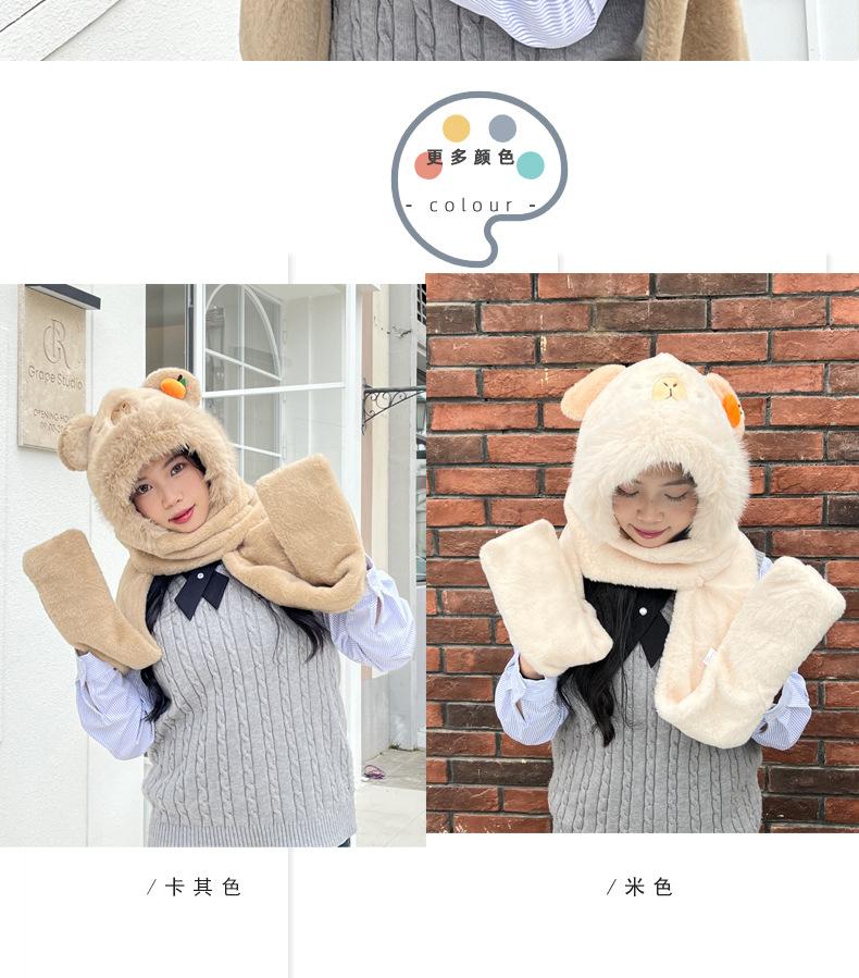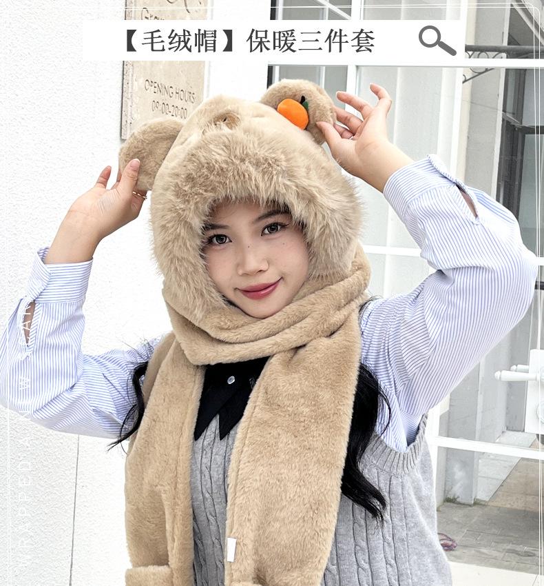 Invierno nuevo sombrero de oso lindo bufanda guantes uno de felpa sombrero de dibujos animados bufanda tres en uno