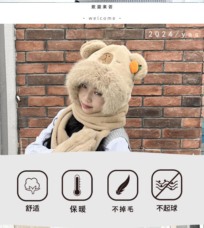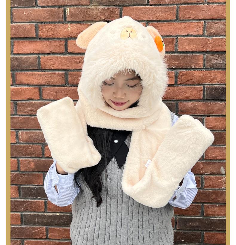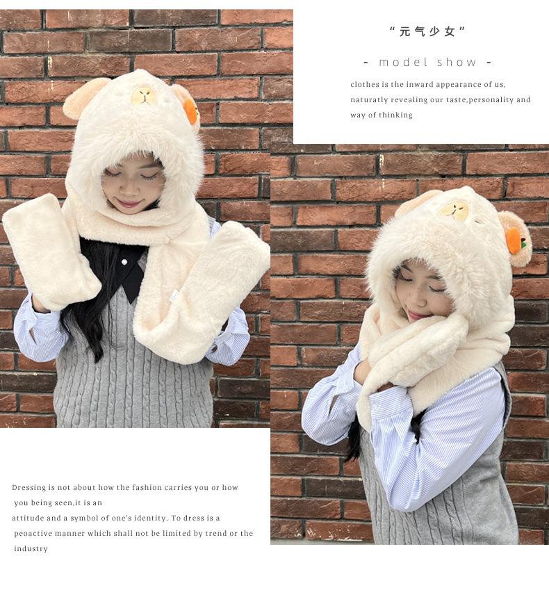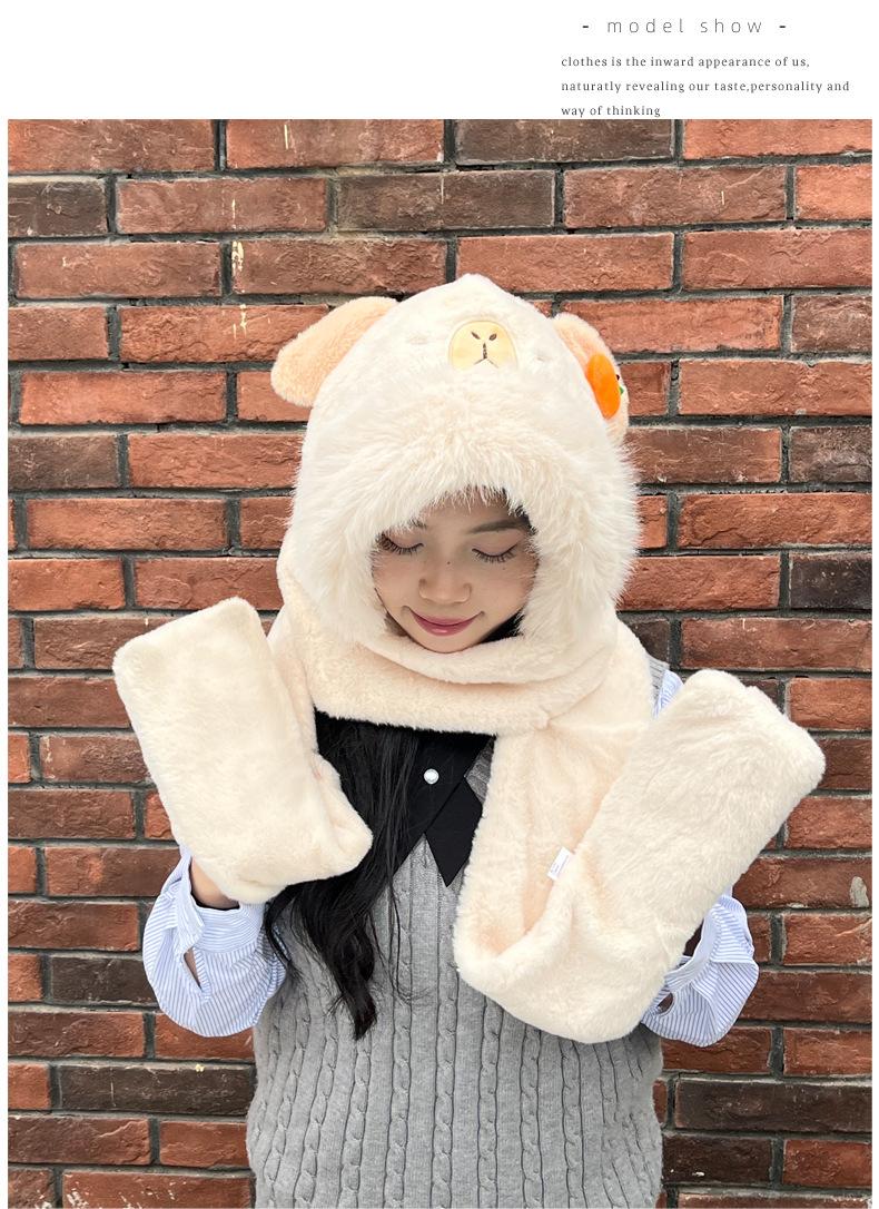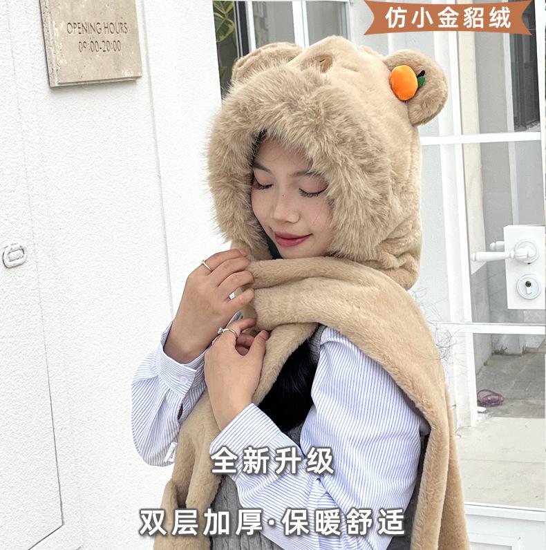 Invierno nuevo sombrero de oso lindo bufanda guantes uno de felpa sombrero de dibujos animados bufanda tres en uno