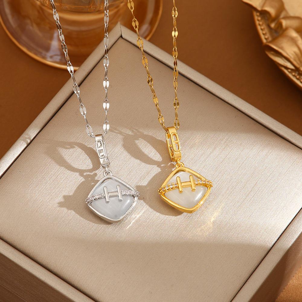 Collar de acero de titanio con borla de ópalo H, superventas en Europa y América, resistente a la decoloración, colgante de diamantes para mujer, venta al por mayor de fábrica simple