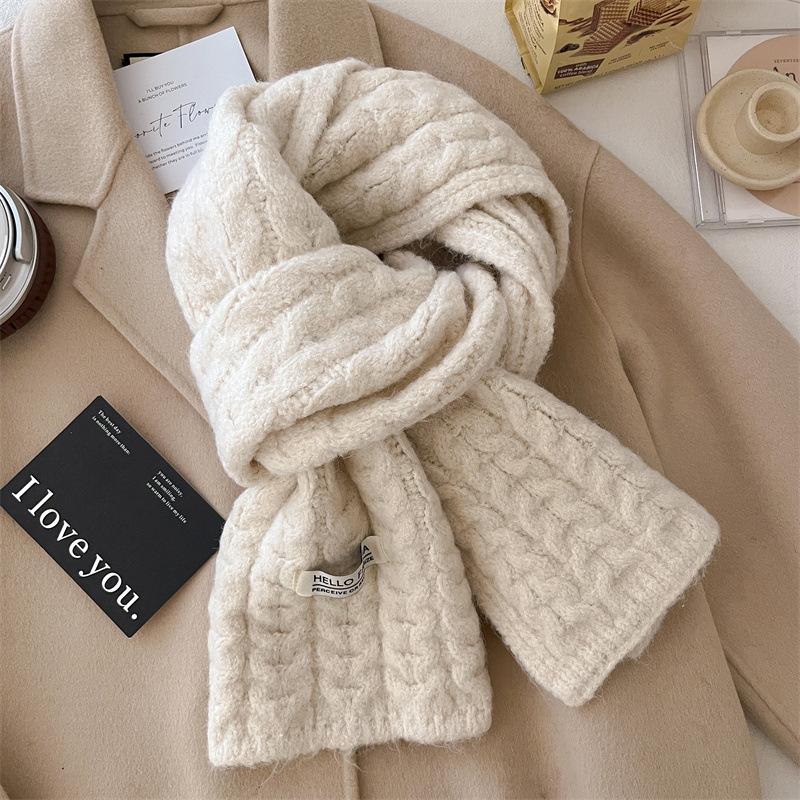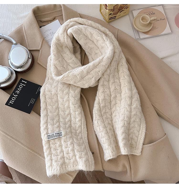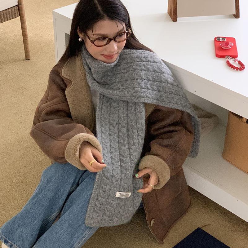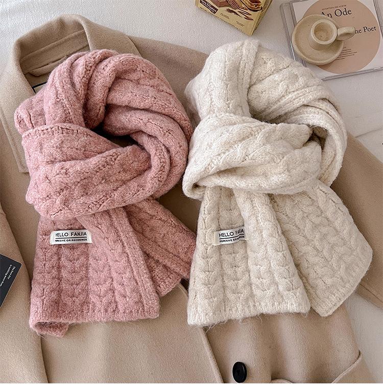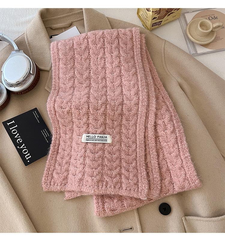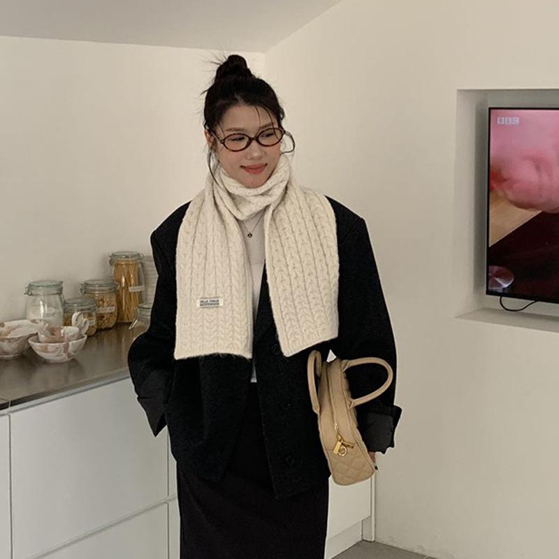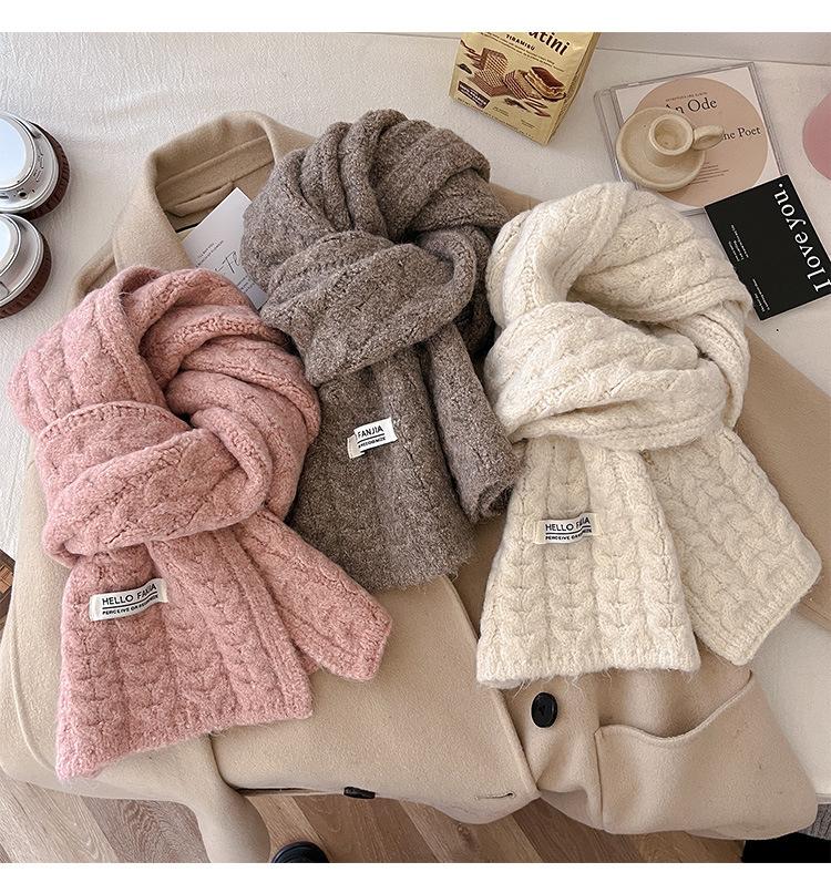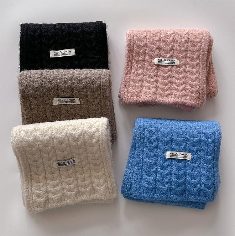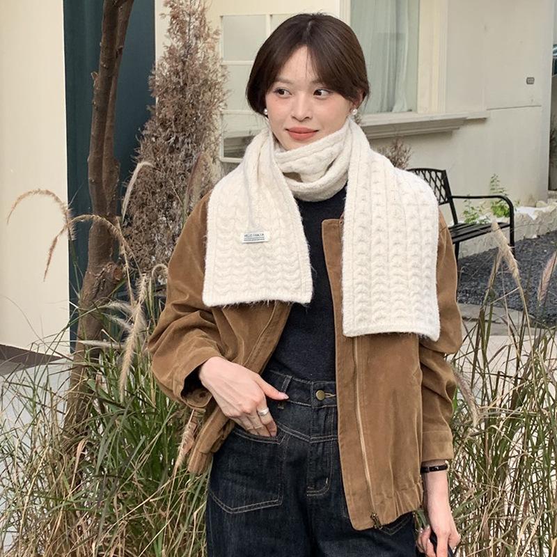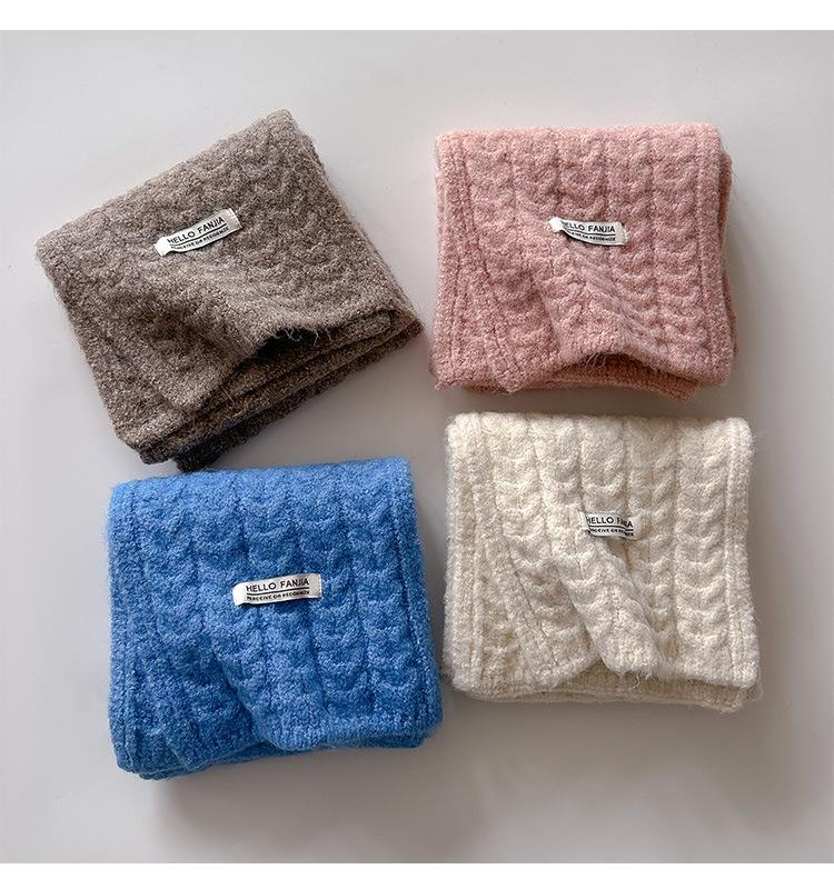 Bufanda de estilo pequeño con giro para otoño e invierno, nueva bufanda de abrigo de invierno para mujer, estilo coreano, de punto liso y a juego, con protección para el cuello.