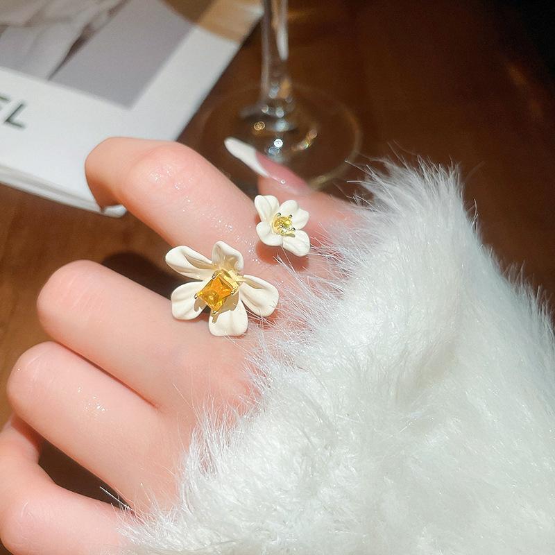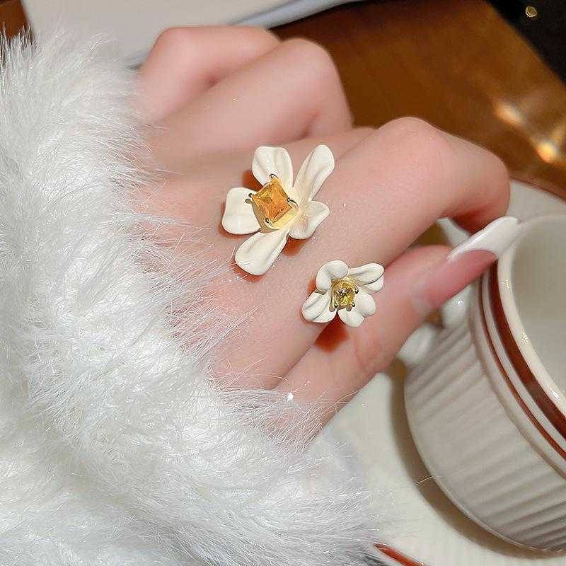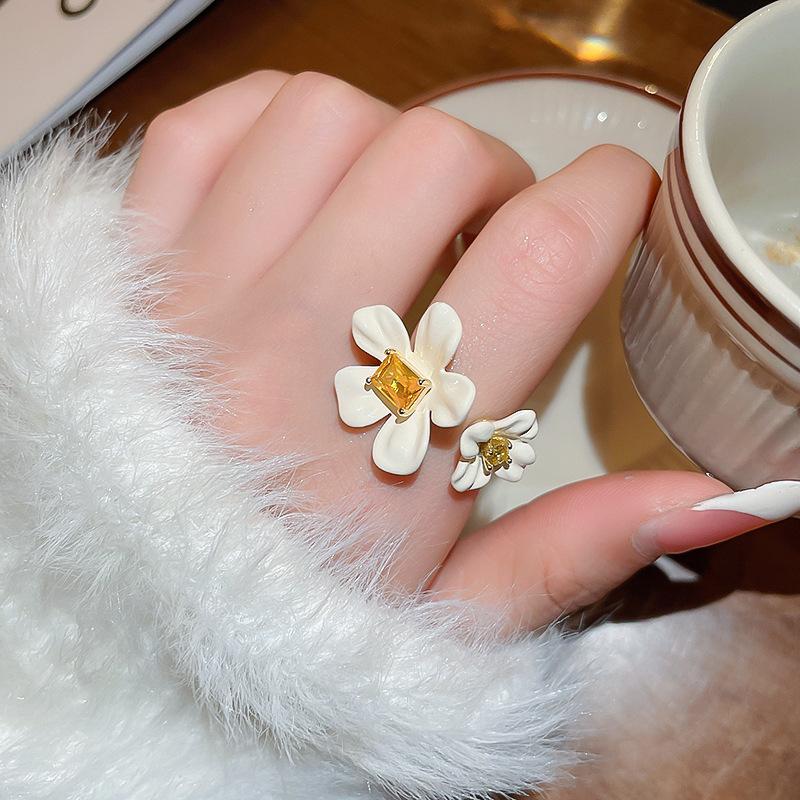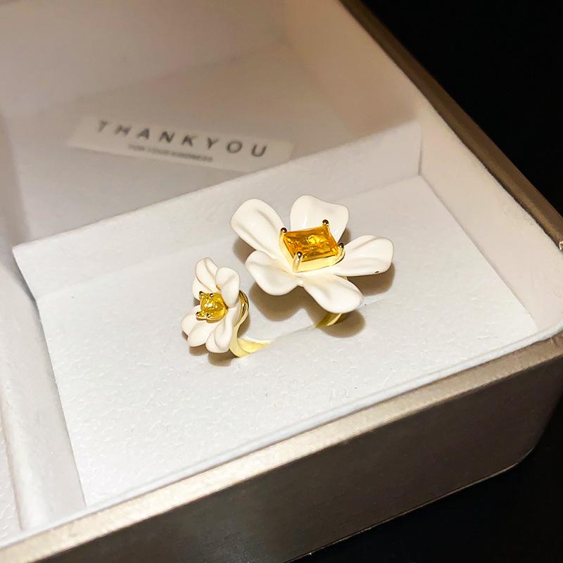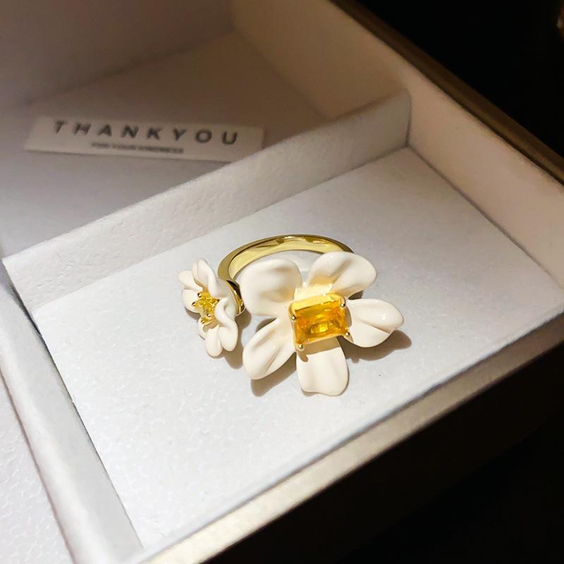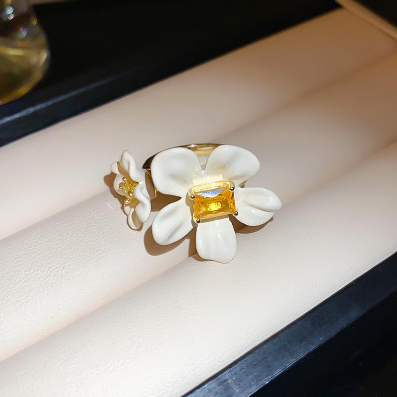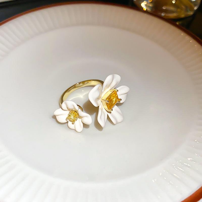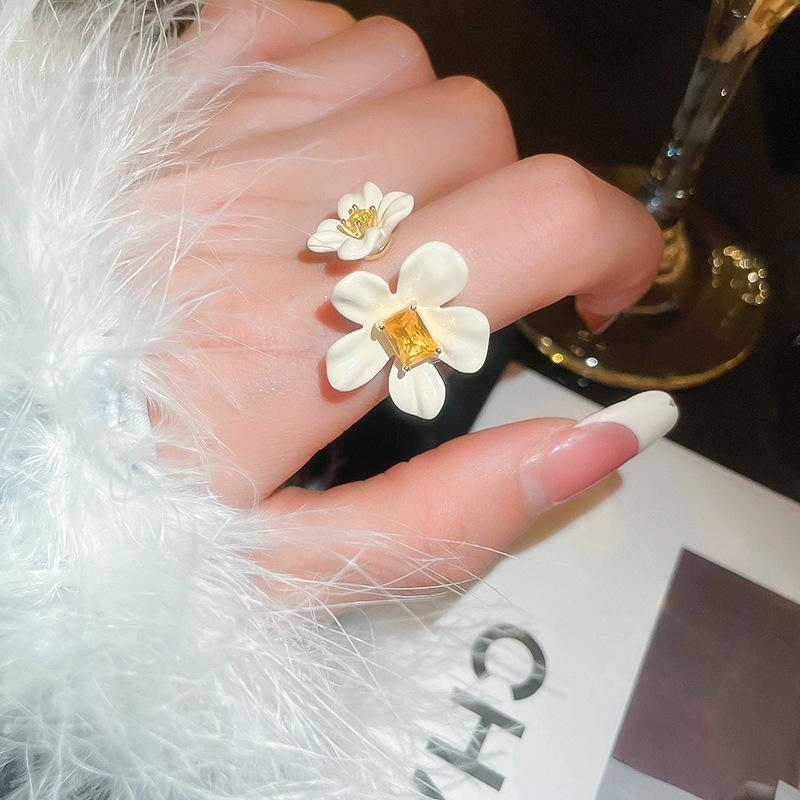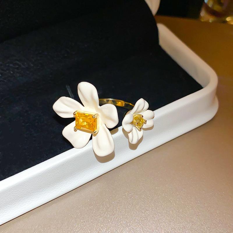 Anillo de apertura con pétalos de flor de diamante chapado en oro auténtico, diseño de nicho, anillo de dedo de moda, anillo retro personalizado.