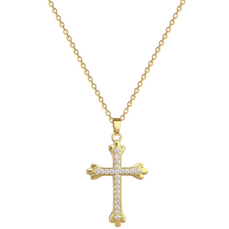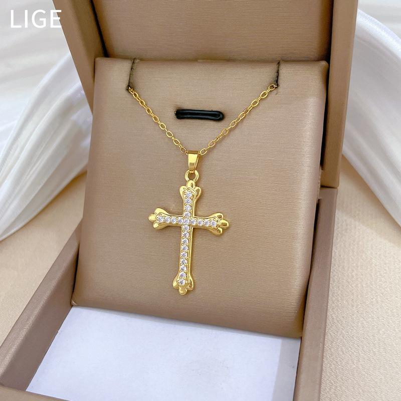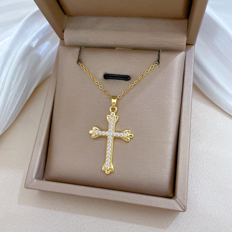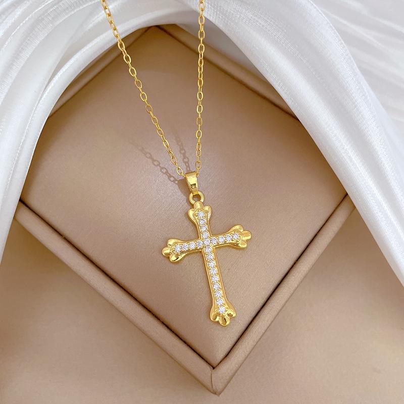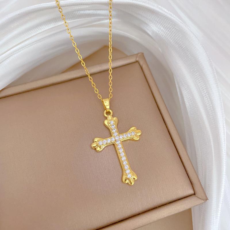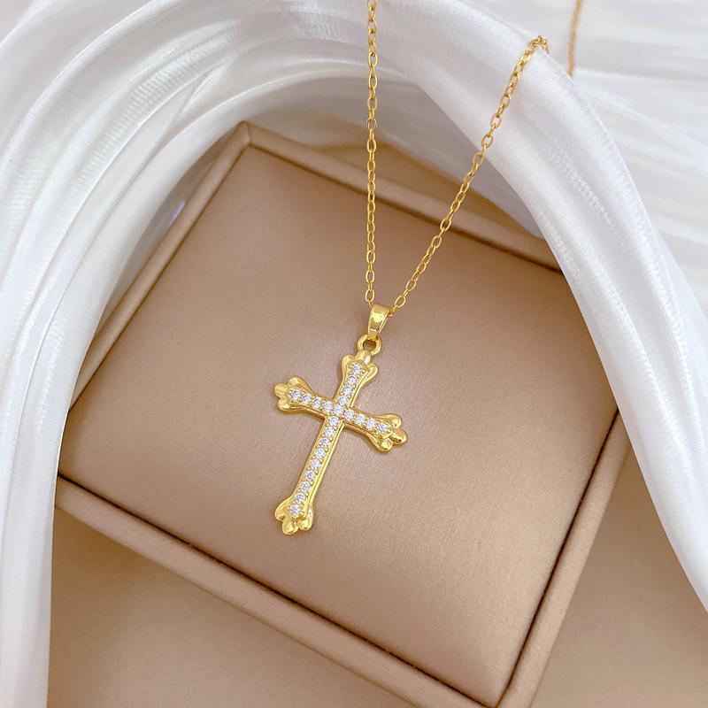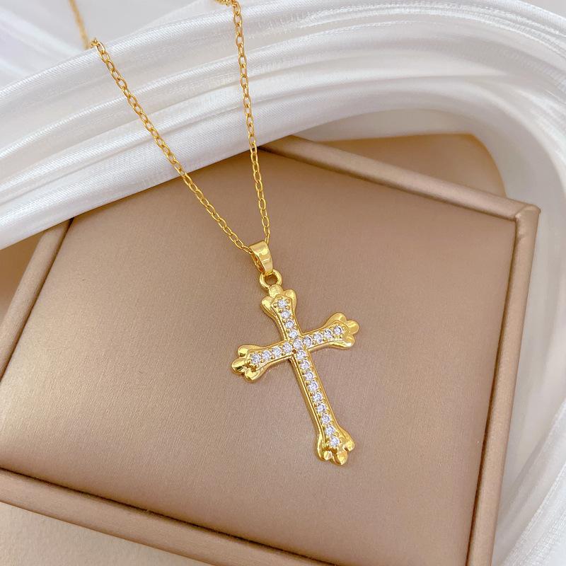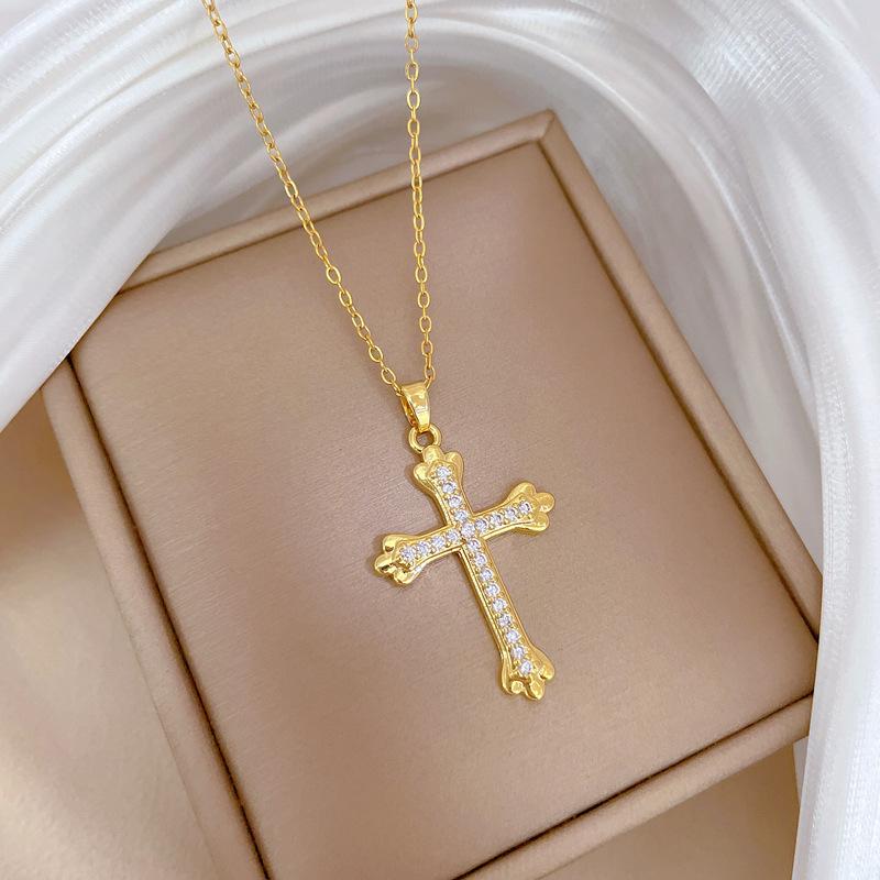 [Acero de titanio] Elegante y hermoso collar con cruz de diamantes, ligero y lleno de luz, de lujo, lleno de diamantes, cadena de clavícula para mujer, cadena de acero de titanio.