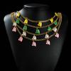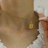 Collar con colgante de ojo de gato estilo retro europeo y americano, diseño de nicho, cadena de clavícula ligera de acero de titanio chapada en oro de 18 quilates.