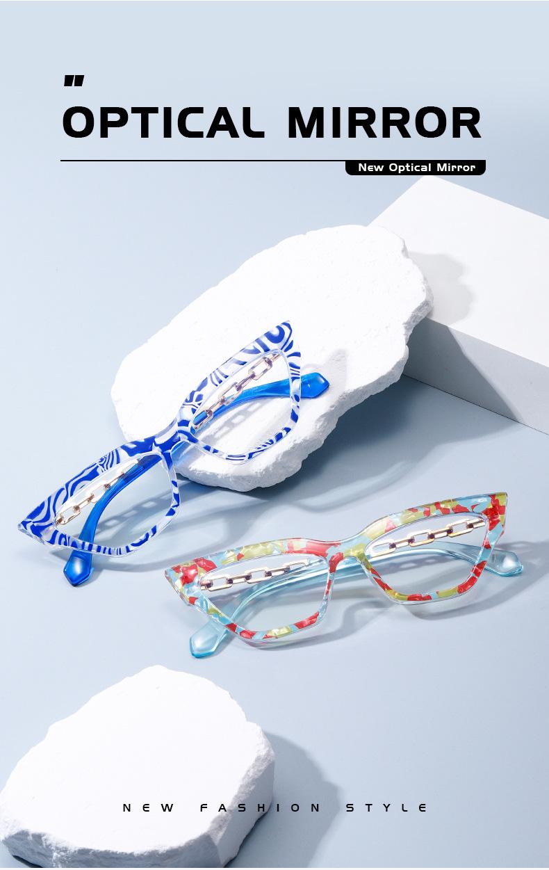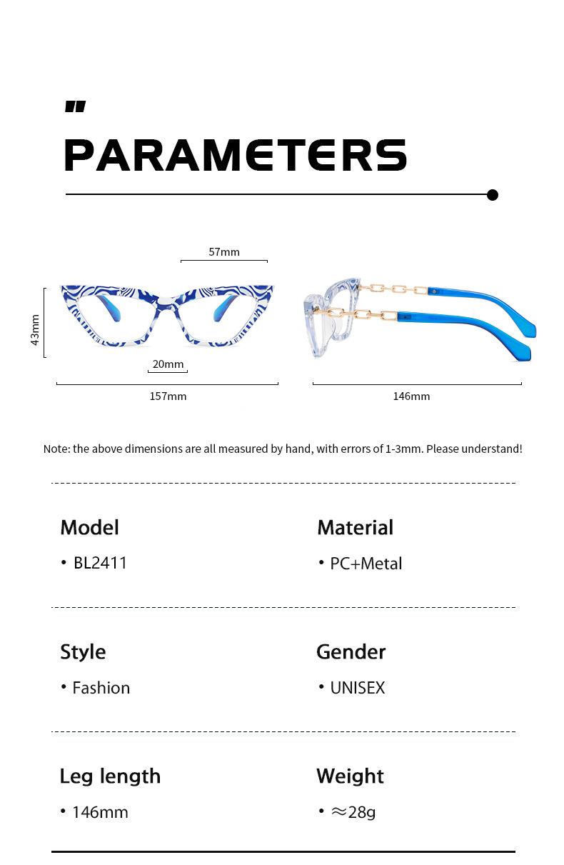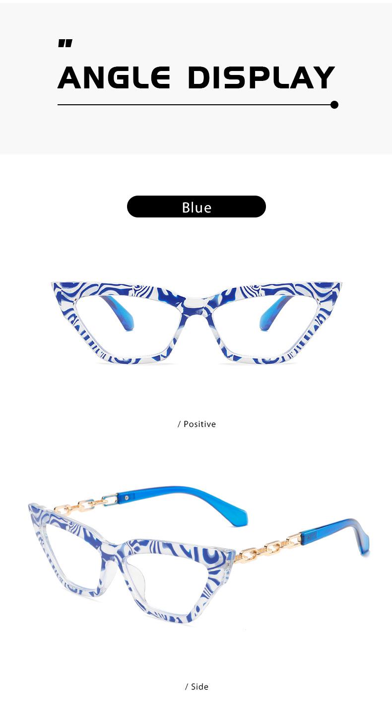 Nuevo Gafas Planas Metálicas con Cadena Transfronterizas Estilo Ins Europeo y Americano Patrón Ojo de Gato Montura de Gafas Bl2411