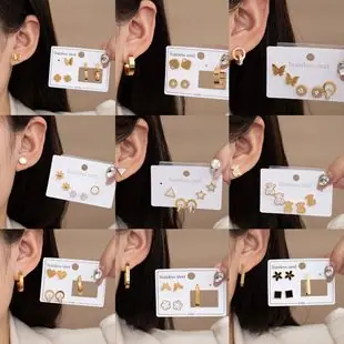 | Nicho de comercio exterior transfronterizo sentido de alta gama exquisitos aretes de moda con incrustaciones de diamantes aros para la oreja de acero de titanio aretes de temperamento de oro de 18 quilates de moda | Set de aretes de círculo de estrella simple y elegante para mujer Europeo y americano transfronterizo exagerado flor aros para la oreja temperamento sentido de alta gama aretes | Aretes de circonita de lazo de estilo popular transfronterizo para mujer, aretes de tuerca de trébol de cuatro hojas que no se decoloran, accesorios de alta gama de lujo ligero |