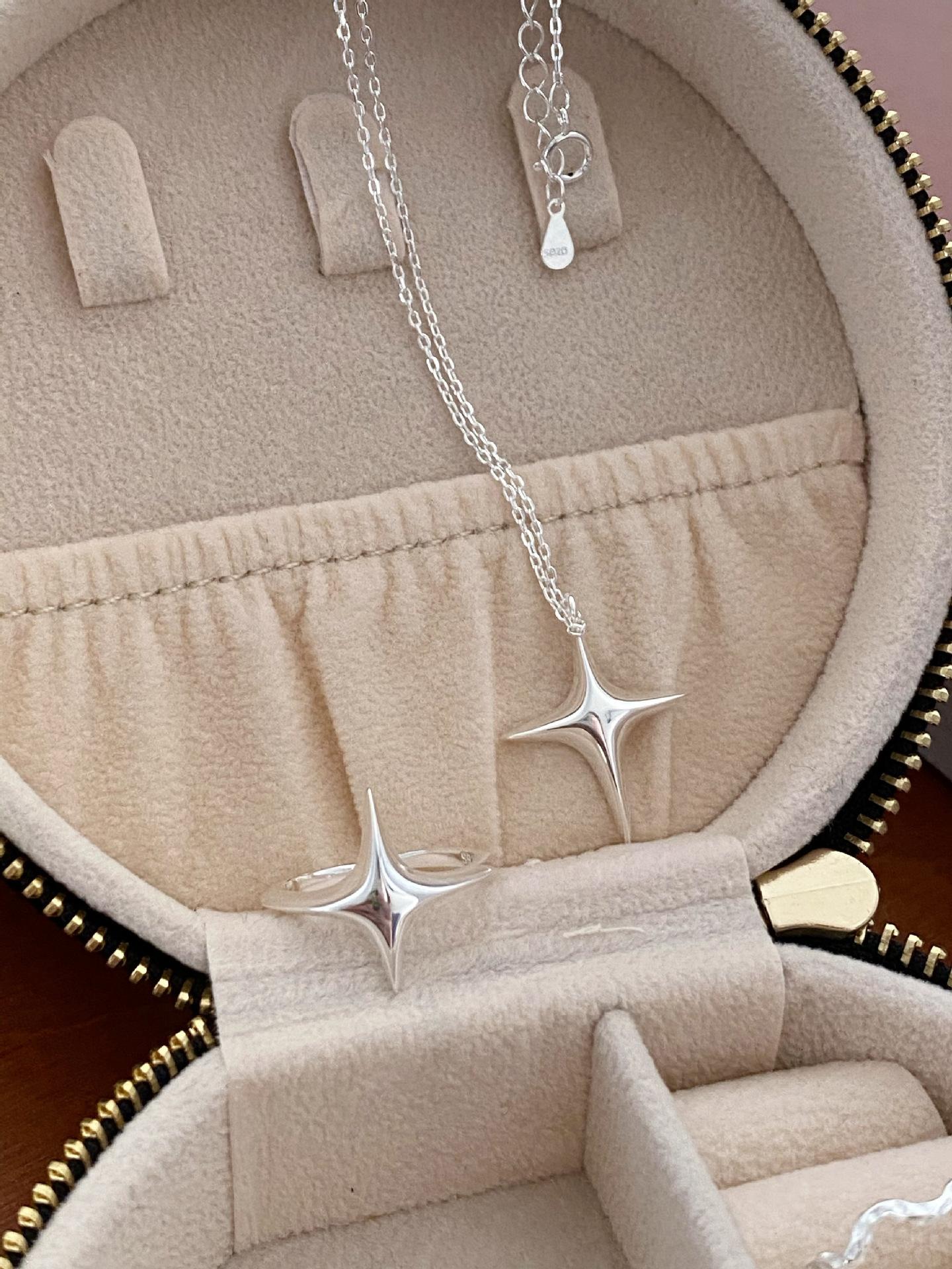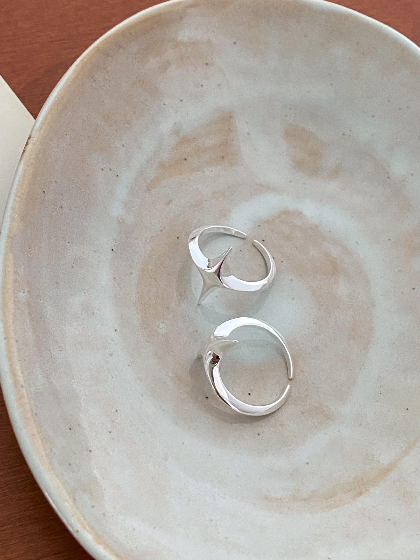 Anillo abierto con forma de estrella cruzada para mujer, sencillo, elegante, personalizado, chapado en plata S925, anillo abierto que combina con todo.