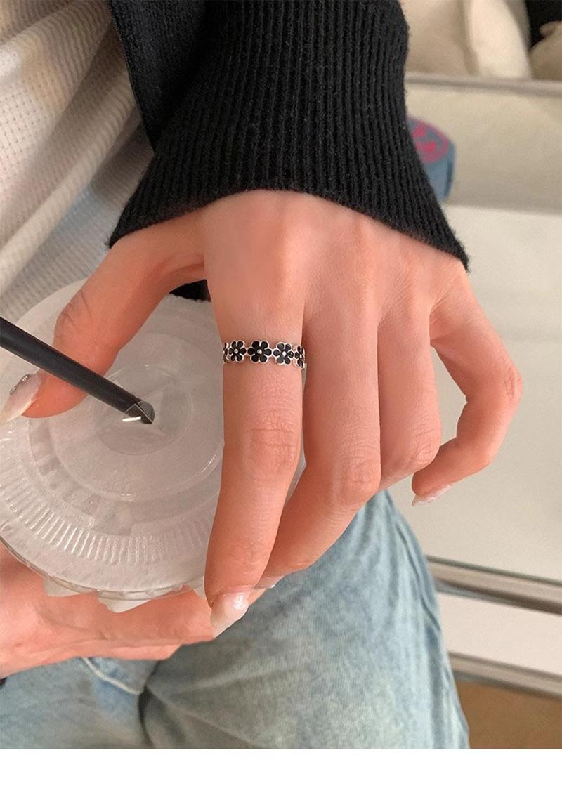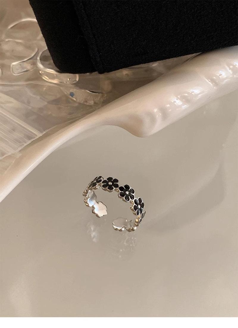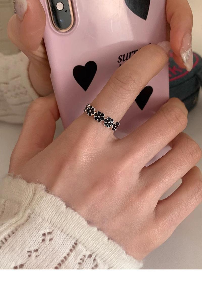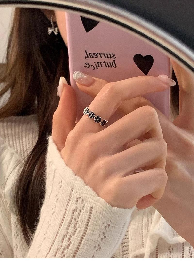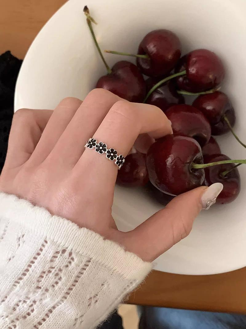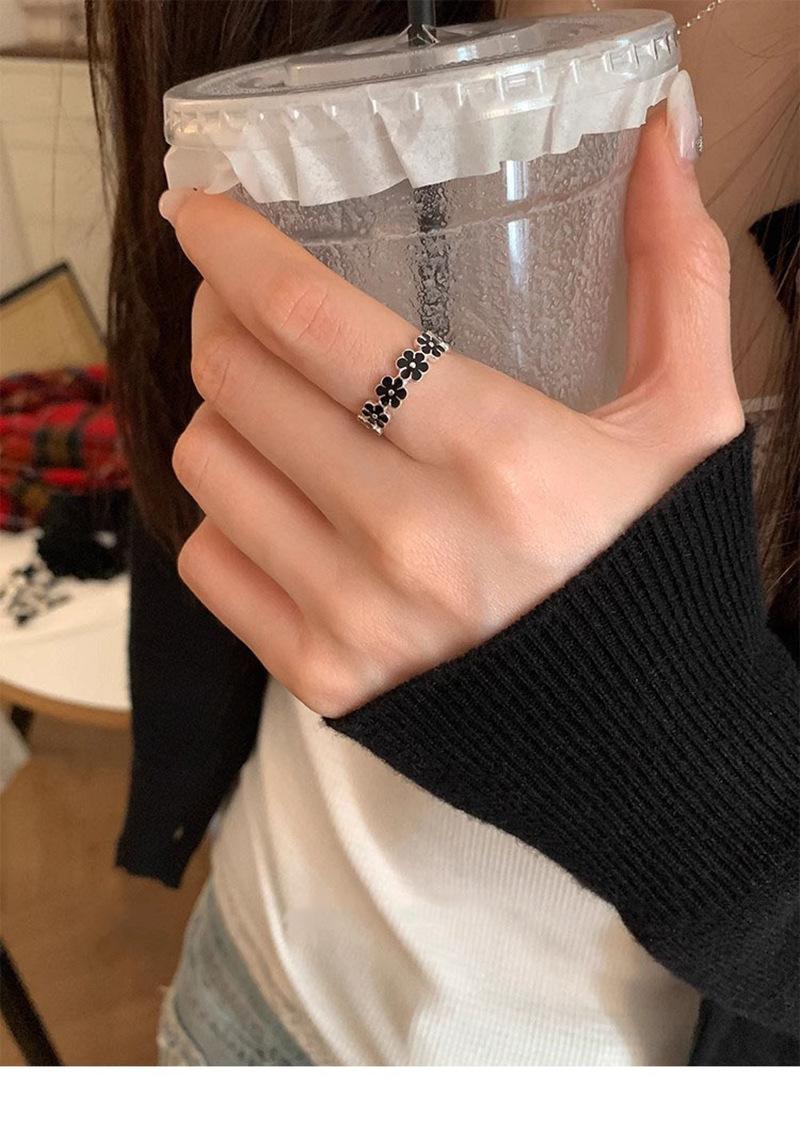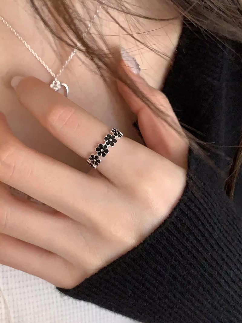 Anillo de flor negra estilo coreano para mujer, sencillo, estilo frío, moderno, con apertura distintiva, ajustable, regalo