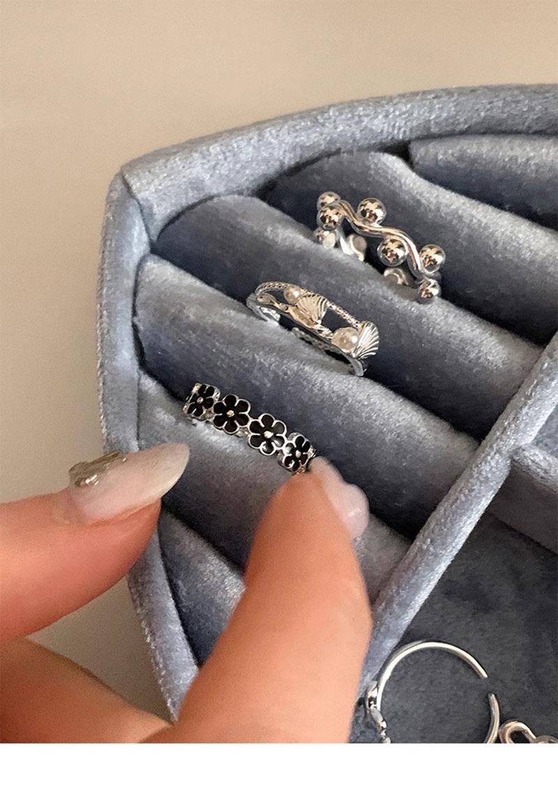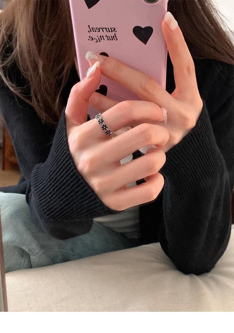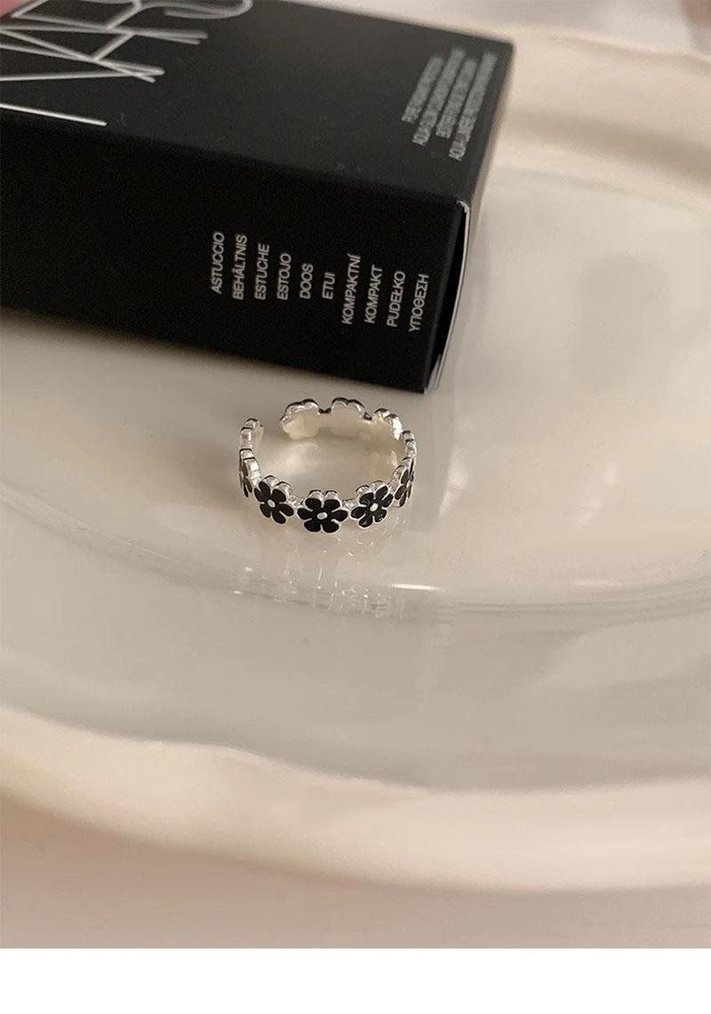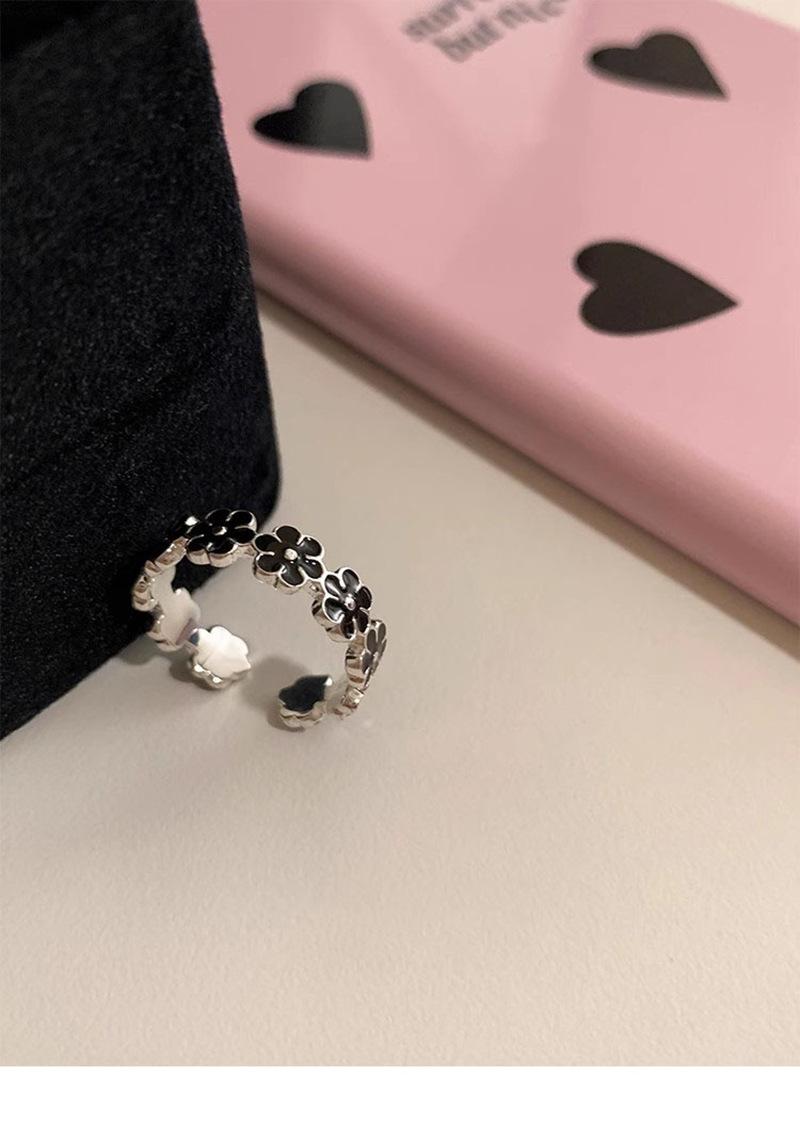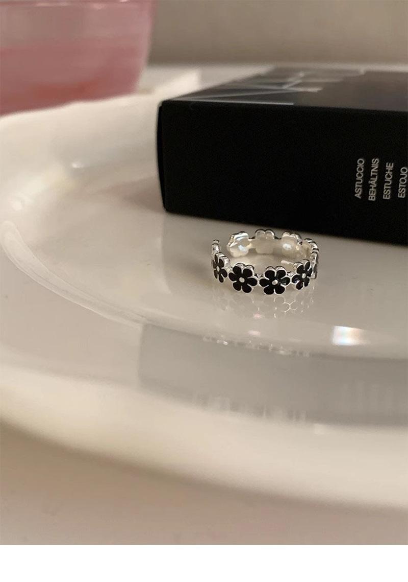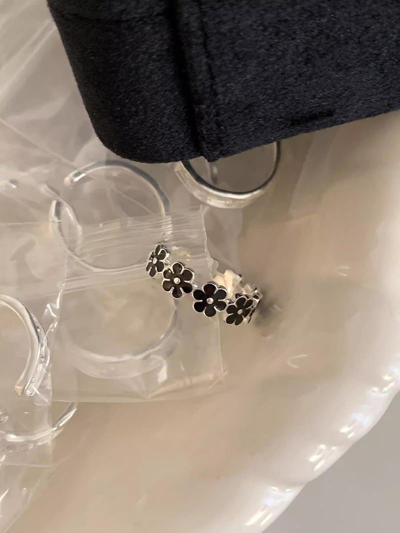 Anillo de flor negra estilo coreano para mujer, sencillo, estilo frío, moderno, con apertura distintiva, ajustable, regalo