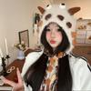 Gorro de punto hecho a mano con diseño de monstruo de caramelo para otoño e invierno, gorro de lana de felpa divertido con dibujos animados para niños, gorro cálido con protección para las orejas.