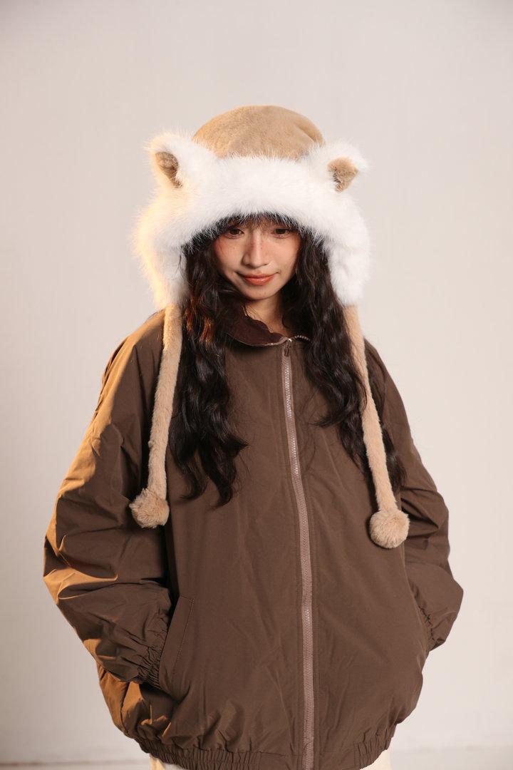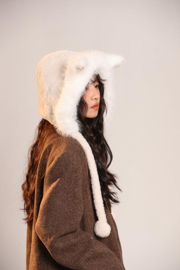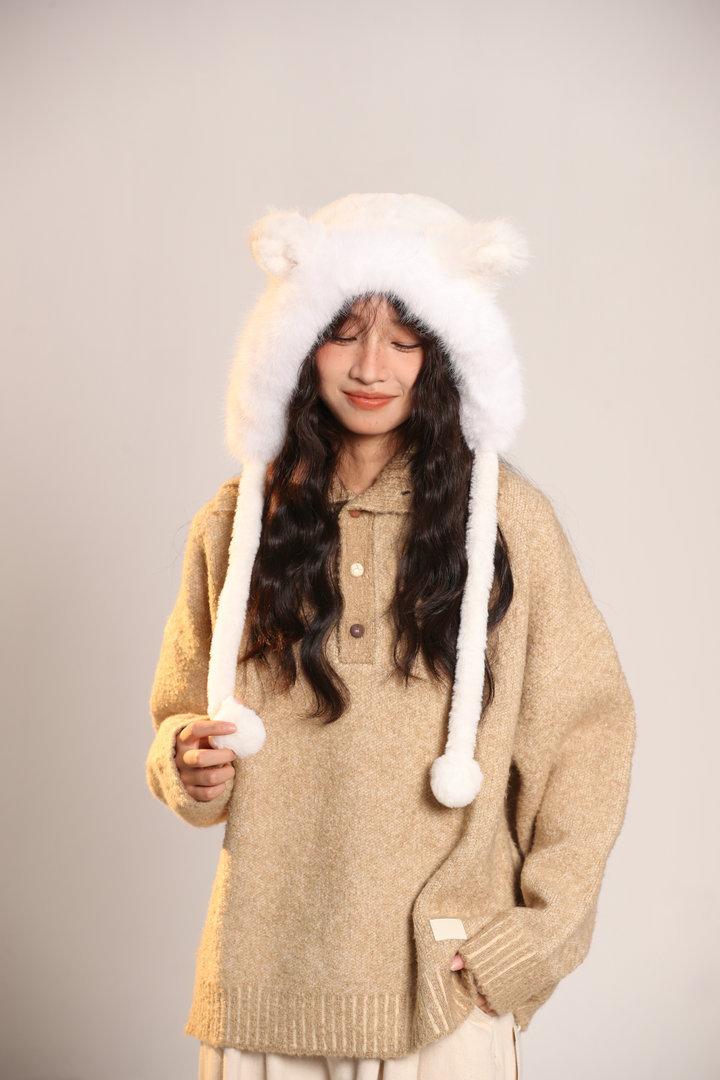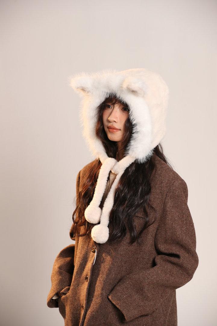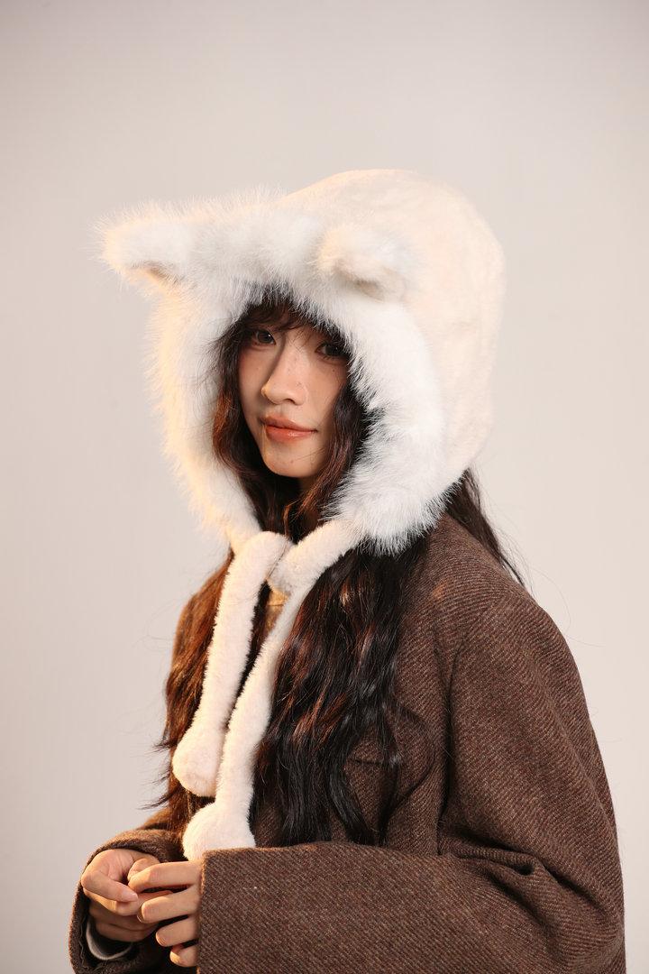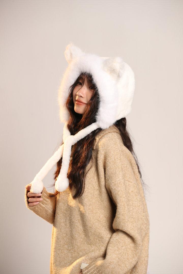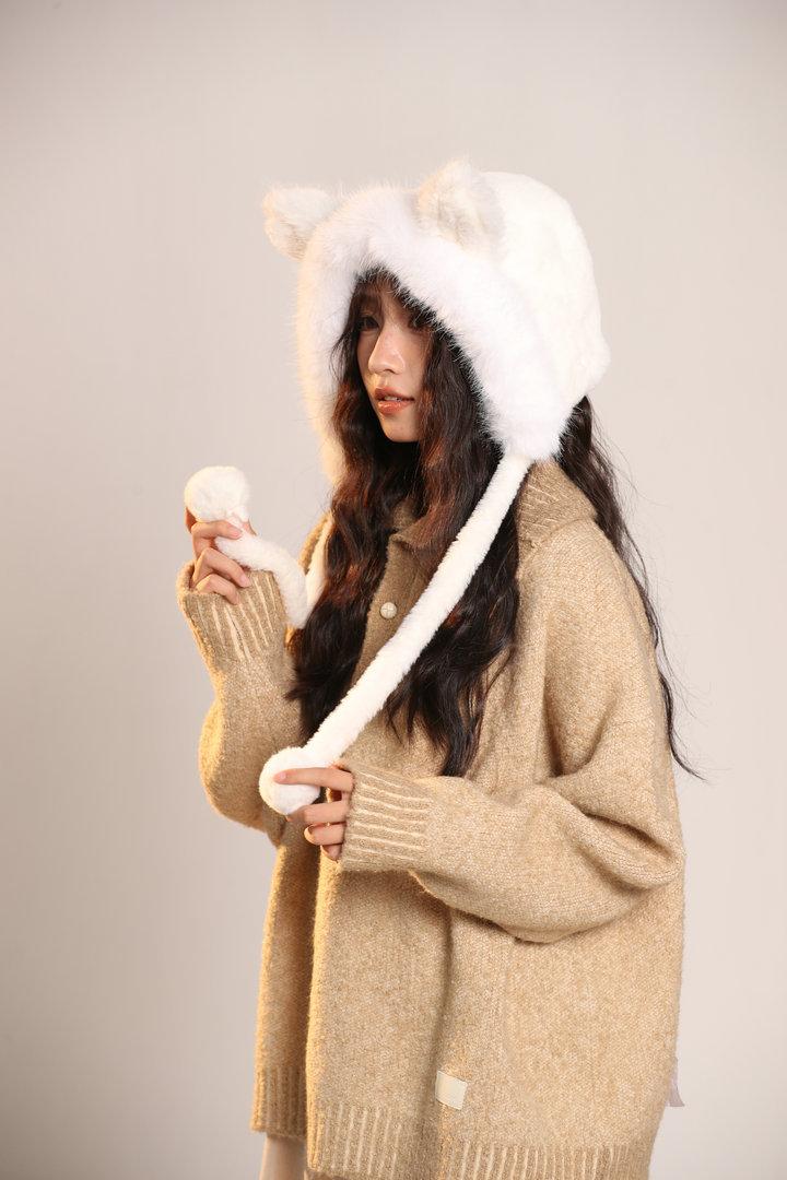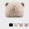 Sombrero de Felpa con Orejas de Gato de Piel de Zorro para Mujer Estilo K Invierno Nuevo Combinación de Colores Protección para las Orejas Moda Versátil Cálido Sombrero Lei Feng