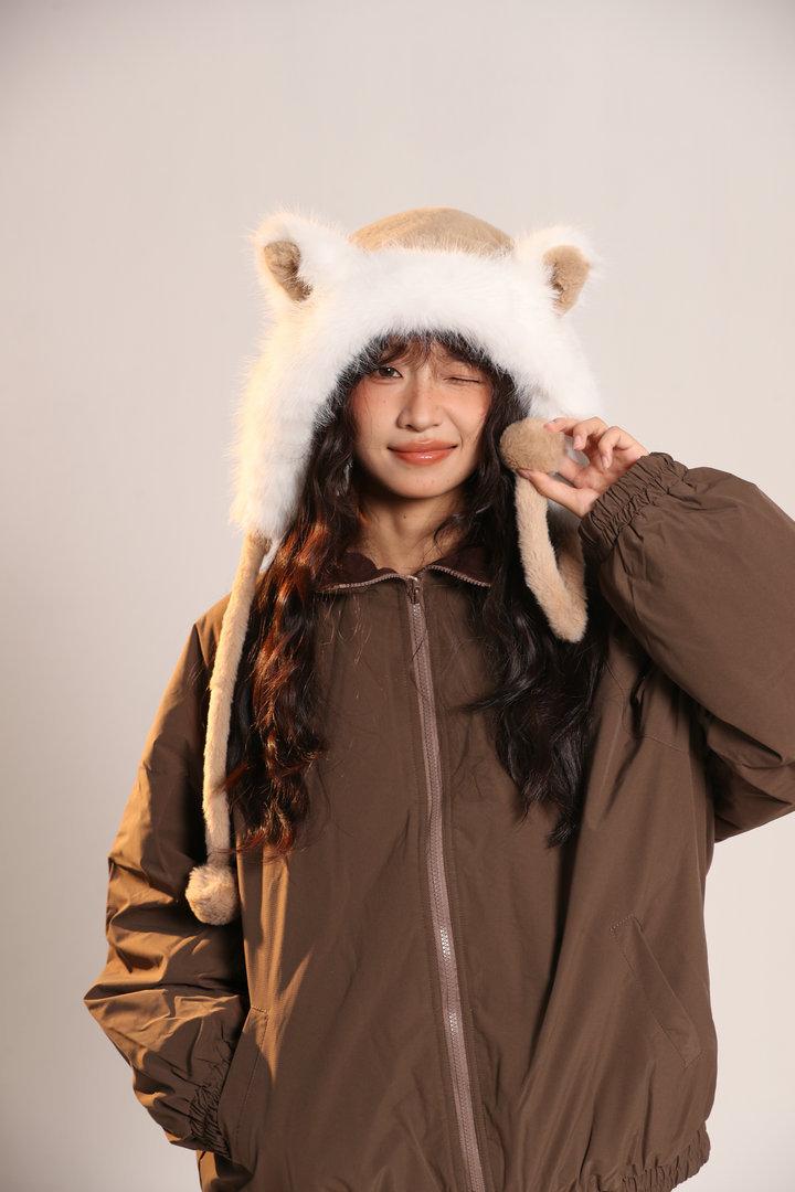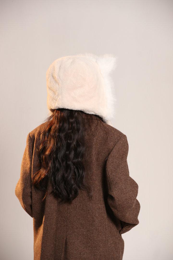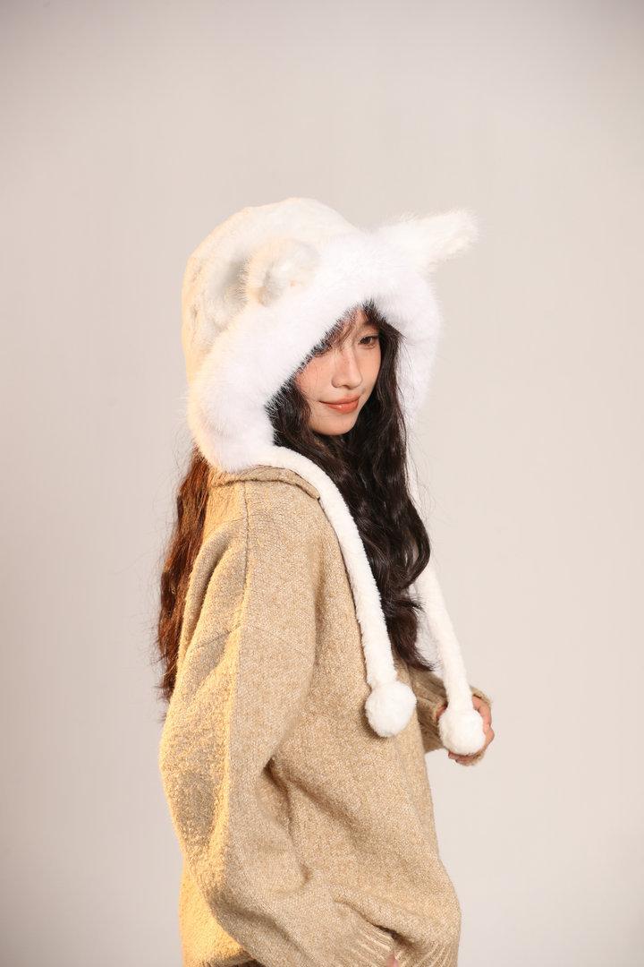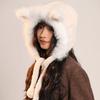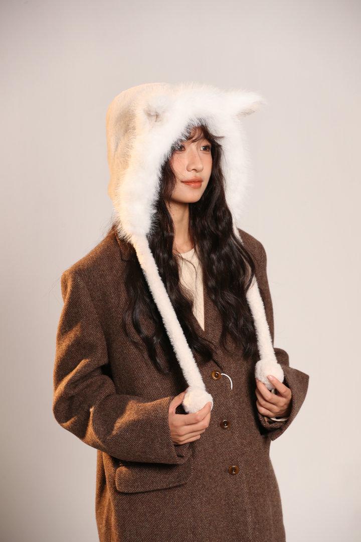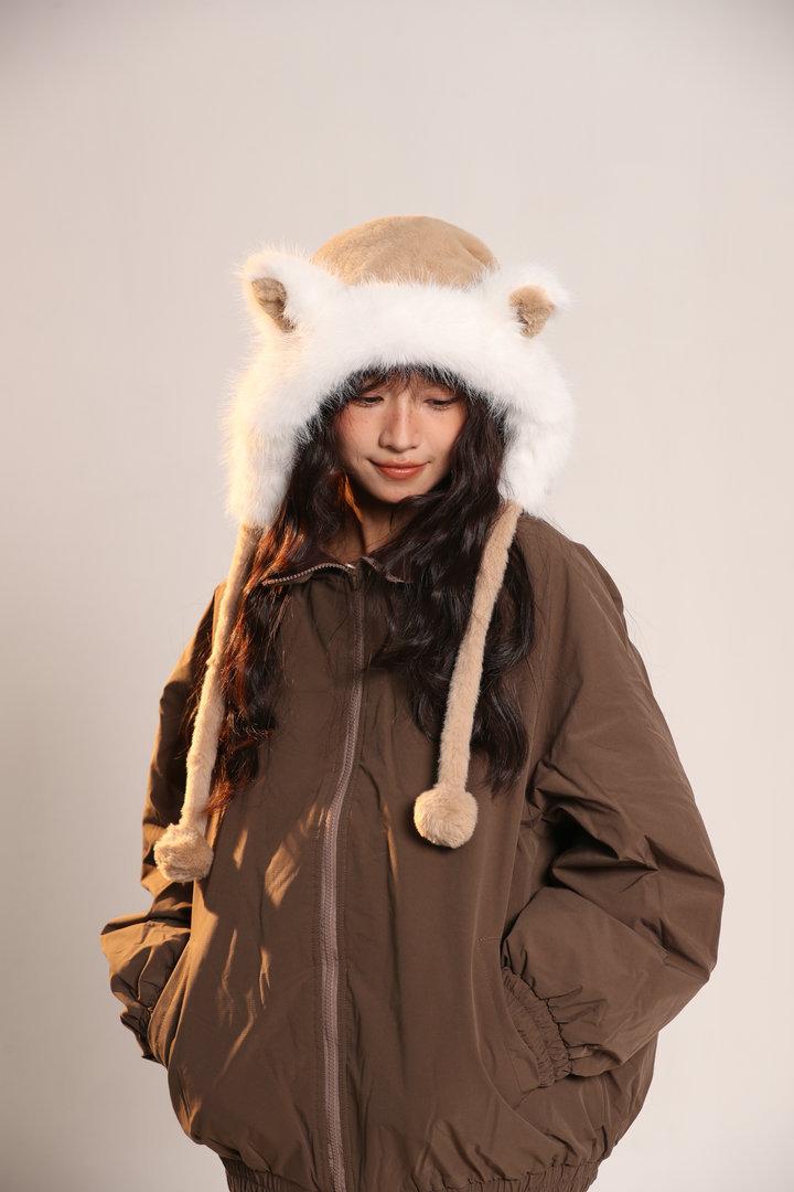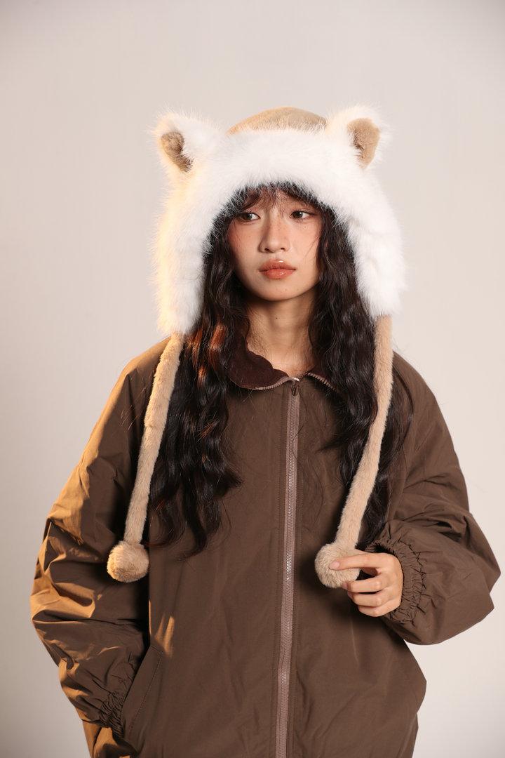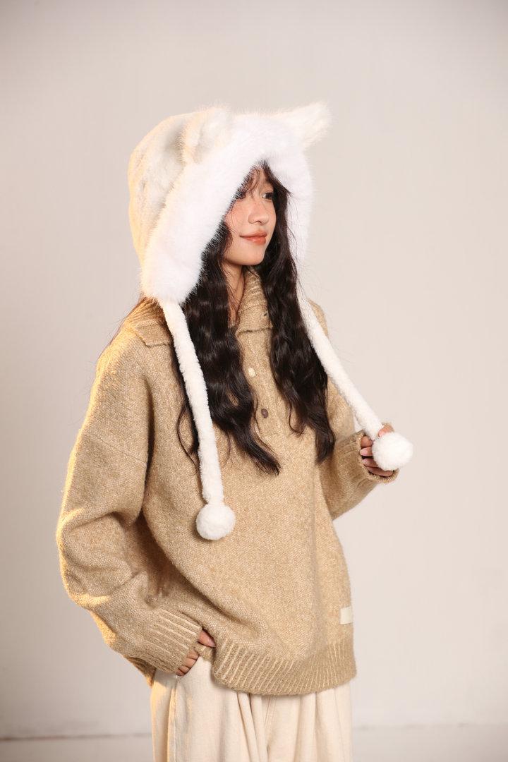 Sombrero de Felpa con Orejas de Gato de Piel de Zorro para Mujer Estilo K Invierno Nuevo Combinación de Colores Protección para las Orejas Moda Versátil Cálido Sombrero Lei Feng