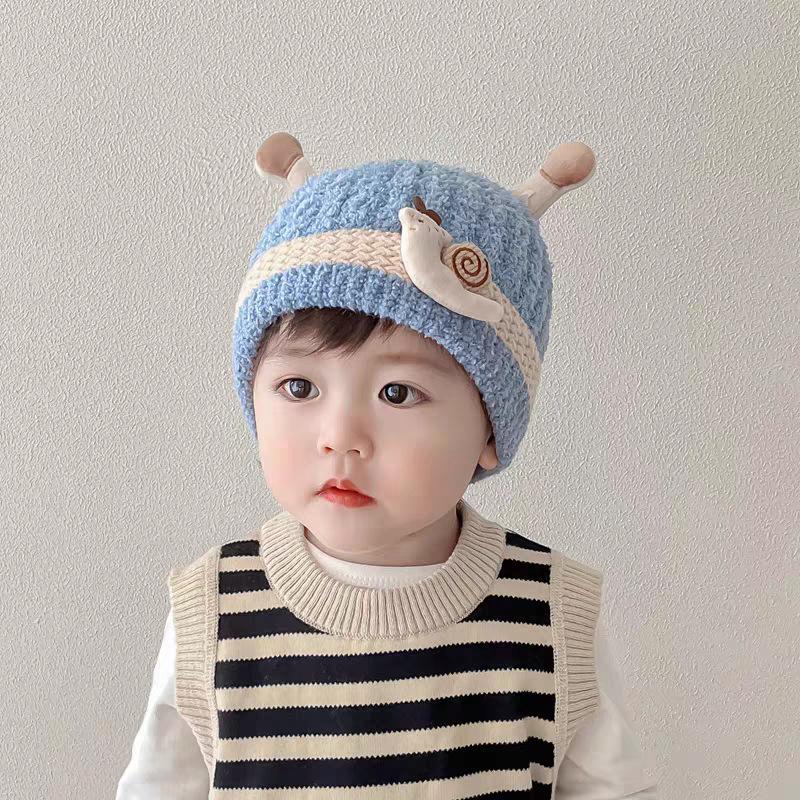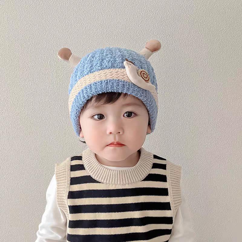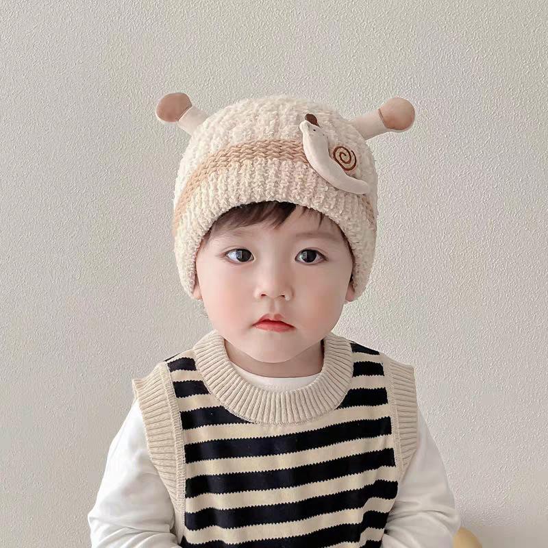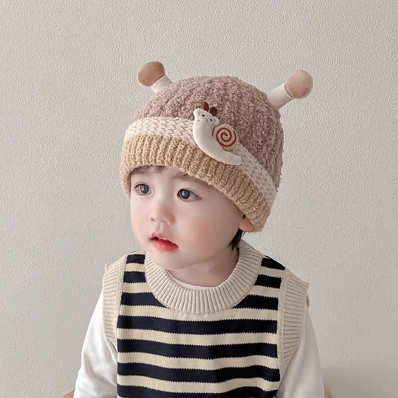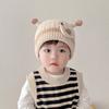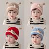 Gorro de bebé de otoño e invierno, gorro de punto con dibujos animados para niño, gorro de lana grueso y cálido con protección para las orejas y felpa para bebé.