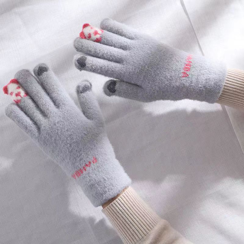 Guantes de lana para mujer, bonitos guantes de dibujos animados para estudiantes, cálidos y combinables, moda coreana para otoño e invierno, resistentes al viento, para montar a caballo y conducir con pantalla táctil.