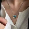 Collar de joya de cristal azul simple europeo y americano, cadena de lana de estilo industrial pesado retro, personalidad de nicho, cadena de cuello de estilo frío a la moda.