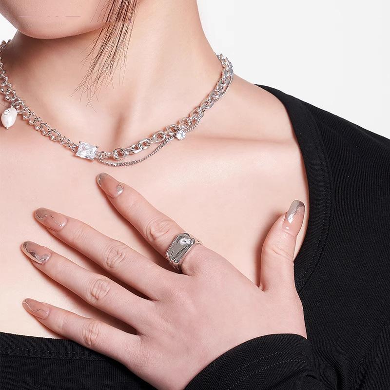 Geometría Anillo Cuadrado de Zirconio Original para Mujer Apertura Ajustable Nuevo Estilo Personalidad Simple Moda Nicho Sentido Avanzado Anillo de Dedo