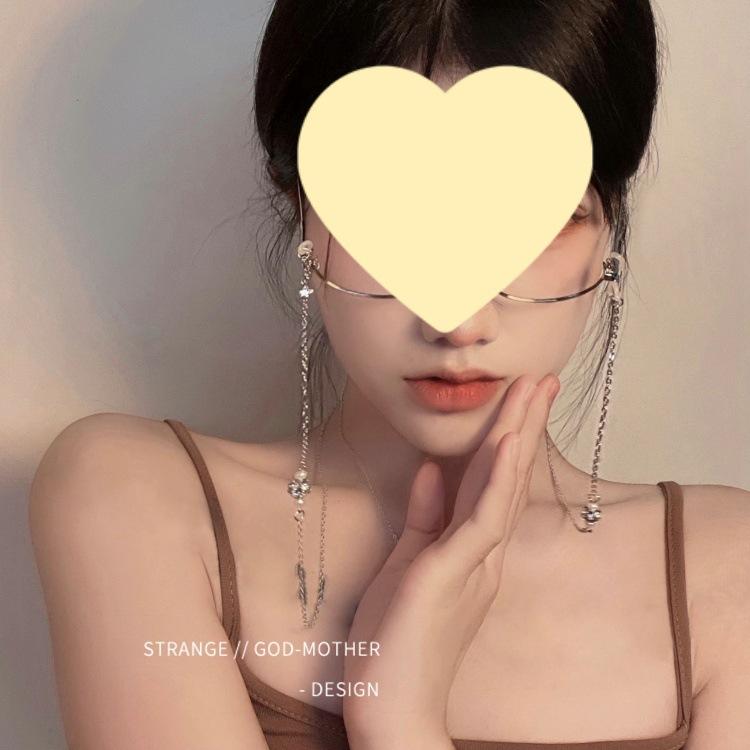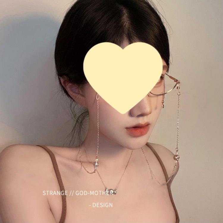 Montura de gafas de cadena media montura inferior gafas para mujeres y hombres sin lentes cadena decorativa de cinturón para cumpleaños fiesta divertida cadena colgante