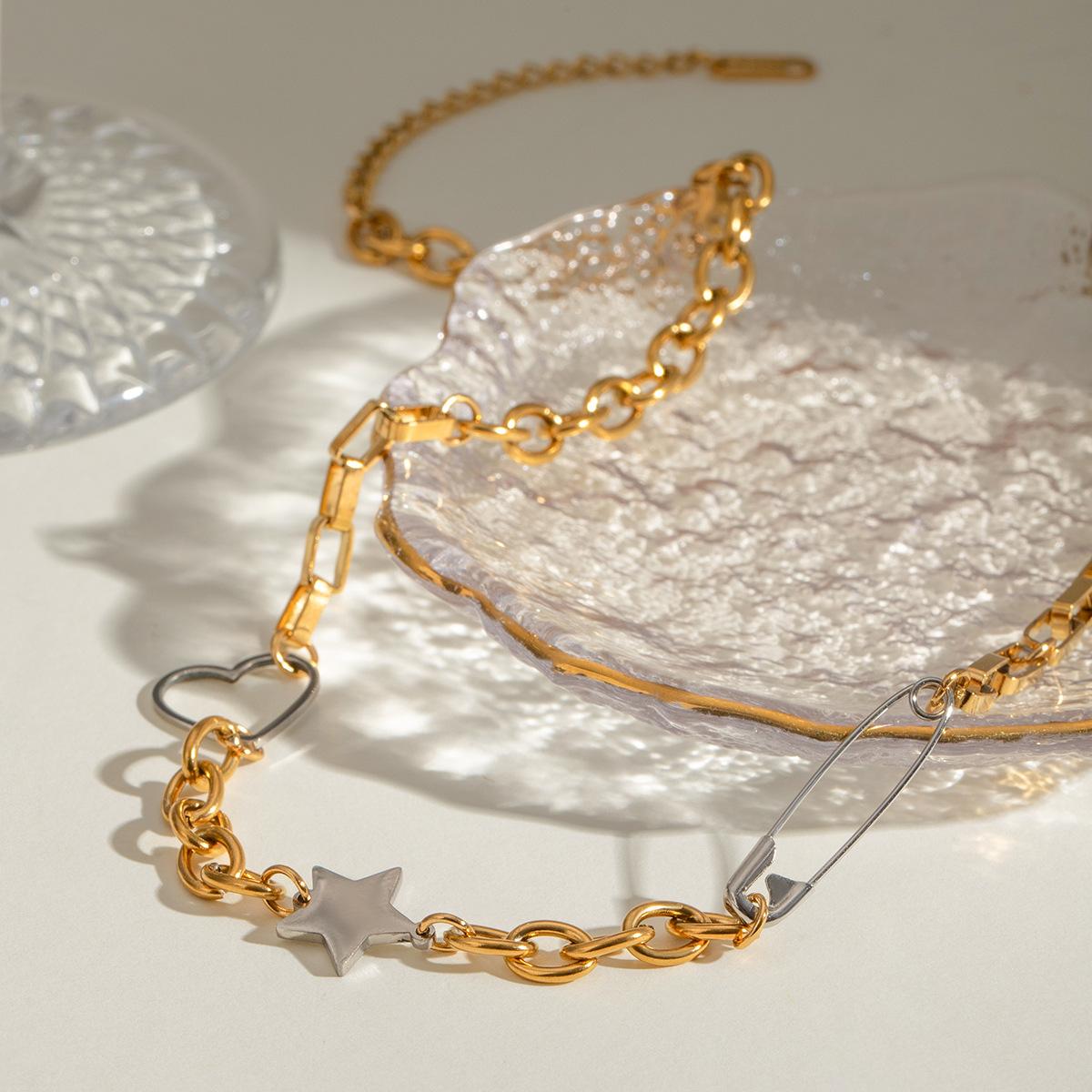 Diseño silencioso estrella de cinco puntas clásico oro de 18k y combinación de colores plata collar de estrella de cinco puntas clip de papel amor collar de acero inoxidable