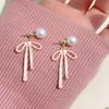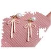 Pink Bow Pearl Stud Earrings