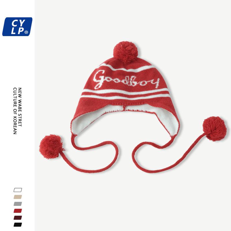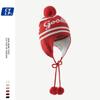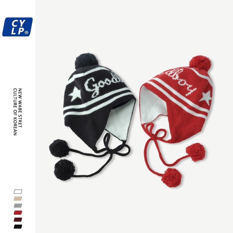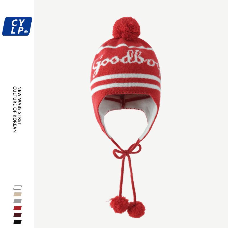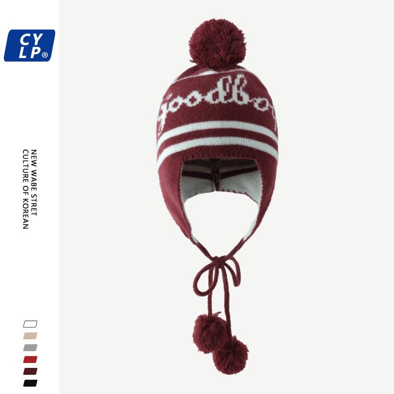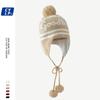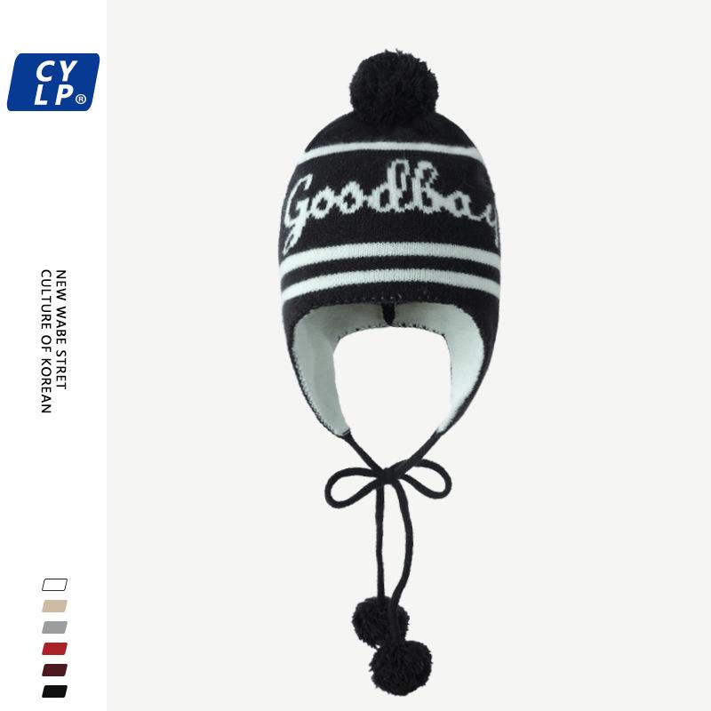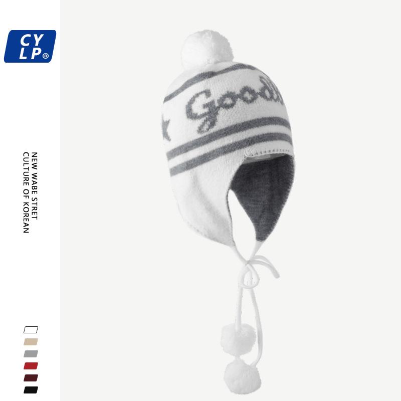Lindo gorro de punto con pompón de piel para mujer, invierno, forrado de vellón, a prueba de frío, cálido, moda coreana, marca de moda, gorro con orejeras con letras, gorro de lana