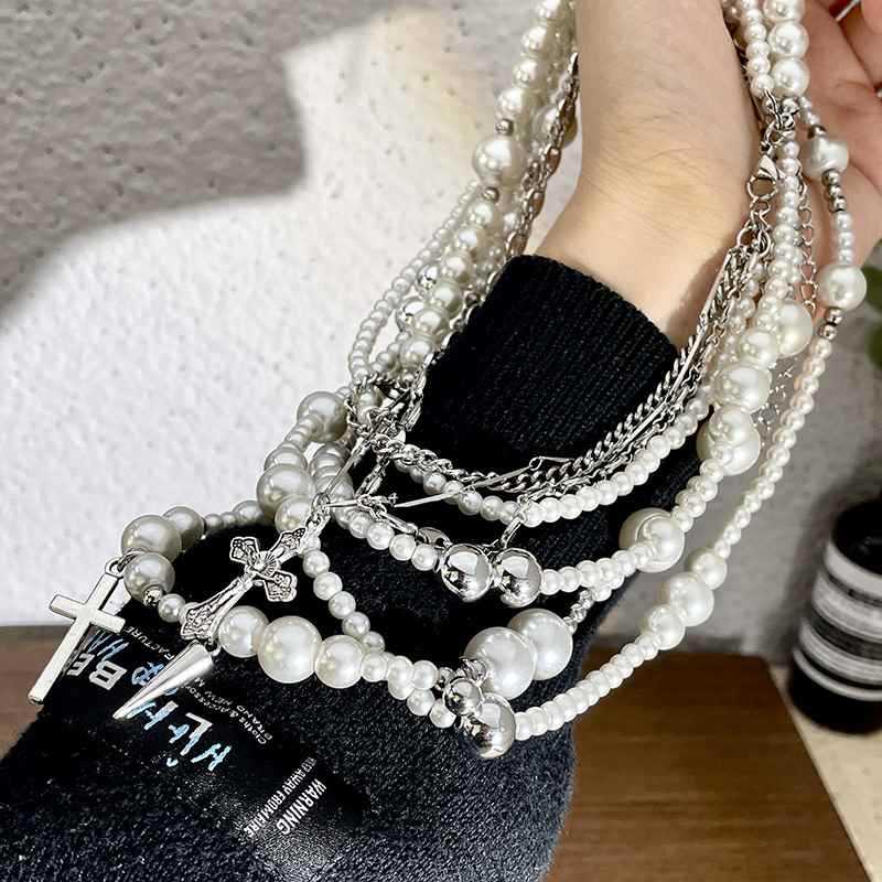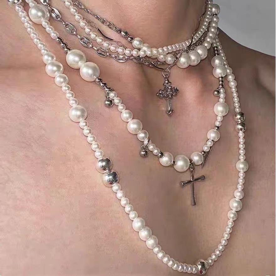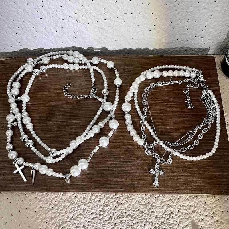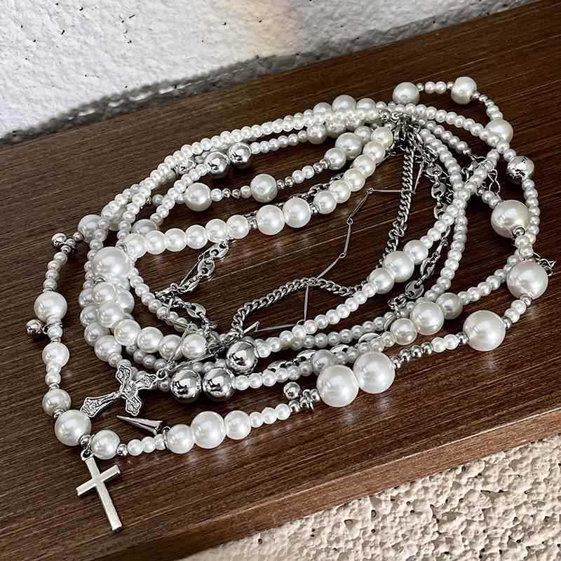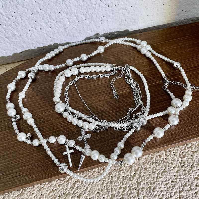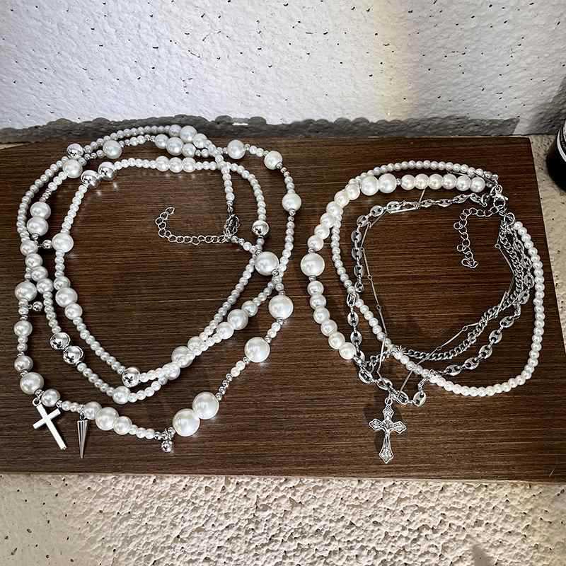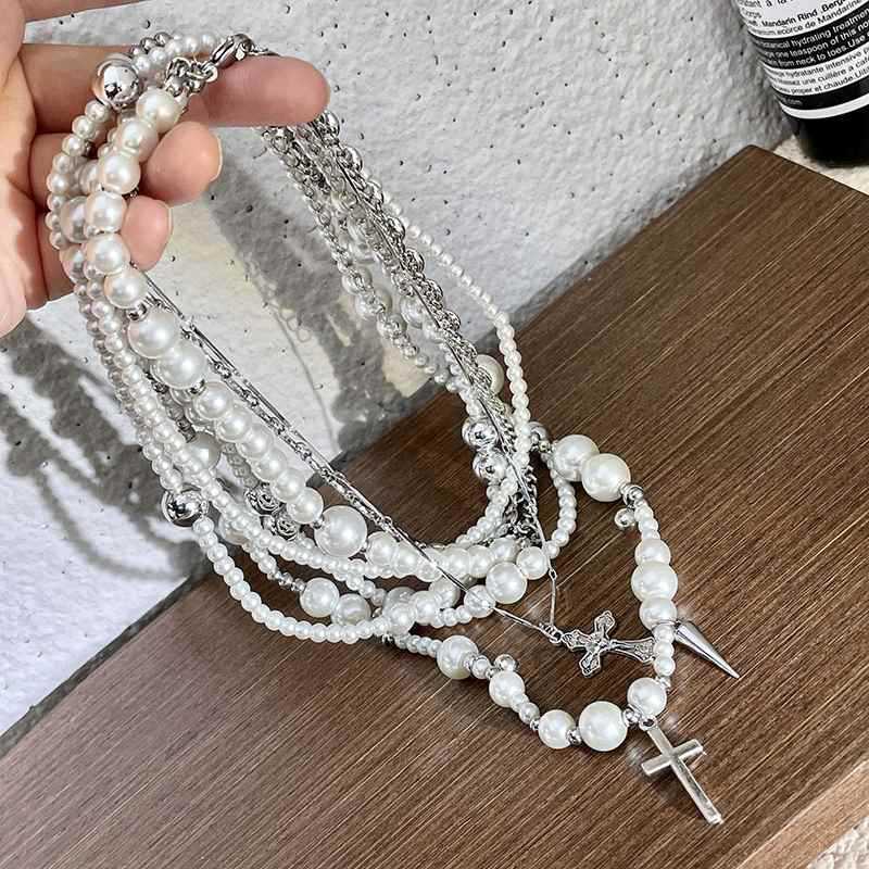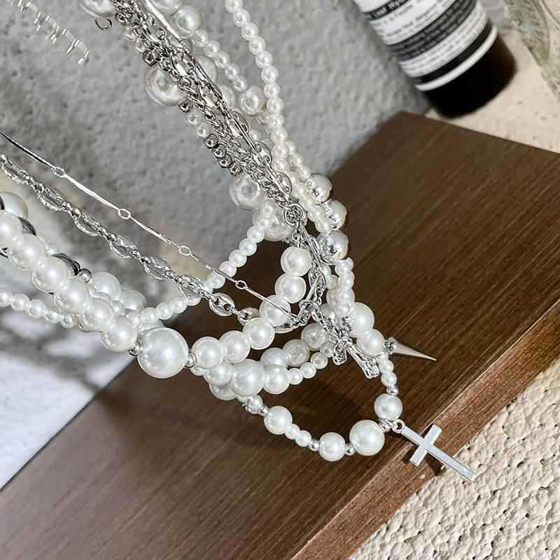 Collar de perlas de imitación cruzadas de múltiples capas, diseño de moda, cadena de clavícula, joyería ligera de lujo de alta gama para otoño e invierno.