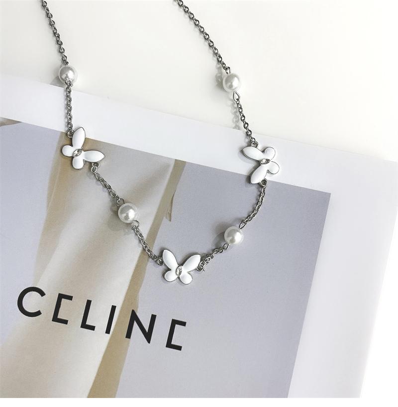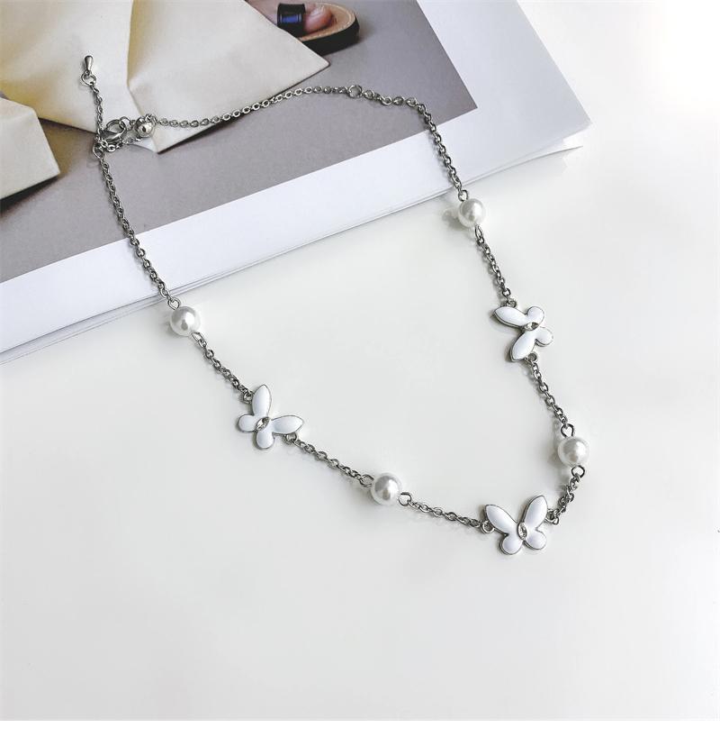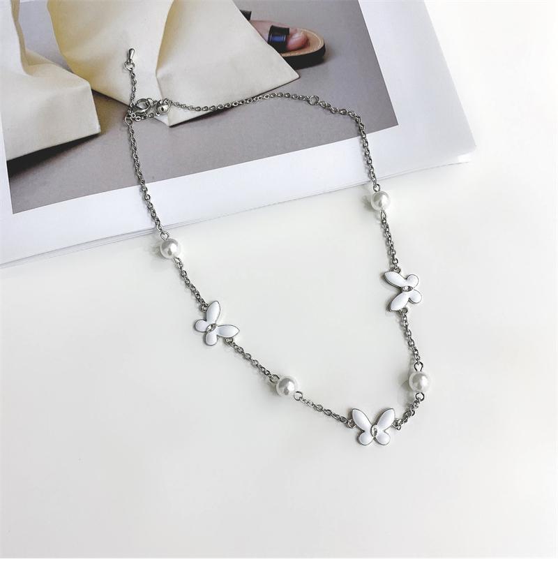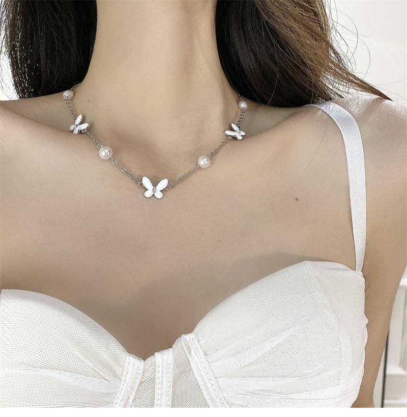 Collar de perlas de mariposa blanca, novedad de verano 2023, cadena de clavícula con diseño de nicho de hada súper femenina, accesorios para collar