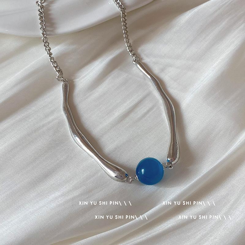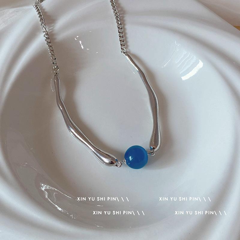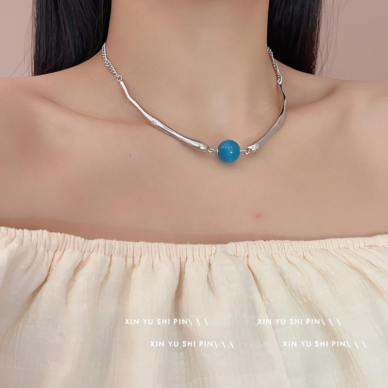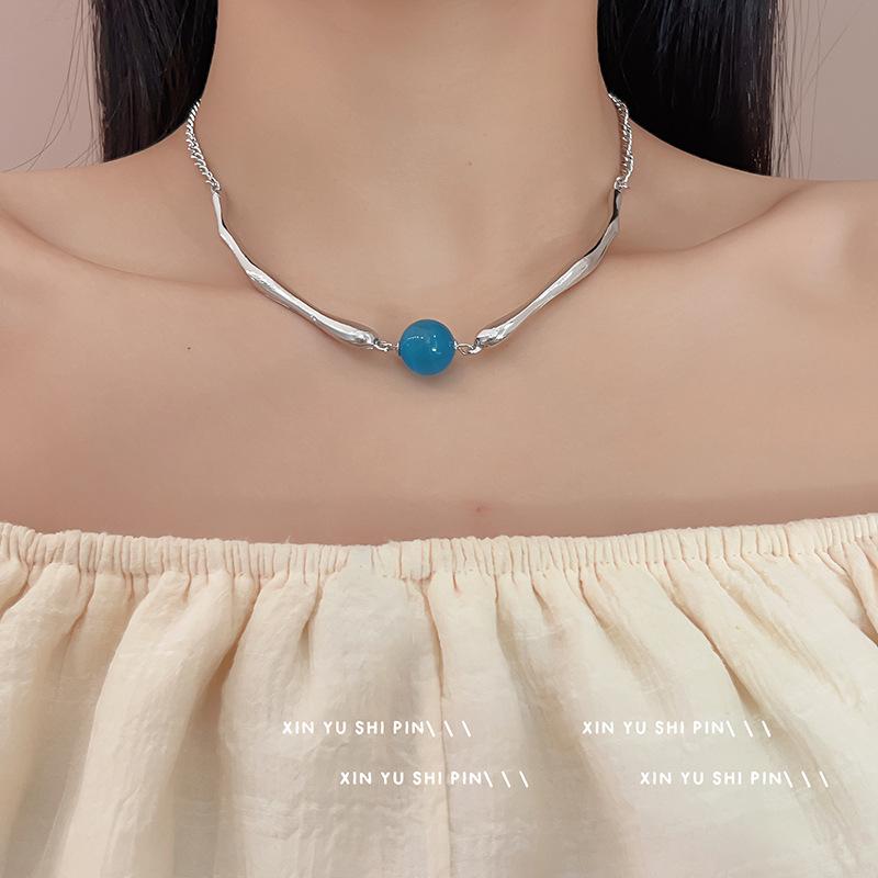 Collar con diseño de nicho simple para mujer, estilo mecánico punk Y2K, elegante collar con cadena de clavícula con cuentas azules