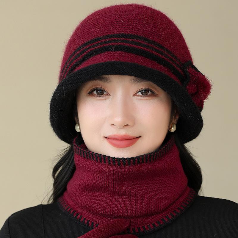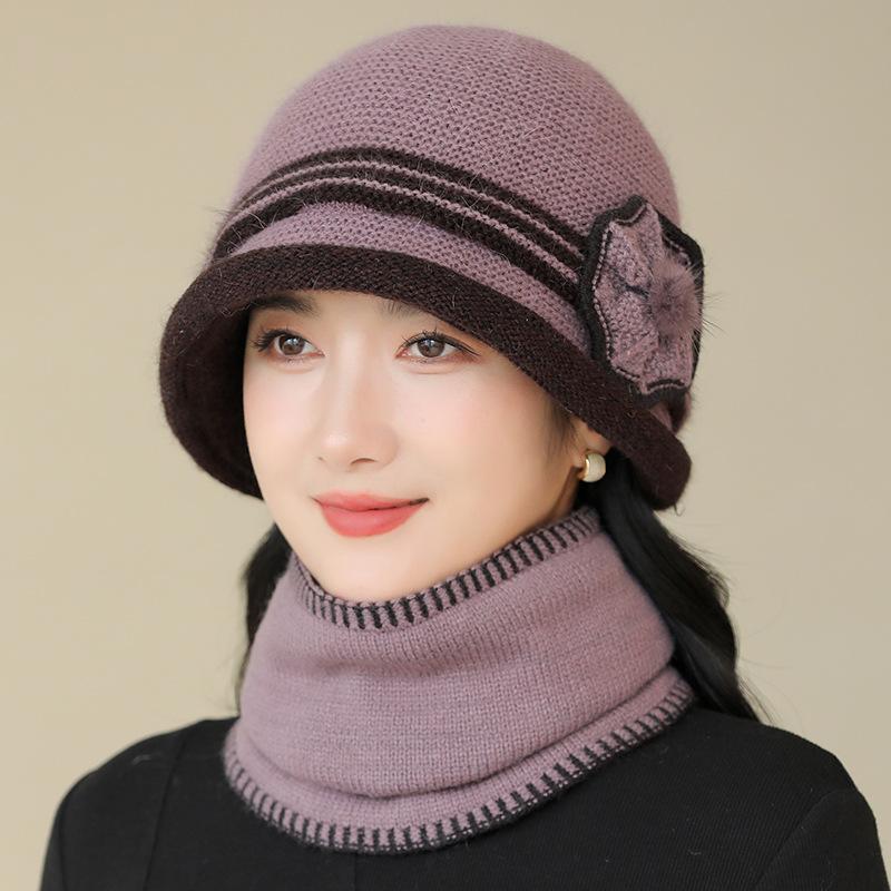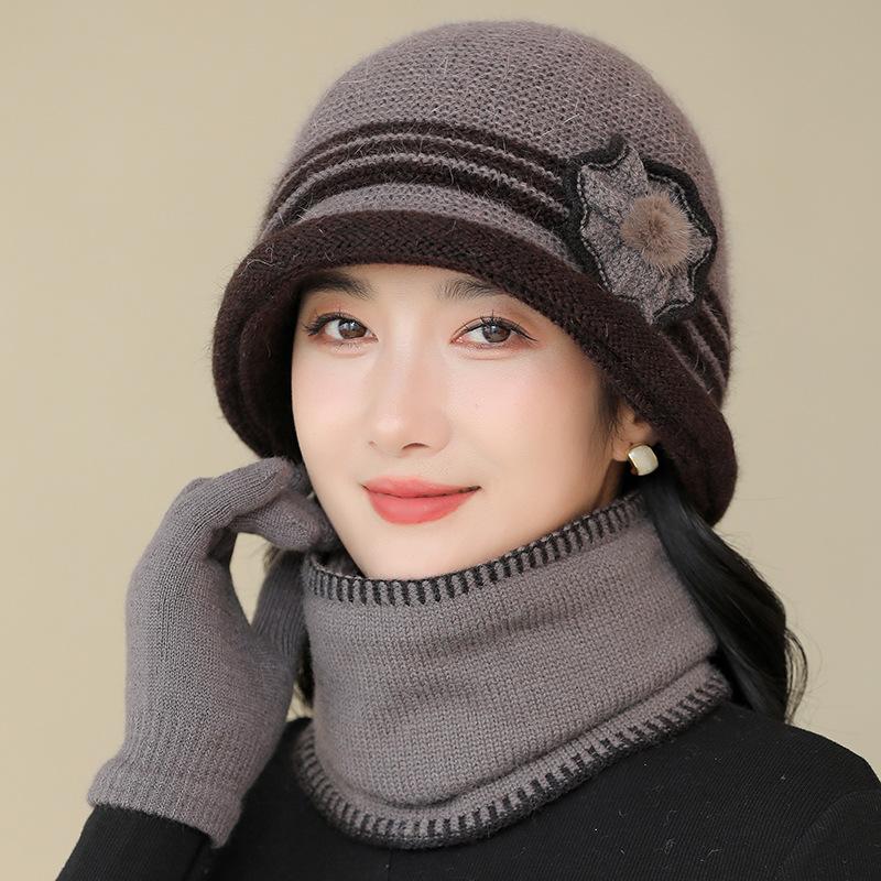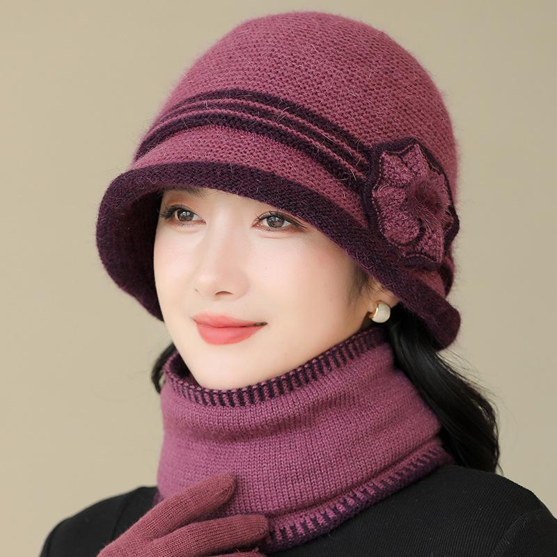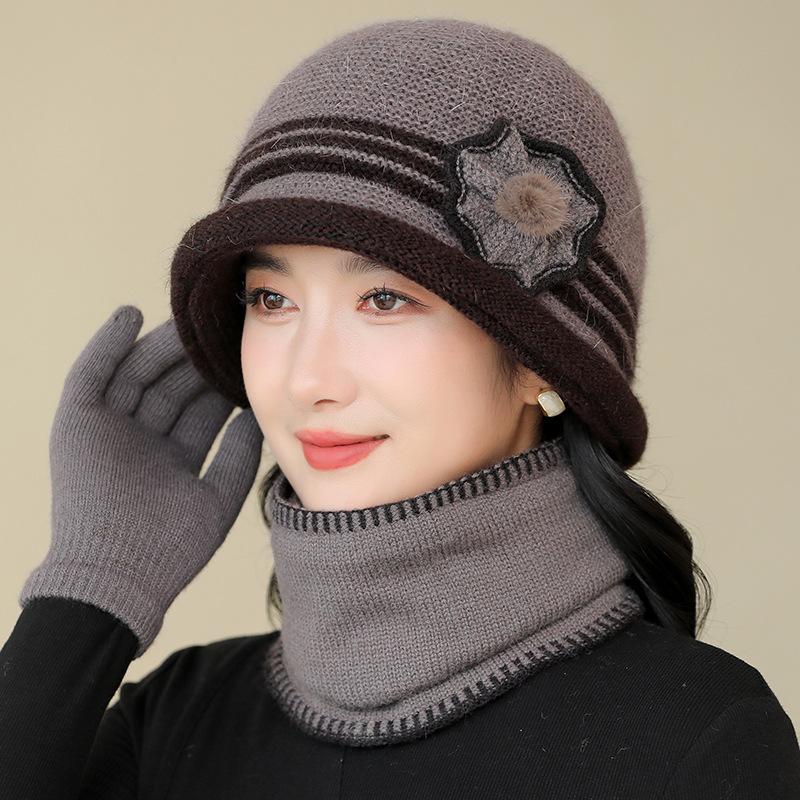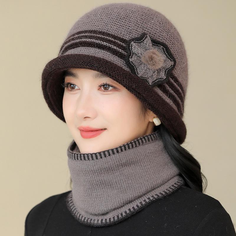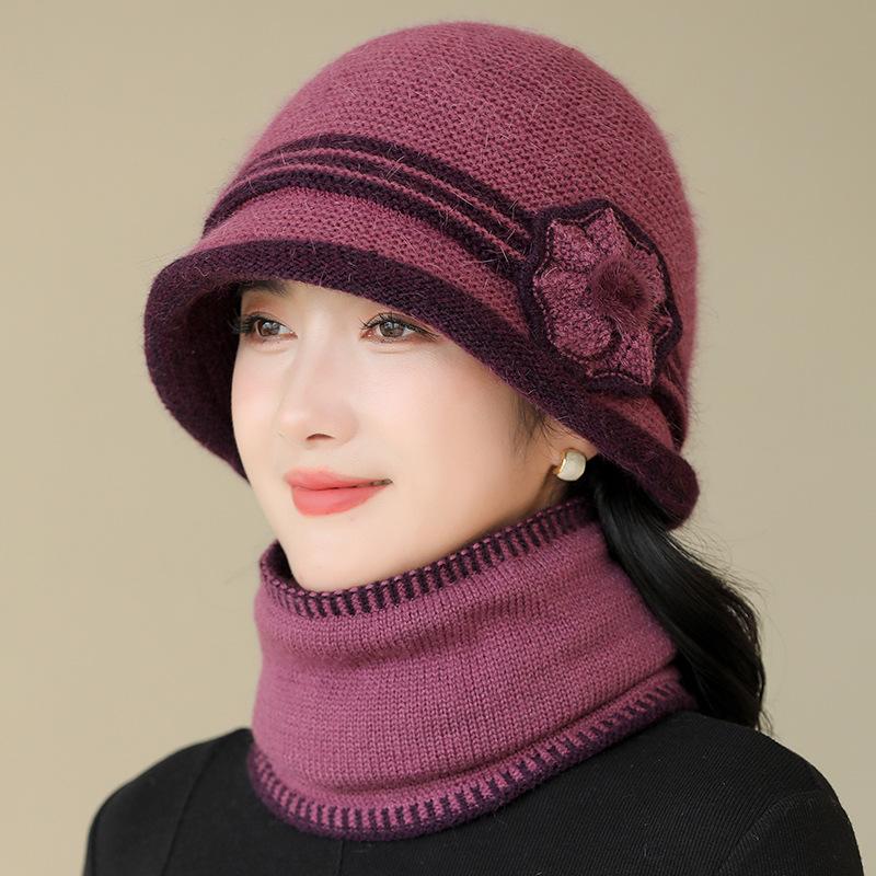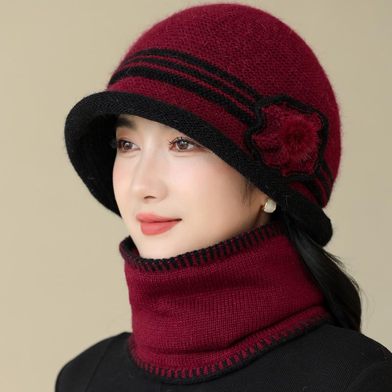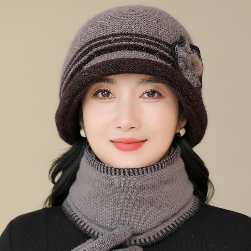 Gorro de punto cálido de invierno para mujer, temperamento de estilo extranjero, gorro de lana para mediana edad y ancianos, gorro grueso con forro polar, disponible al por mayor