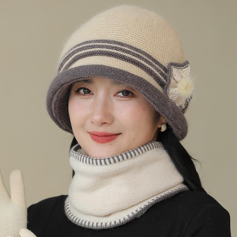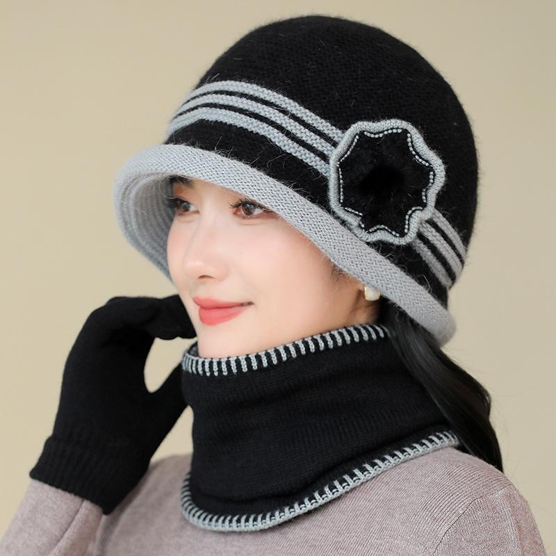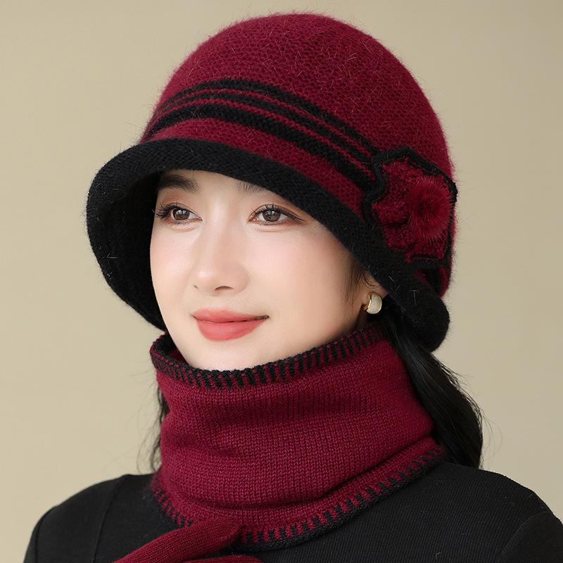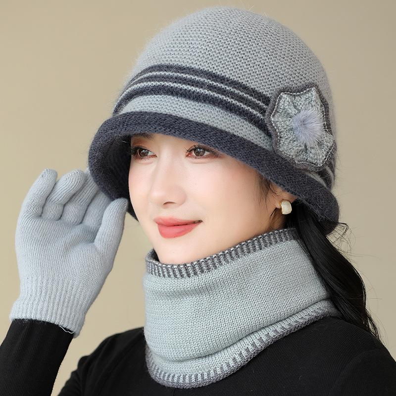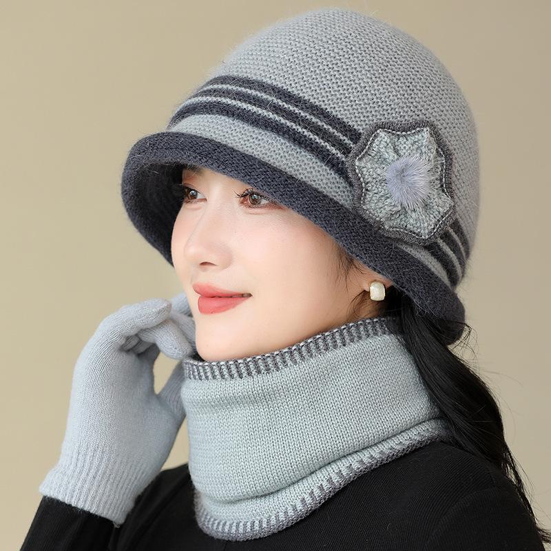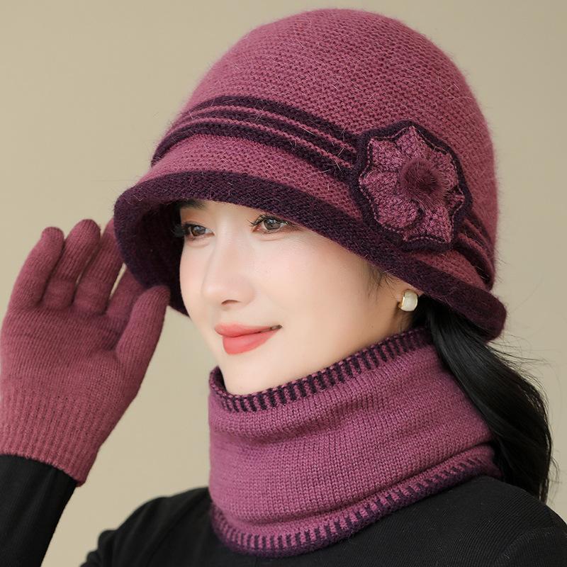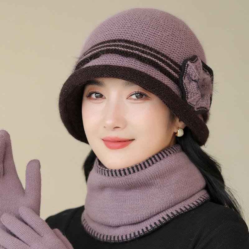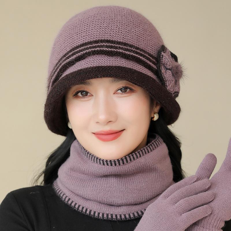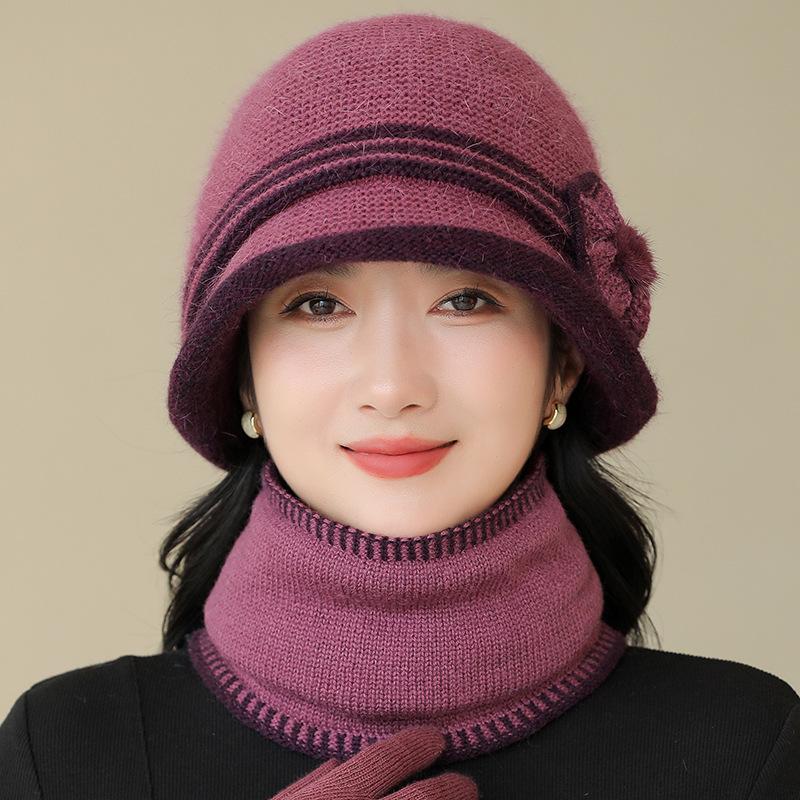 Gorro de punto cálido de invierno para mujer, temperamento de estilo extranjero, gorro de lana para mediana edad y ancianos, gorro grueso con forro polar, disponible al por mayor