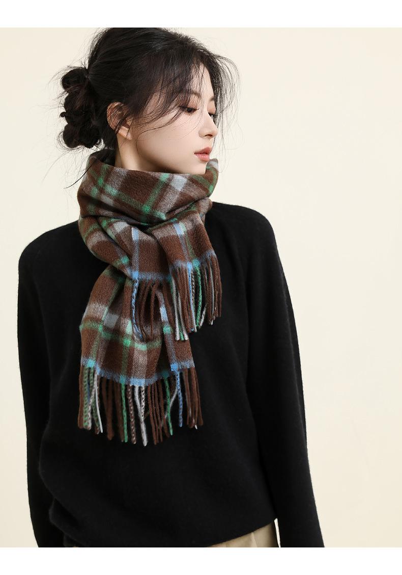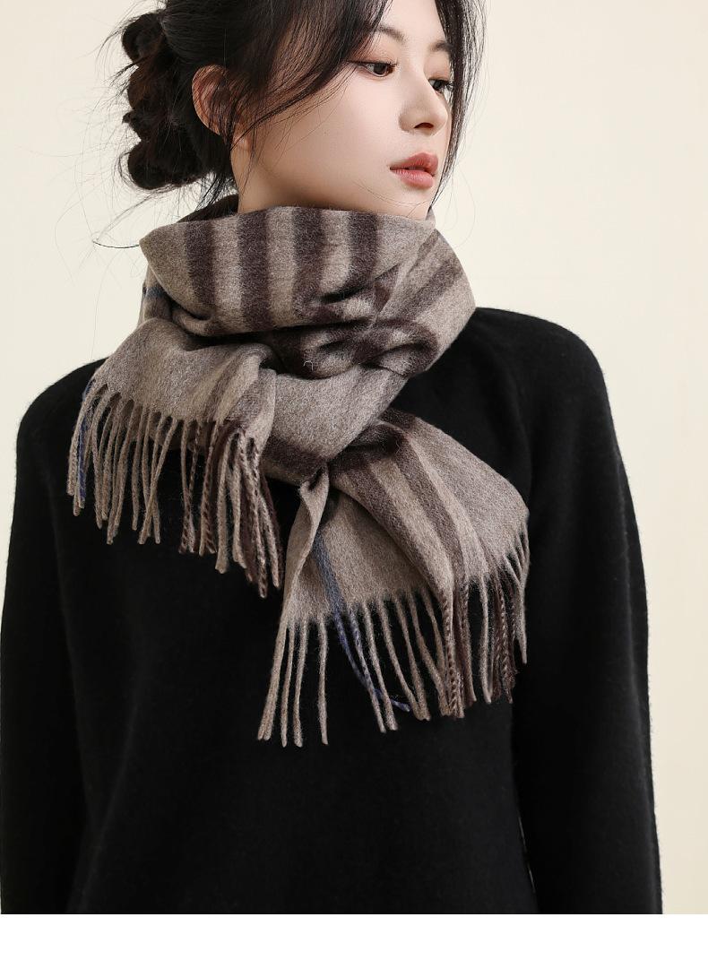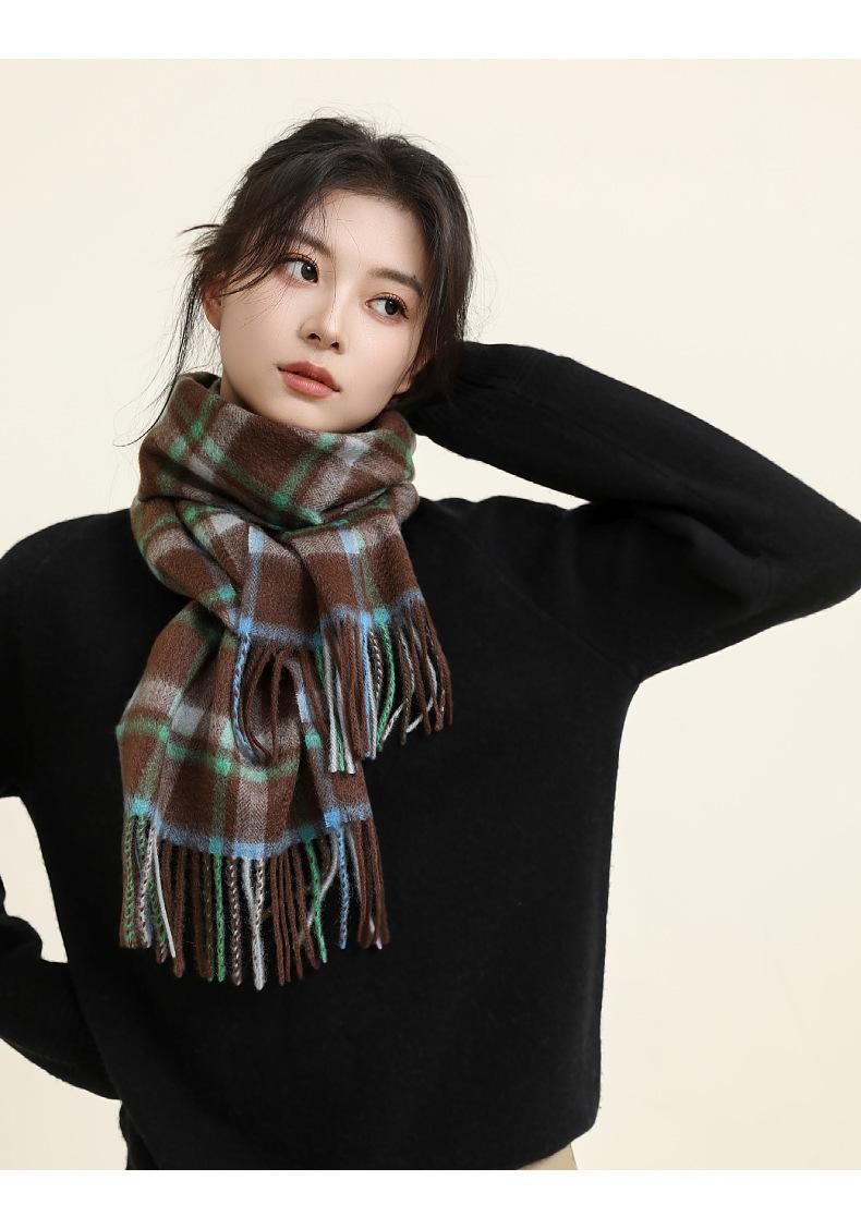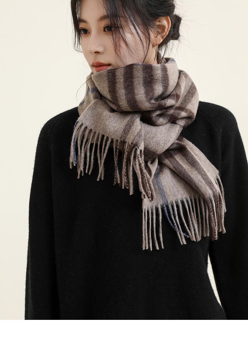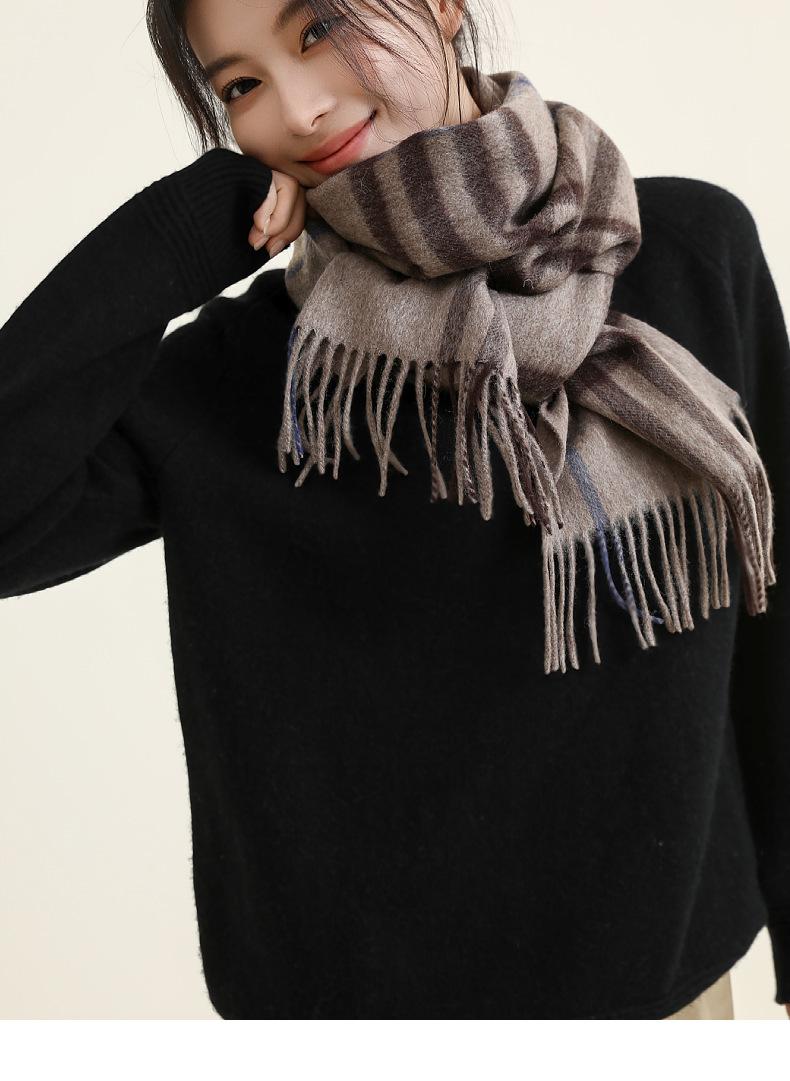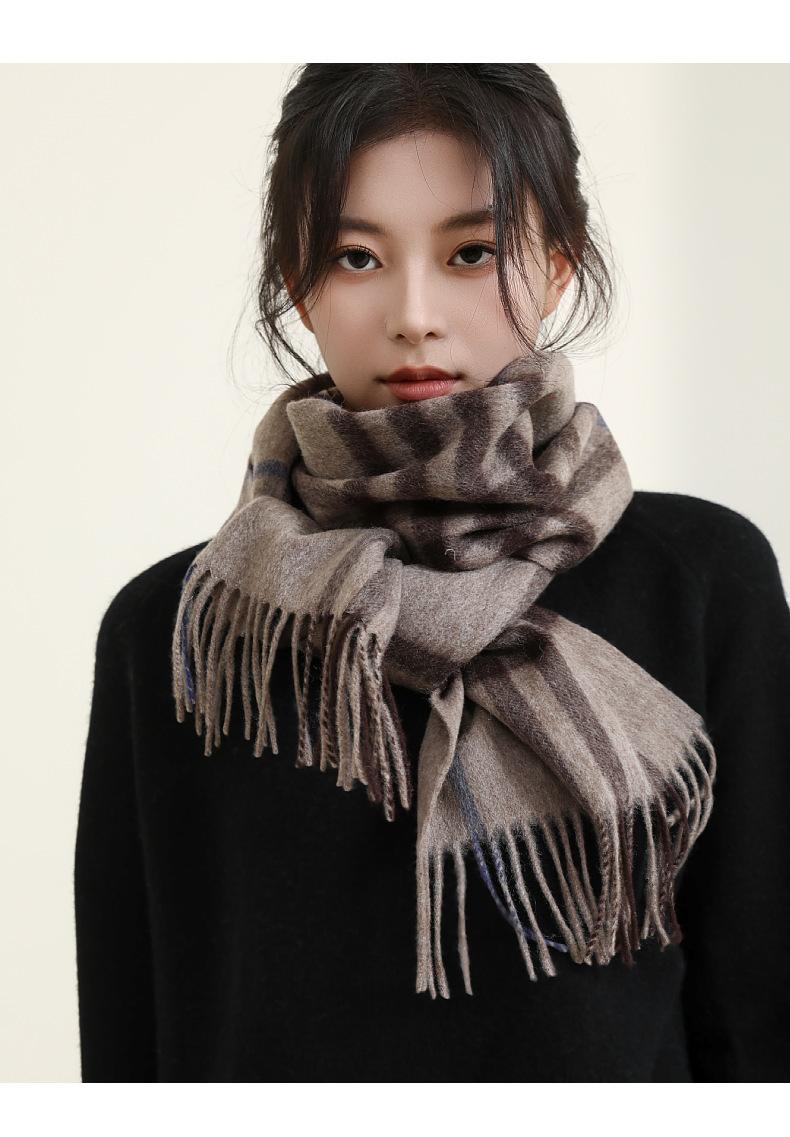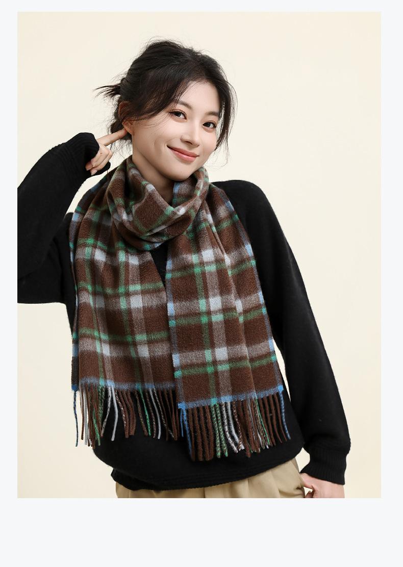 Bufanda de Cachemira a Cuadros para Mujer Invierno Sentido de Alta Gama Marca Grande Ropa Exterior Rayada Cálida Otoño e Invierno Chal de Lana 2024 Nuevo