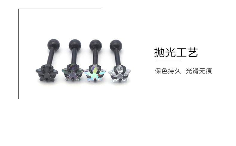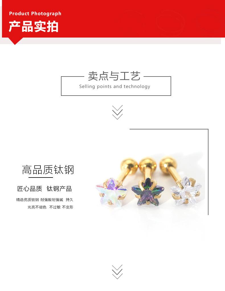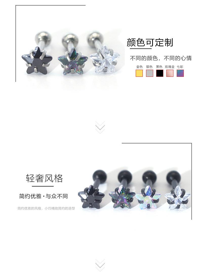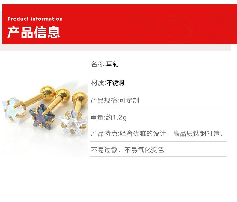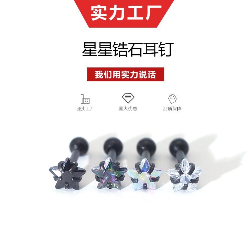 Joyería europea y americana acero inoxidable incrustado estrella circonita flash uña de oreja uña de hueso de oreja rosca interna uña de bola salida de fábrica
