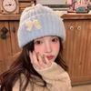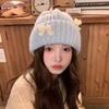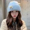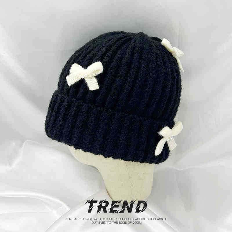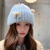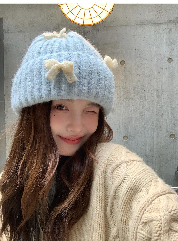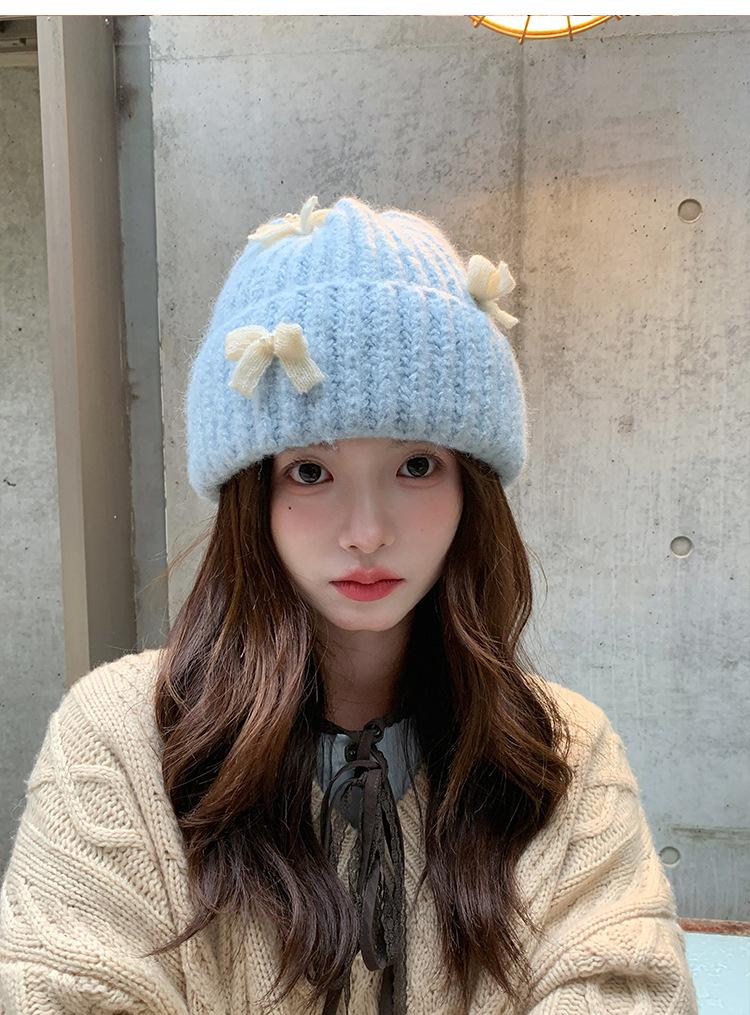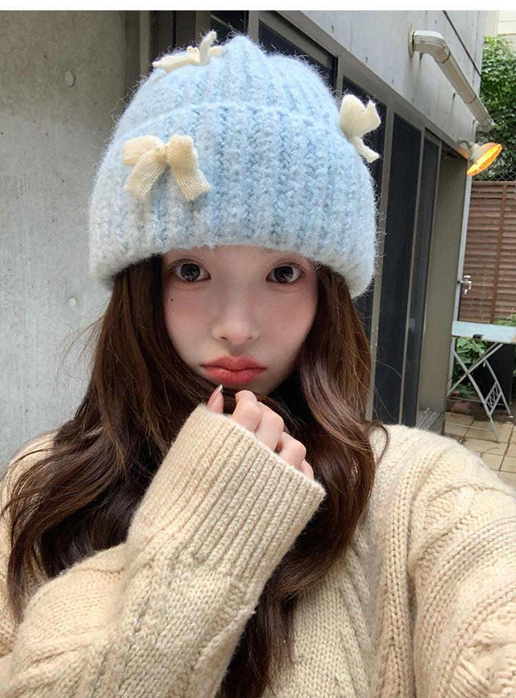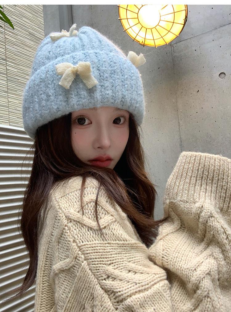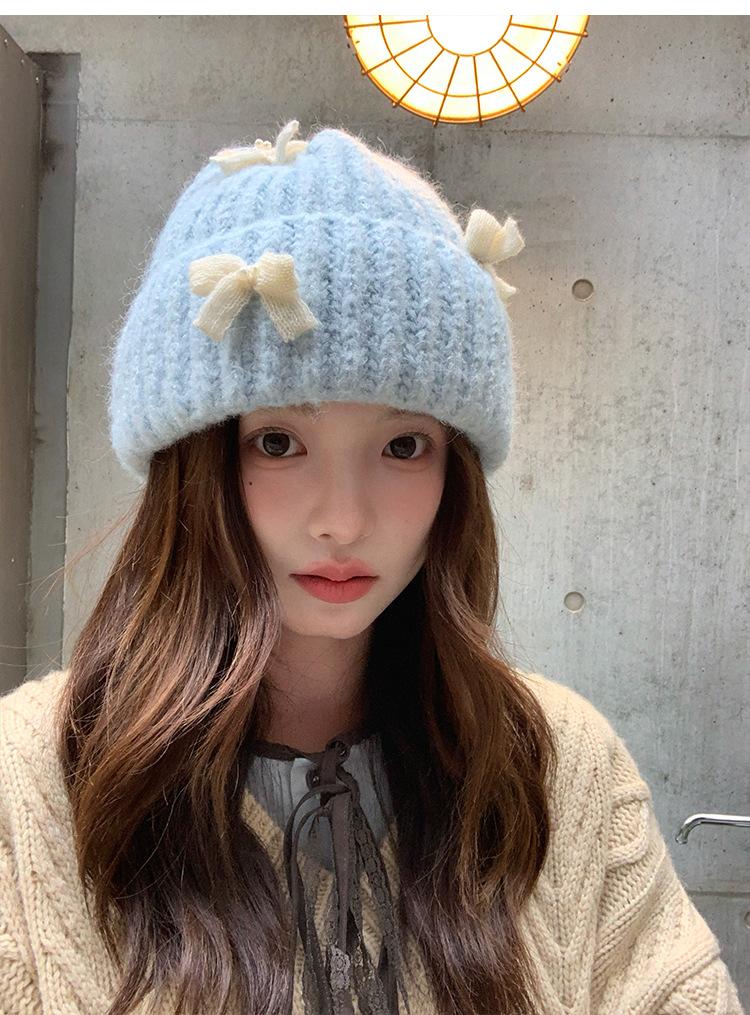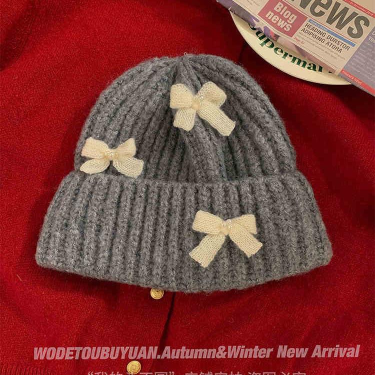 Corea del Sur Lazo de Perla Dulce Gorro de Punto para Mujer Otoño e Invierno Nuevo Cálido Protección para los Oídos Gorro de Lana Combinable Gorro para la Cabeza Moda