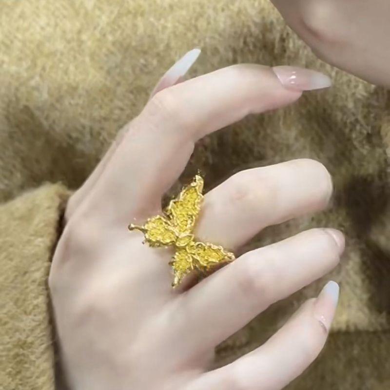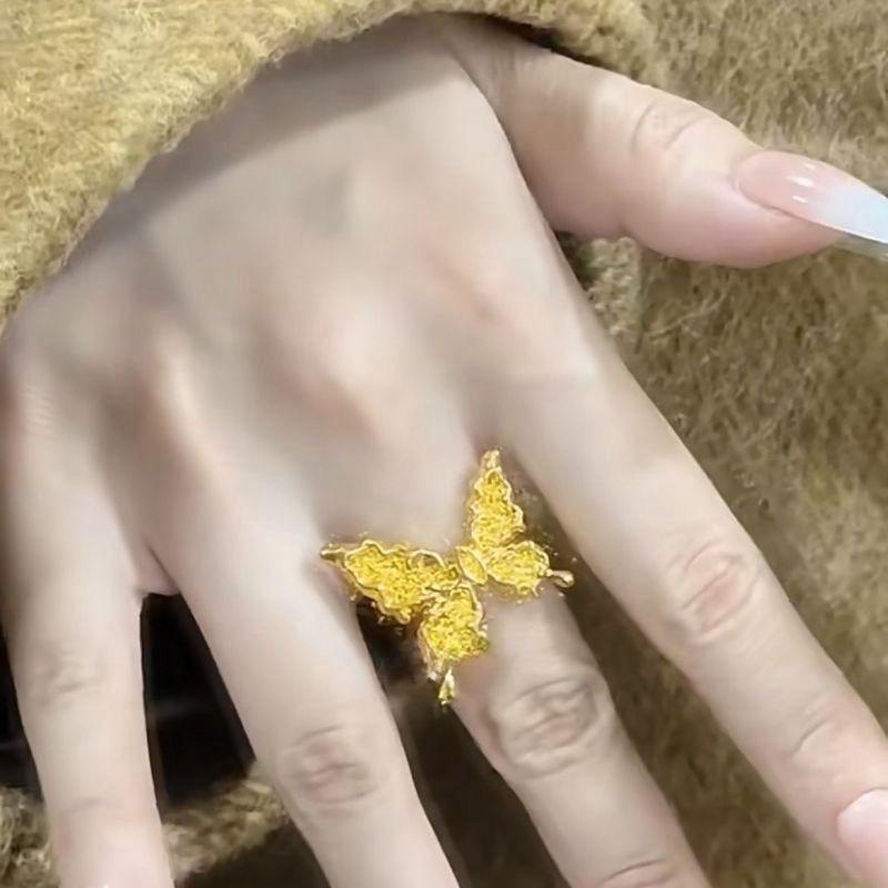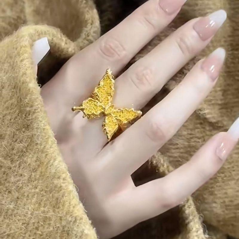 Anillo de lazo irregular dulce de princesa Escape para mujer, nuevo anillo dorado elegante con apertura para el dedo índice.