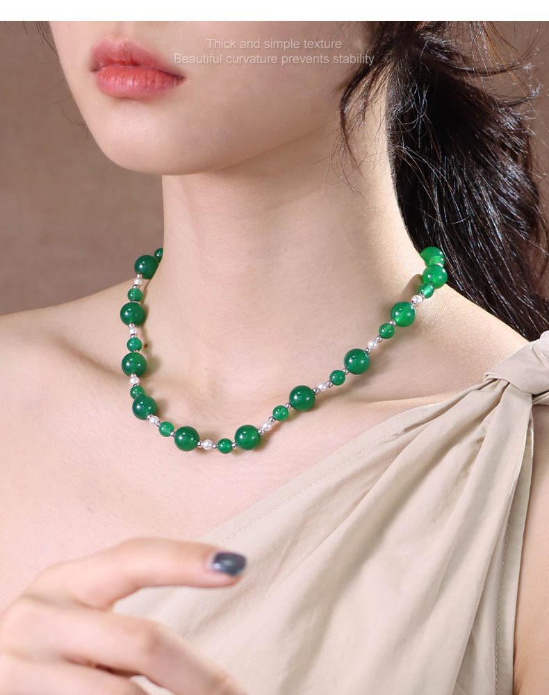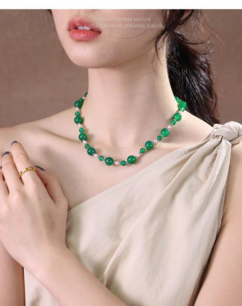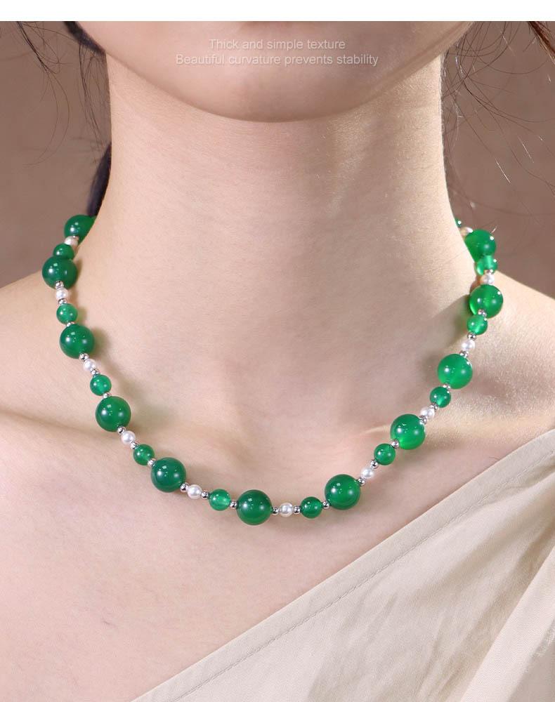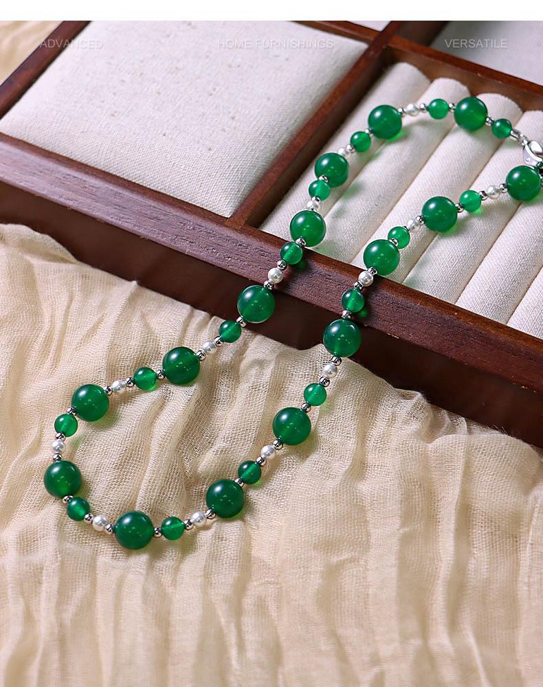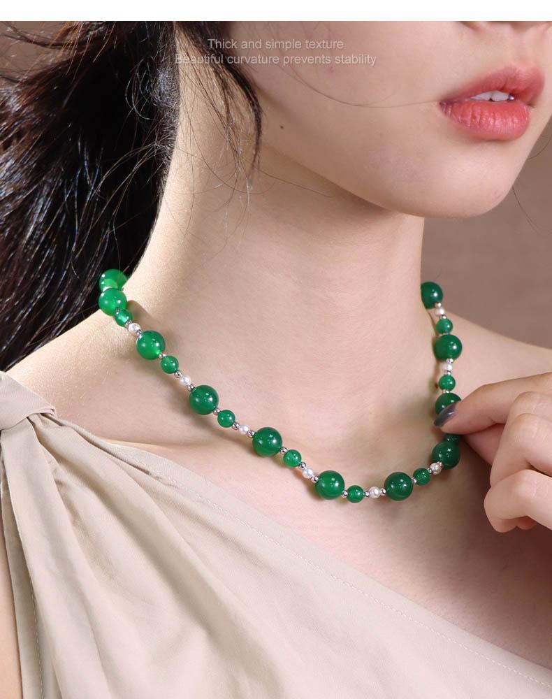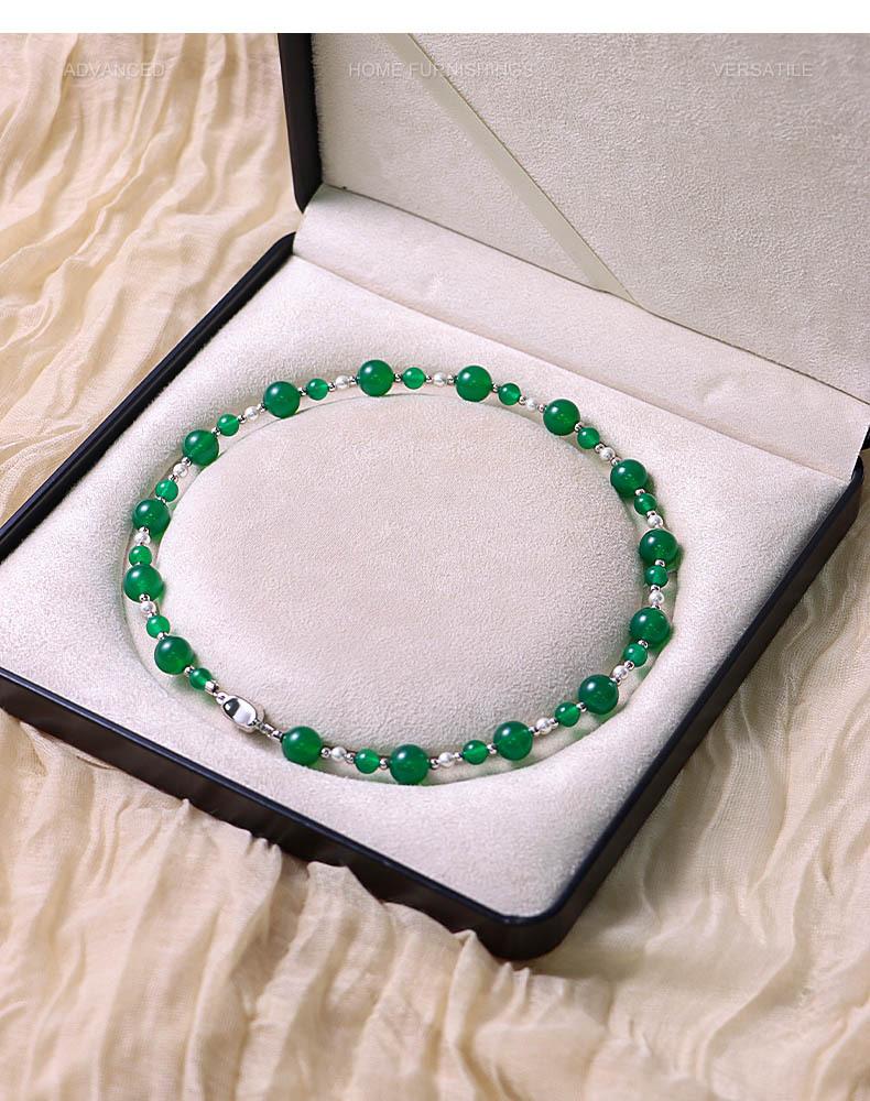 Nuevo collar de ágata verde natural, estilo chino, retro, fresco, blanco, elegante, sencillo, combinable con todo.
