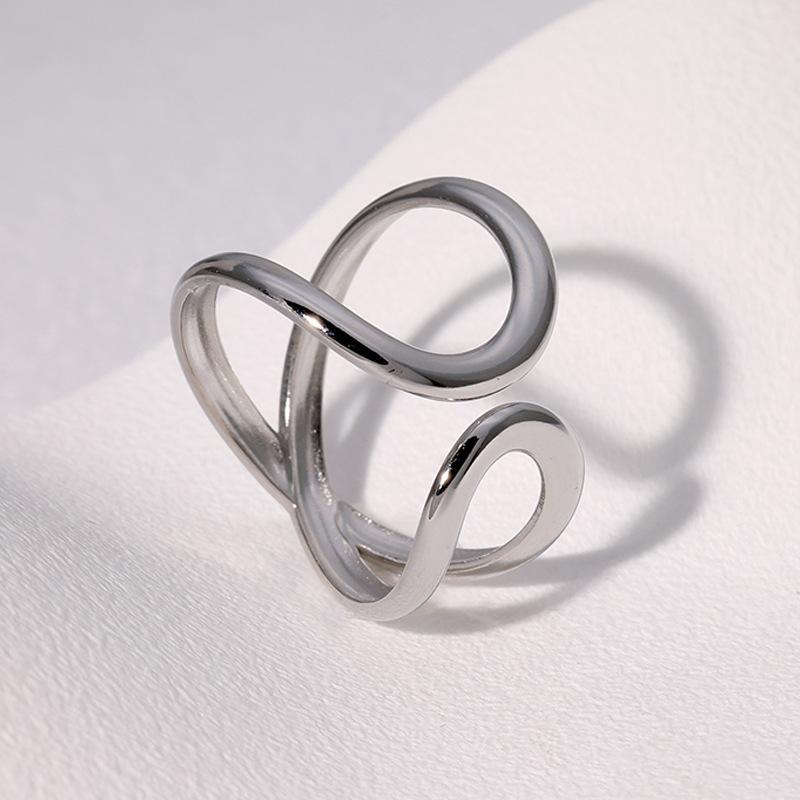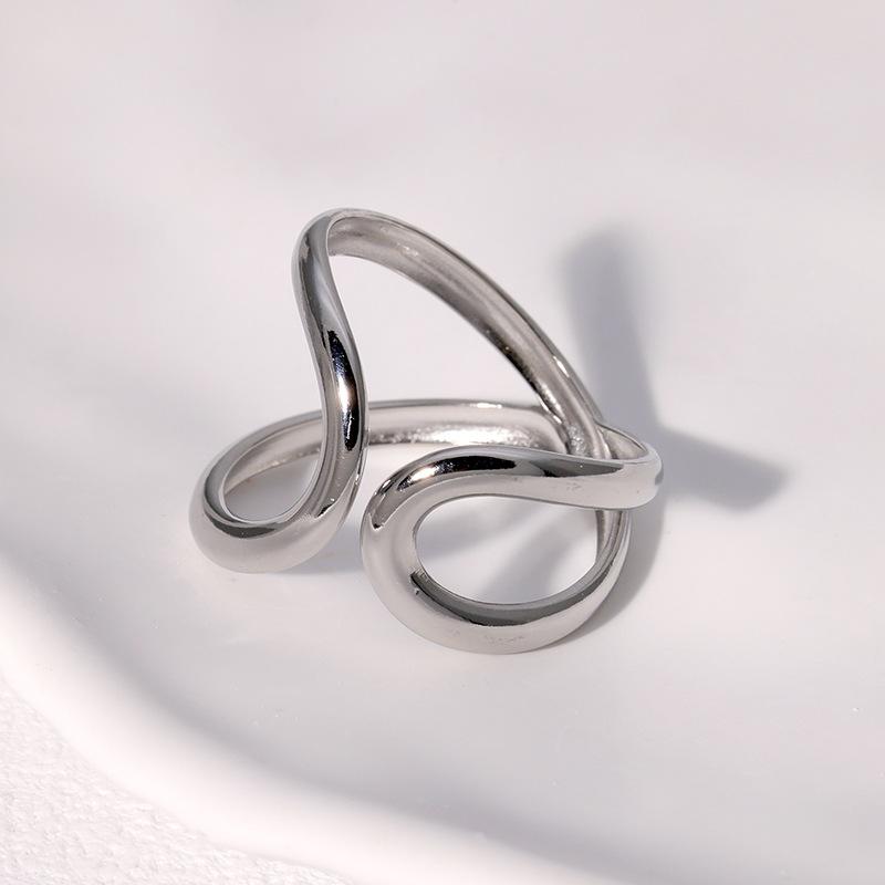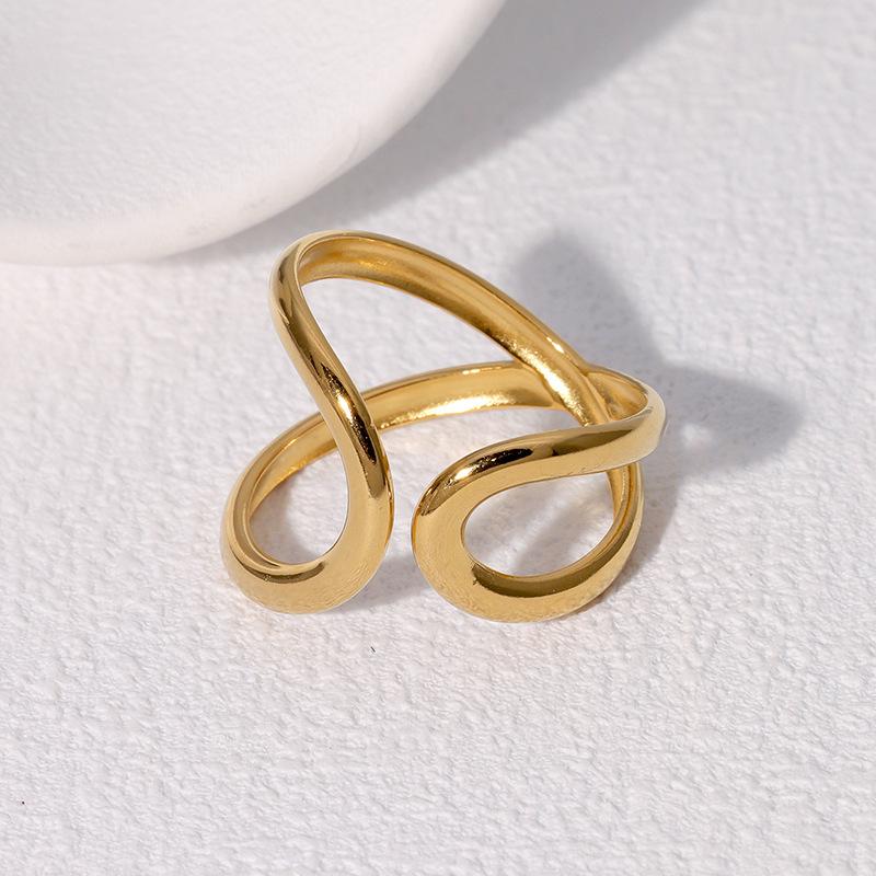 Anillo asimétrico geométrico simple transfronterizo minimalista estilo frío personalidad alto sentido chapado en oro anillo abierto de acero inoxidable