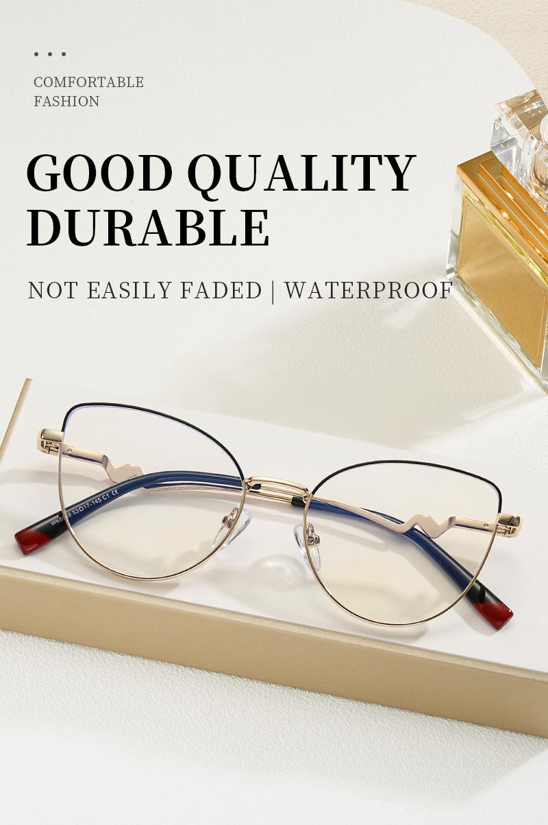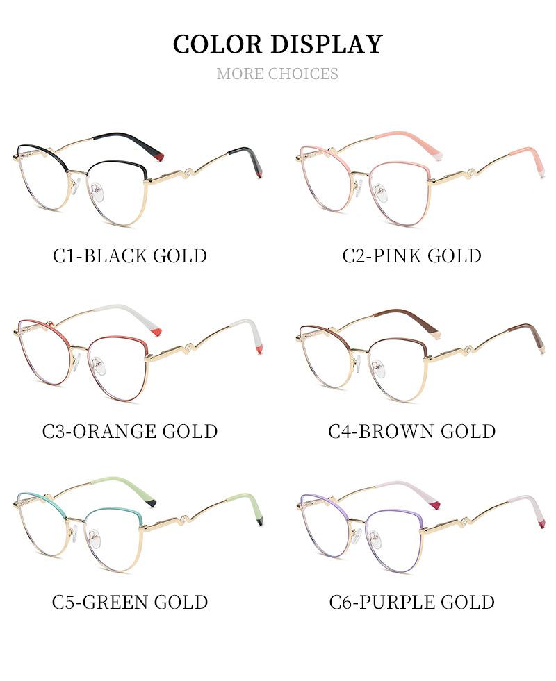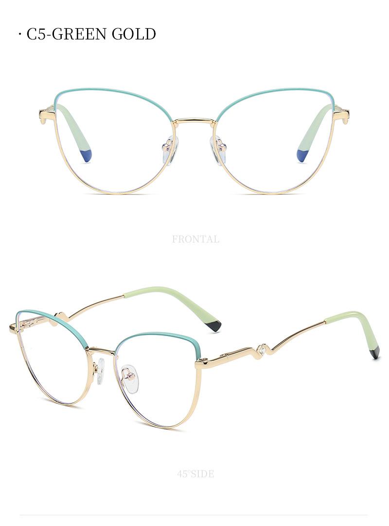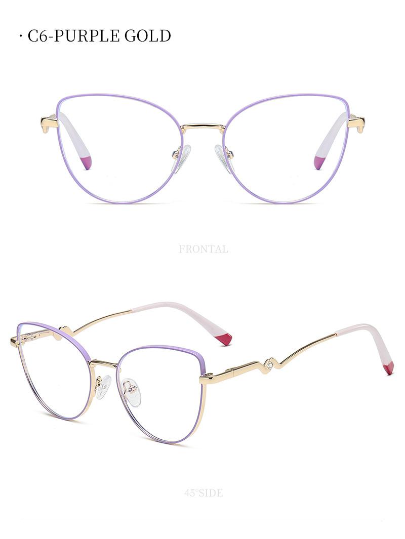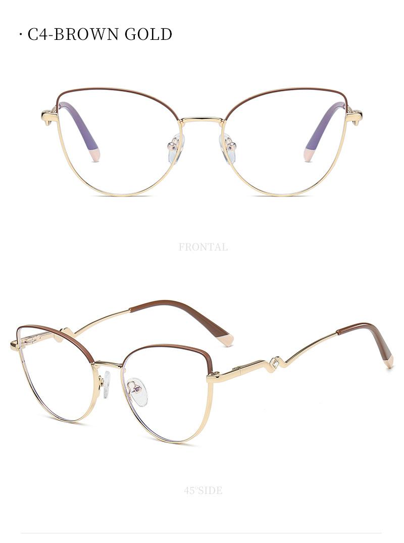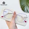 Montura de gafas con protección contra la luz azul, nueva moda transfronteriza, de metal, con forma de ojo de gato, para mujer, con espejo plano, para miopía, para ordenador