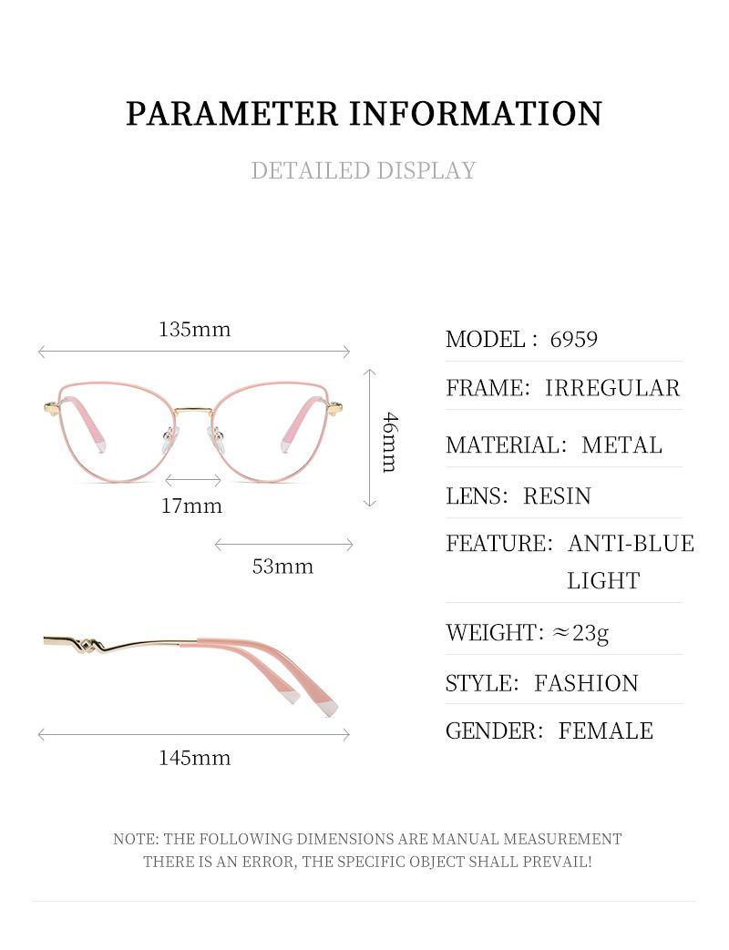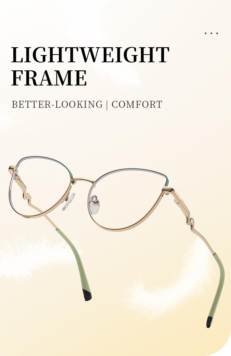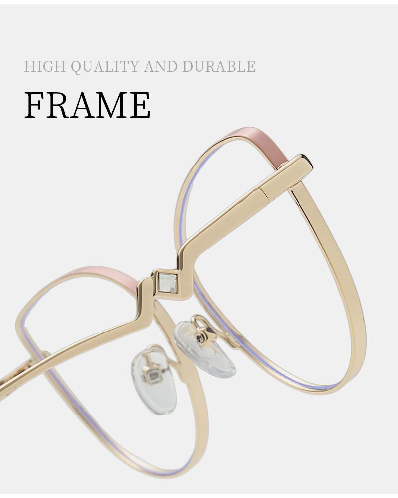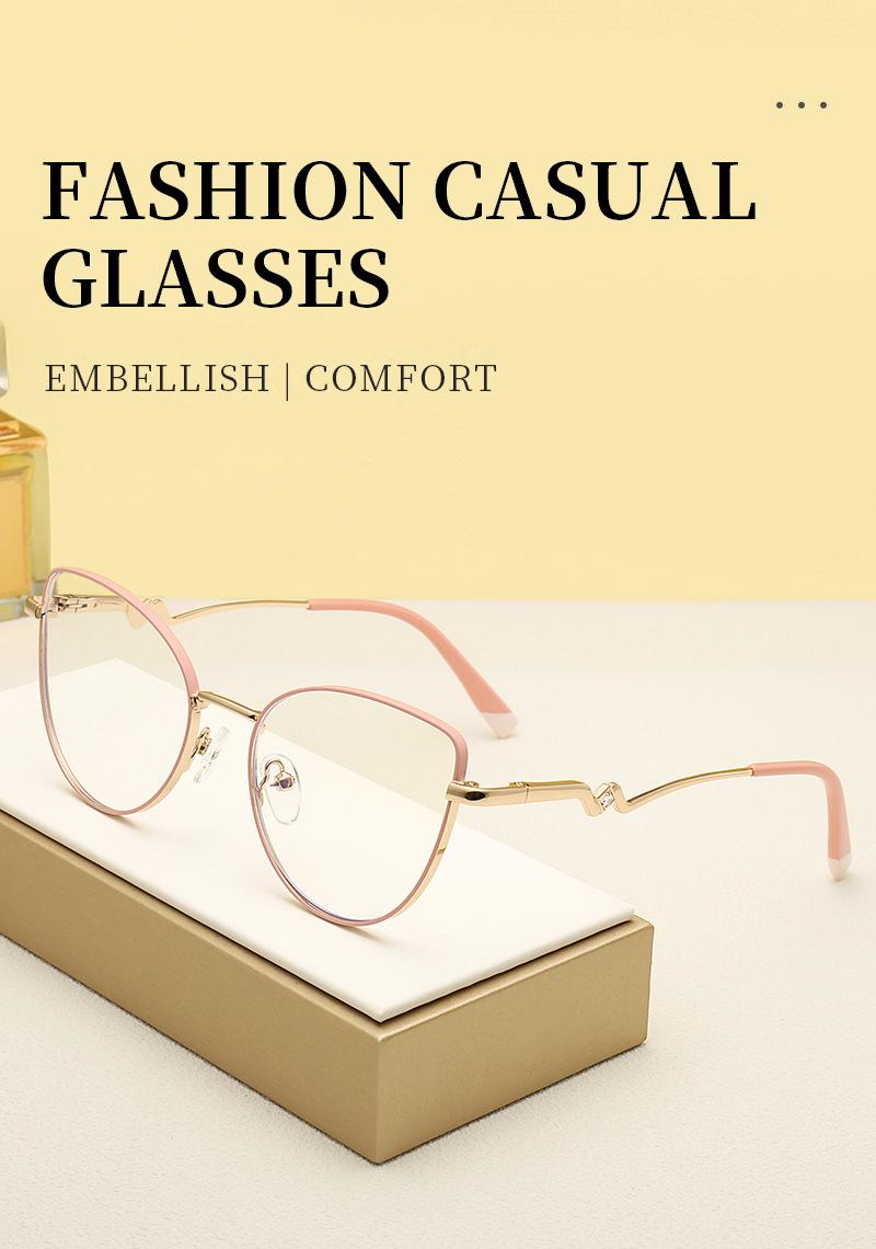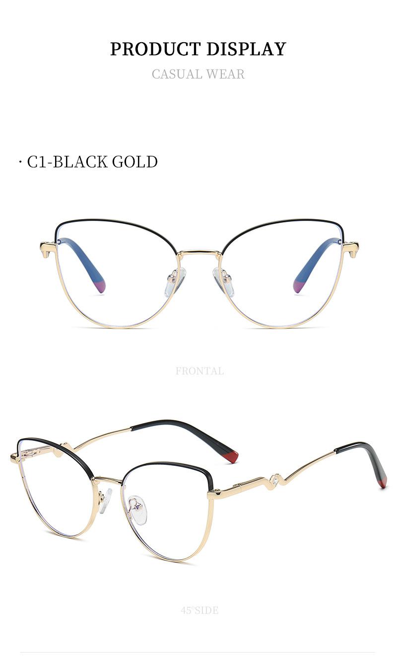 Montura de gafas con protección contra la luz azul, nueva moda transfronteriza, de metal, con forma de ojo de gato, para mujer, con espejo plano, para miopía, para ordenador
