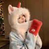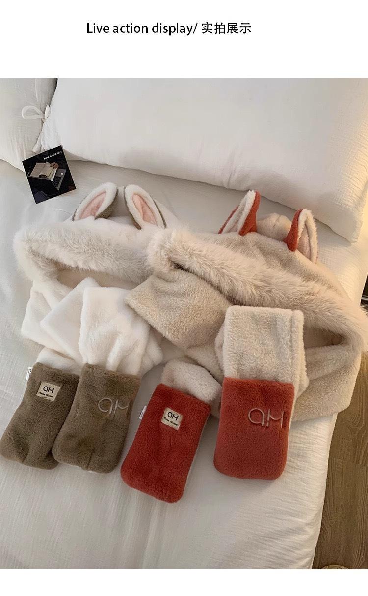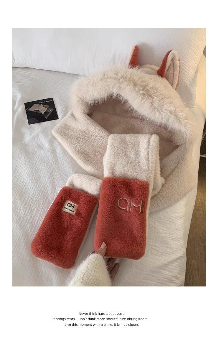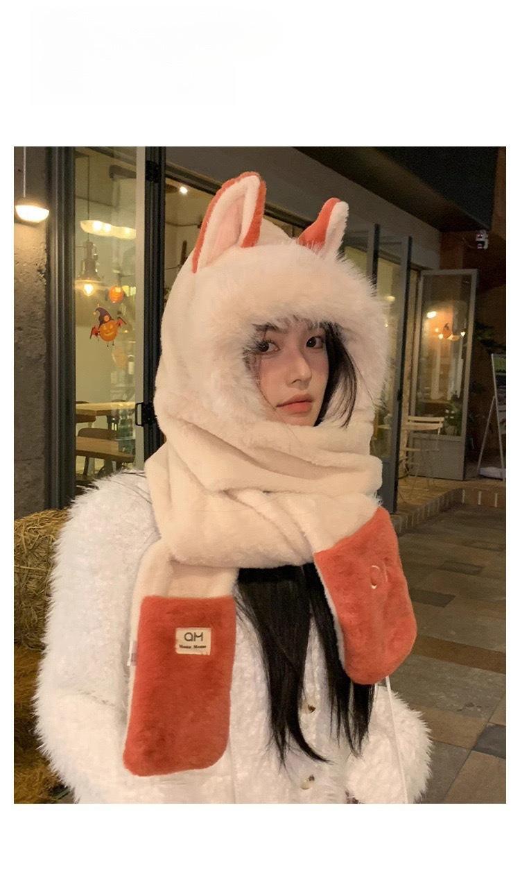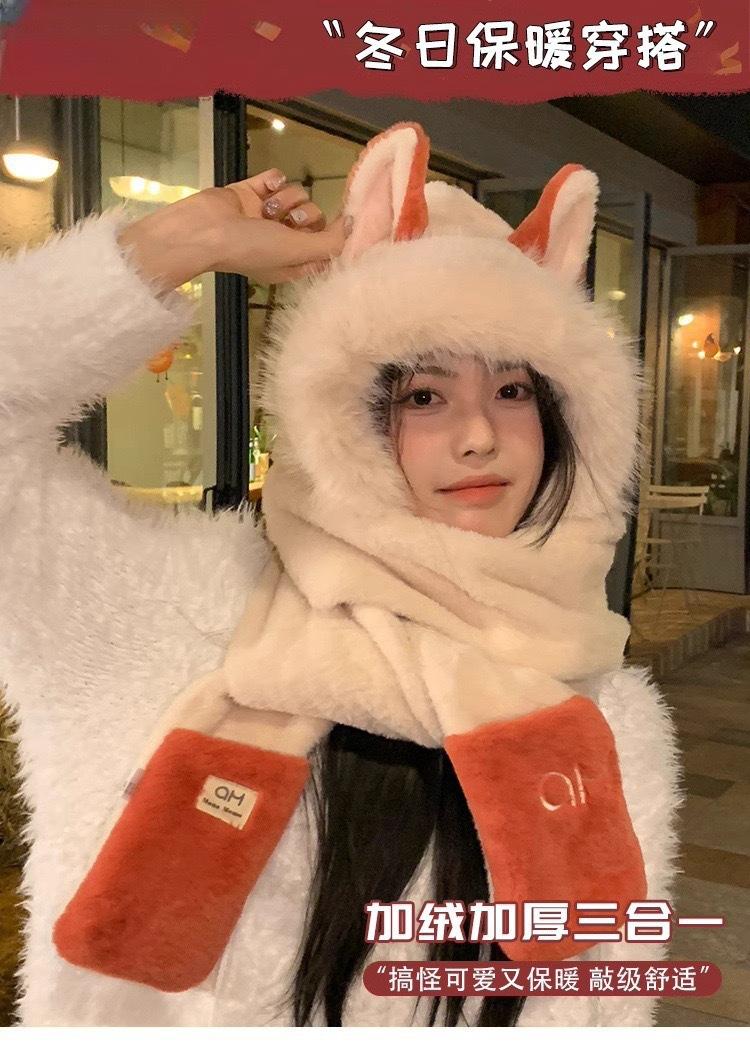 Conjunto de tres piezas de gorro y bufanda de zorro para mujer, moda de invierno, bonitos guantes de felpa cálidos para el cuello, gorro de una pieza