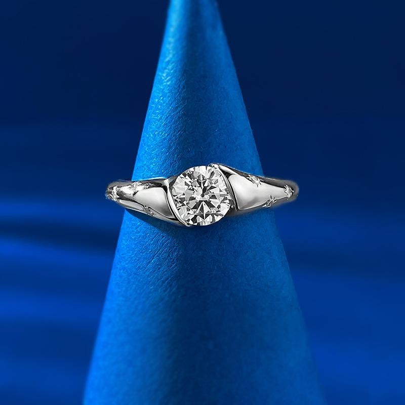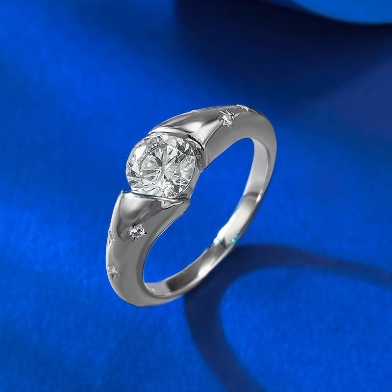 Anillo de bodas Mu Jing 2024 con estrellas europeas y americanas incrustadas con diamantes de alto carbono de 1 quilate para mujer en AliExpress.