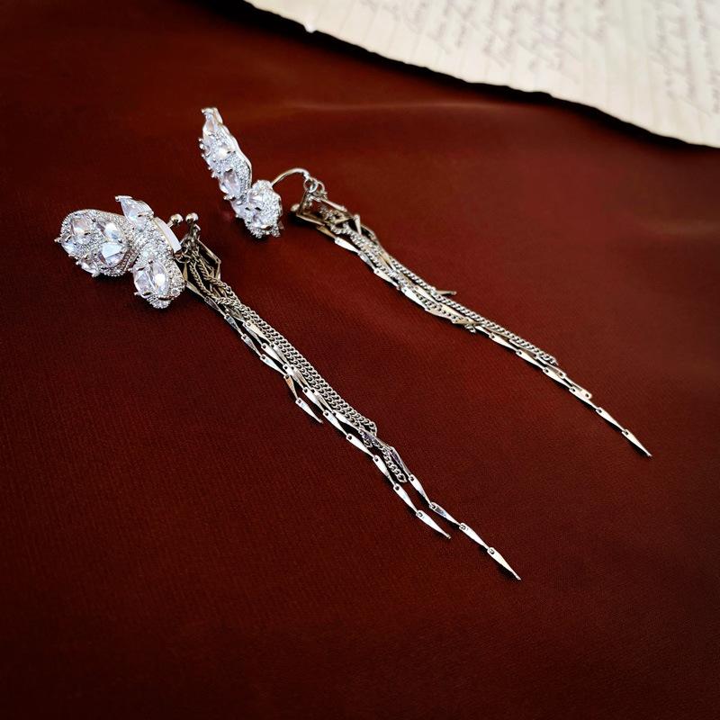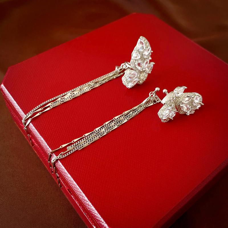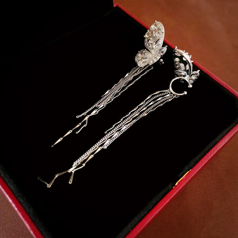 Pendientes con borla de mariposa de circón, con clip para la oreja, viento frío, nicho de temperamento, ligeros, de lujo, de gran sentido, al por mayor