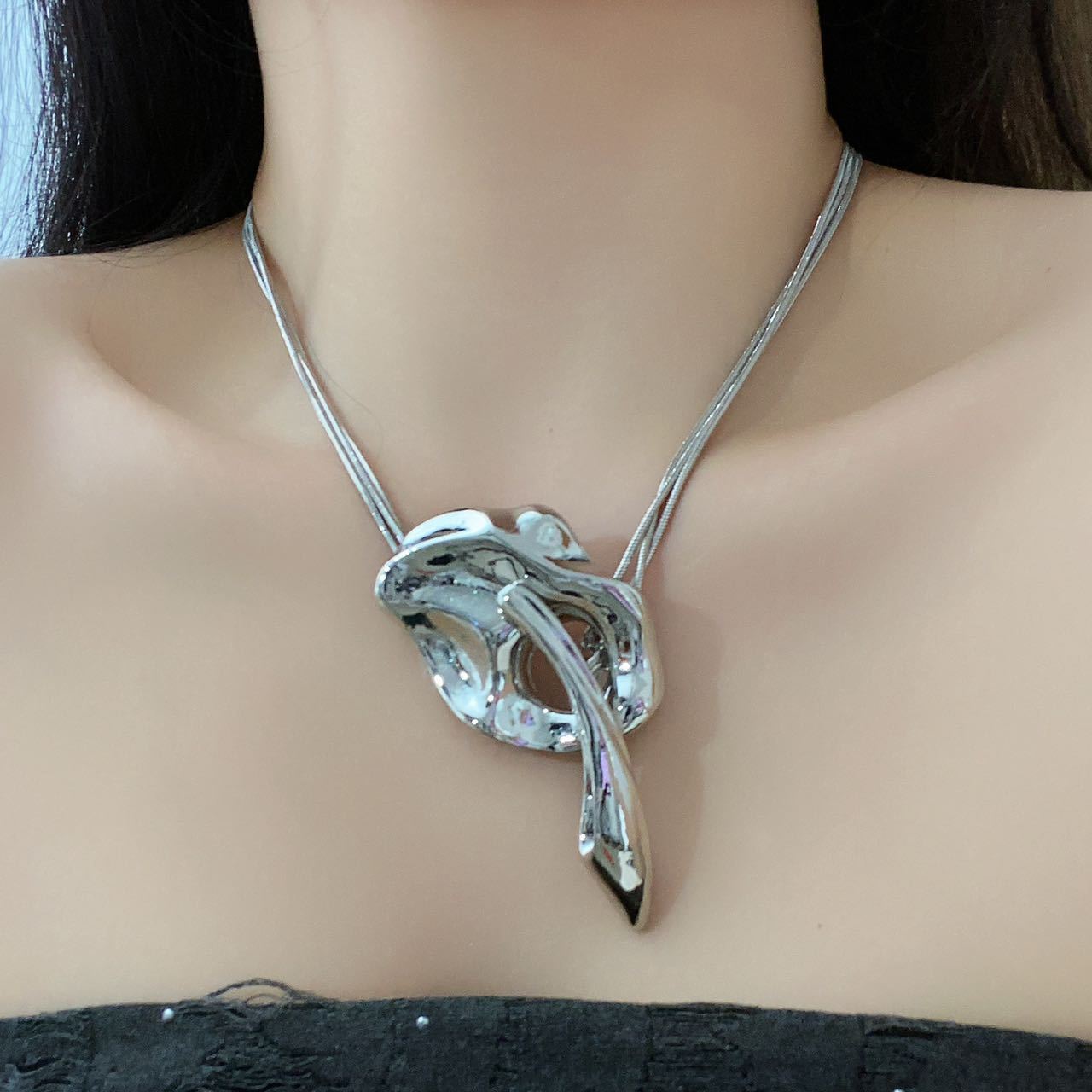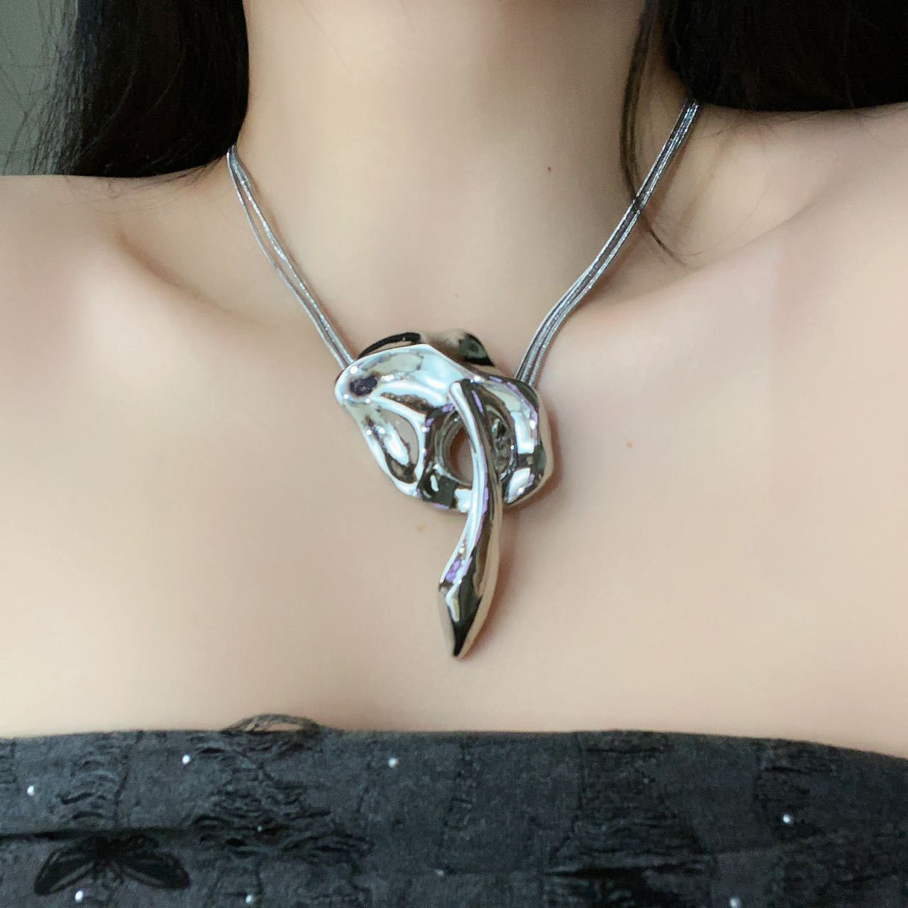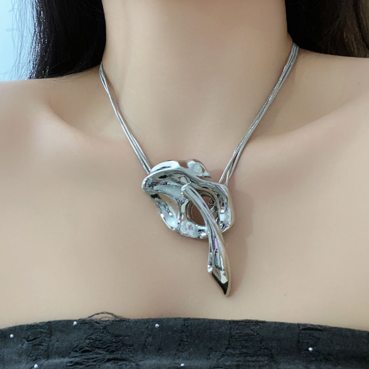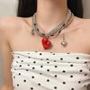 Collar de cadena multicapa con hebilla en forma de T, diseño de nicho, con una hoja plana y explosiones rojas de red para mujer, cadena de clavícula con personalidad exagerada ~